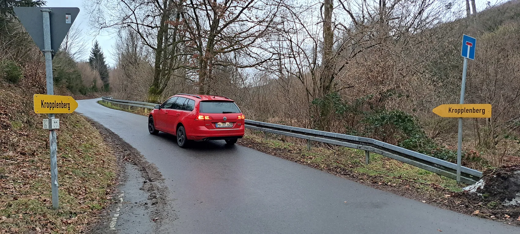 2600 Quadratmeter Straße sollen von 200 Meter oberhalb des Abzweigs von der Landesstraße 323 bis hinauf zur Ortschaft Kropplenberg saniert werden. Dies ist die Strecke, die während der Schulzeit auch fünfmal täglich vom MVG-Bus der Linie 296 bedient wird.