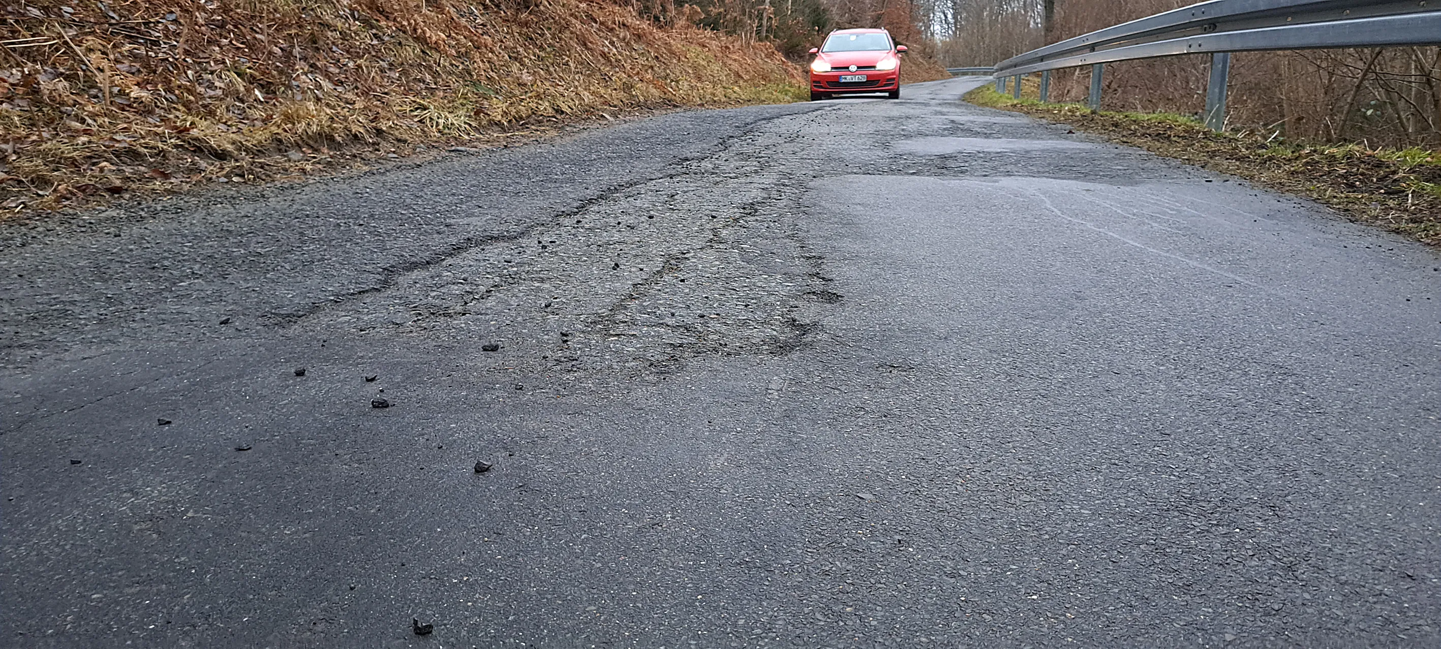2700 Quadratmeter Straße sind im Bezirk Valbert schadhaft; dort soll die Straße zur Ortschaft Siepen instandgesetzt werden. An beiden zu sanierenden Straßen sollen im Zuge der Deckenerneuerung auch die Bankette hergerichtet werden, umreißt die Stadt die anstehenden Arbeiten.
