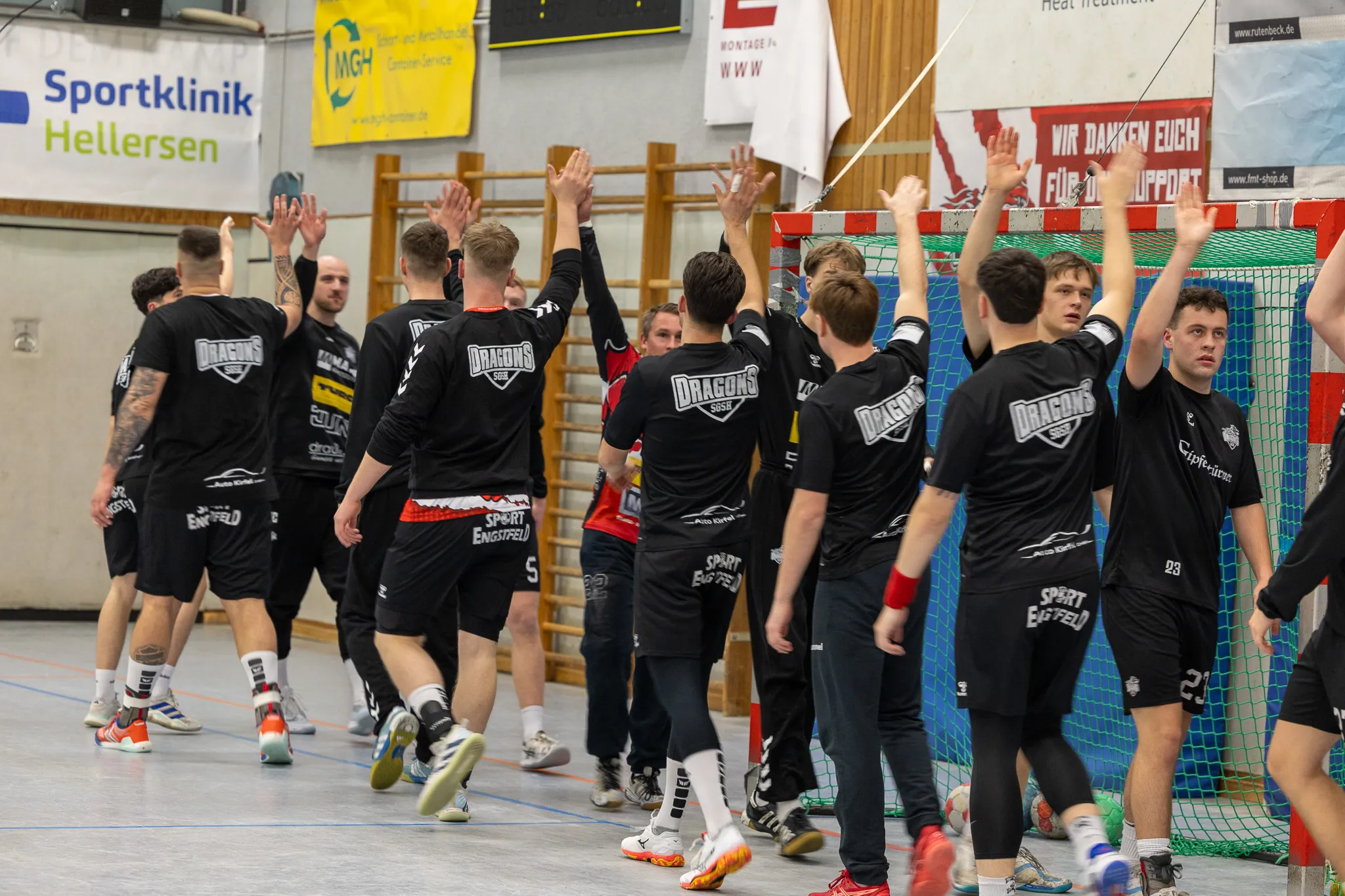 In der zweiten Halbzeit dominierten die Dragons das Spiel deutlich, auch wenn es zunehmend härter wurde. Direkt zu Beginn lag ein Spieler der Gastgeber auf dem Hallenboden. In einem Zweikampf verletzte sich dieser so stark, dass eine Nasenblutung gestoppt werden musste und das Spiel für eine Zeit unterbrochen war. Die Dragons, weiterhin präsent vor dem Tor der gegnerischen Mannschaft, konnten ihre Führung auf 27:18 erweitern. In den Schlussminuten des Spiels kam es zu immer körperbetonteren Zweikämpfen. Zwei rote Karten mussten die Unparteiischen verteilen, bevor die Begegnung mit 34:22 zugunsten der Dragons abgepfiffen wurde.