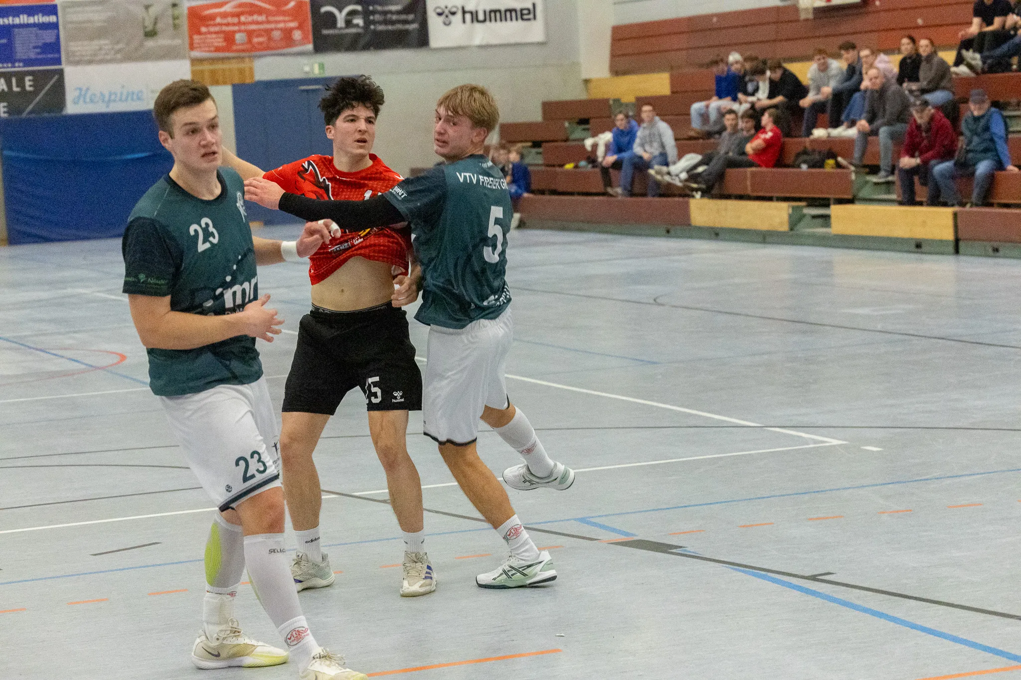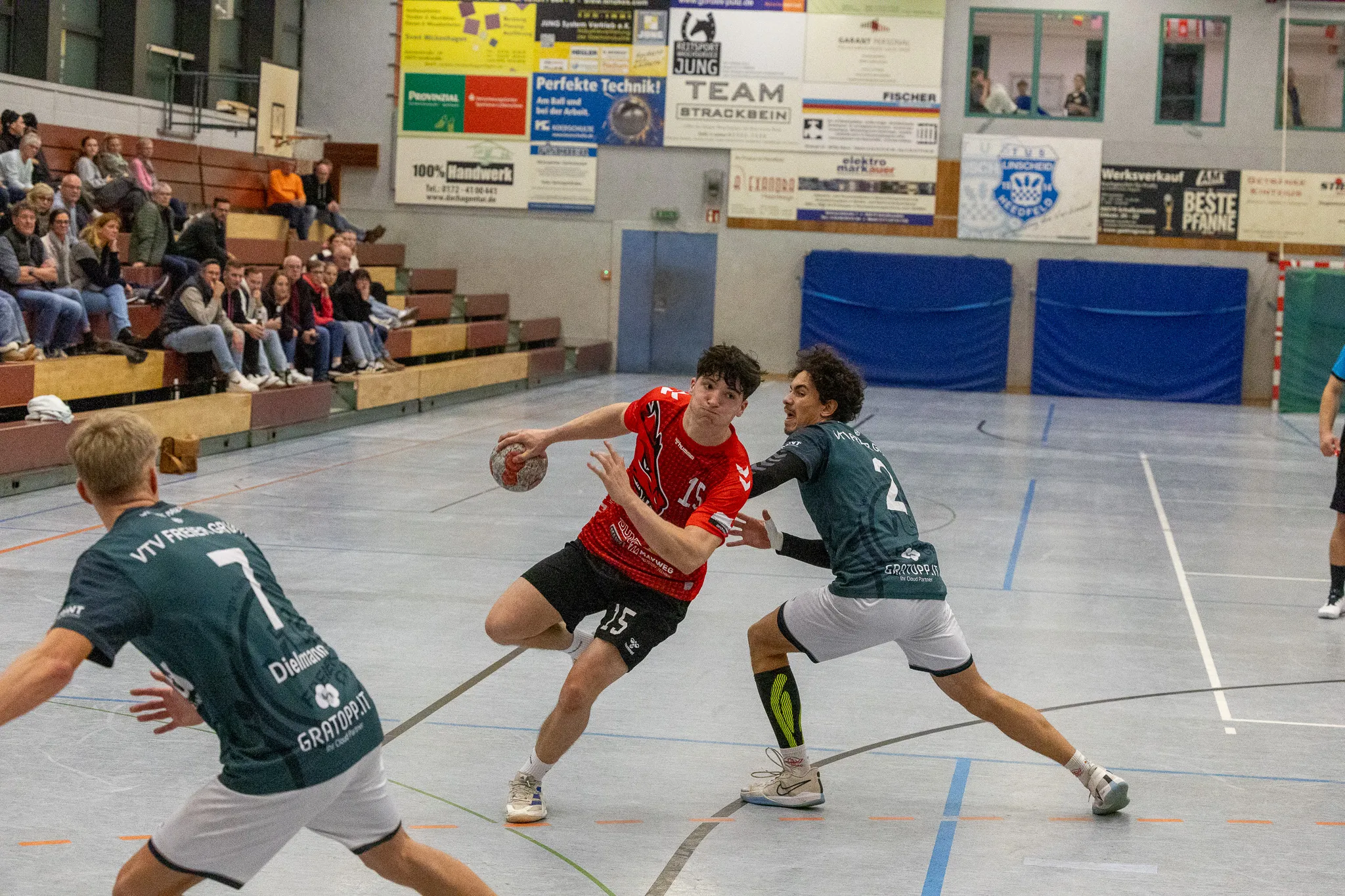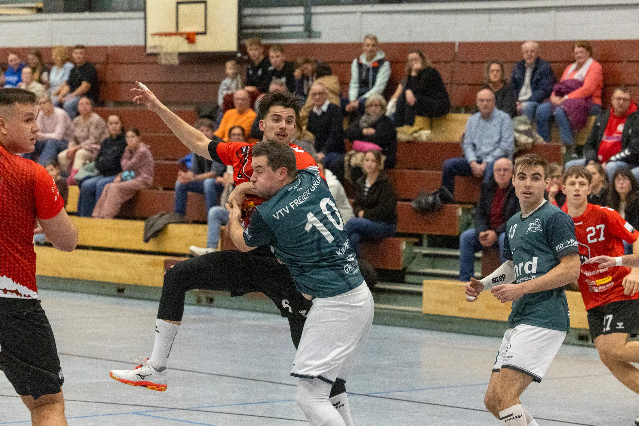 Die 2. Mannschaft der SGSH Dragons empfing am Freitag, 14. November, den VTV Freier Grund in der Sporthalle Löh. Nach einem harten Spiel, konnten die Dragons das Duell für sich entscheiden.