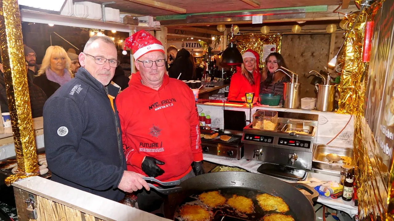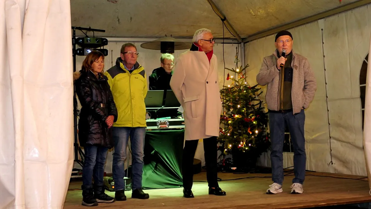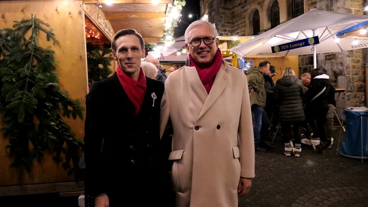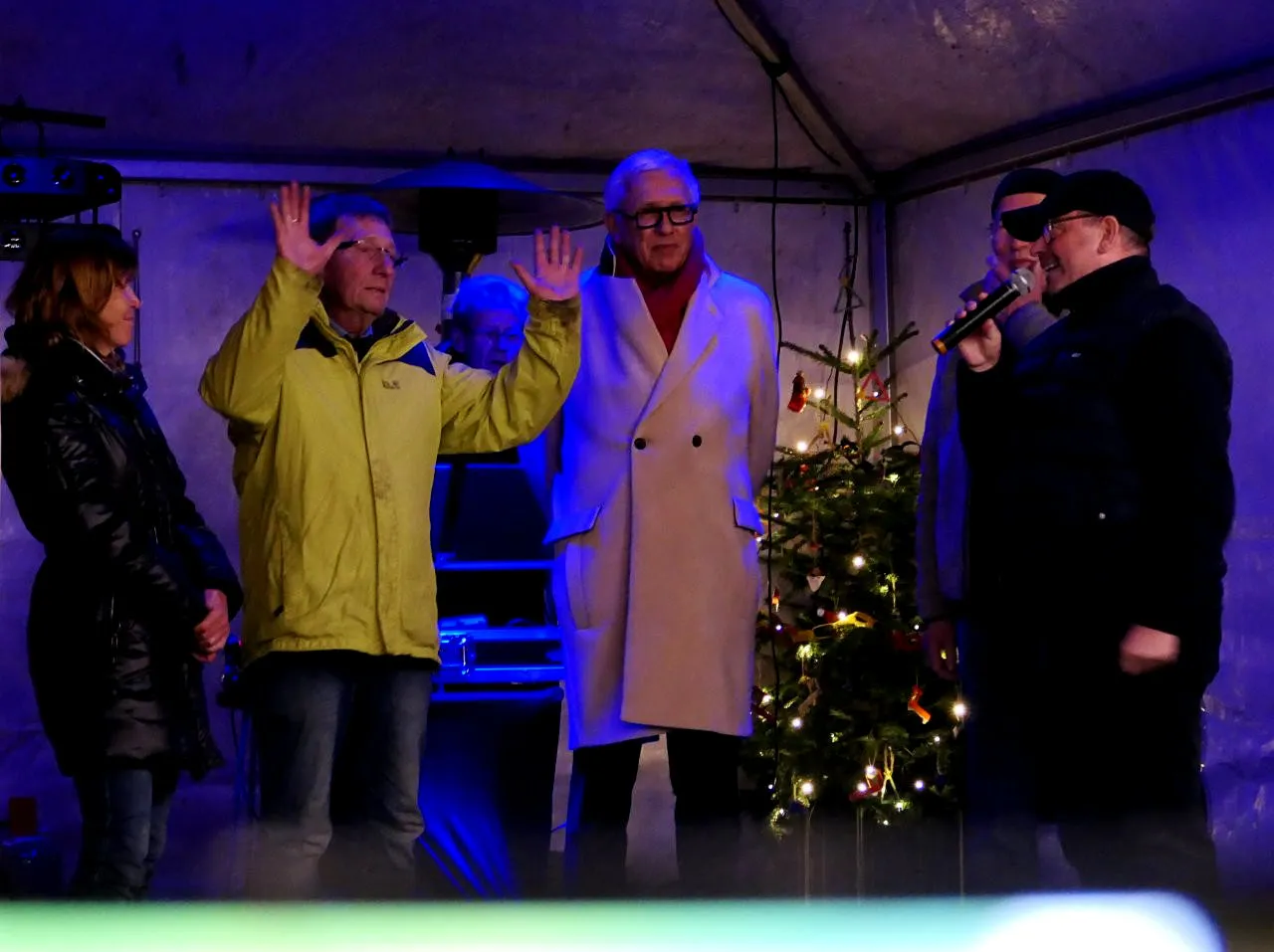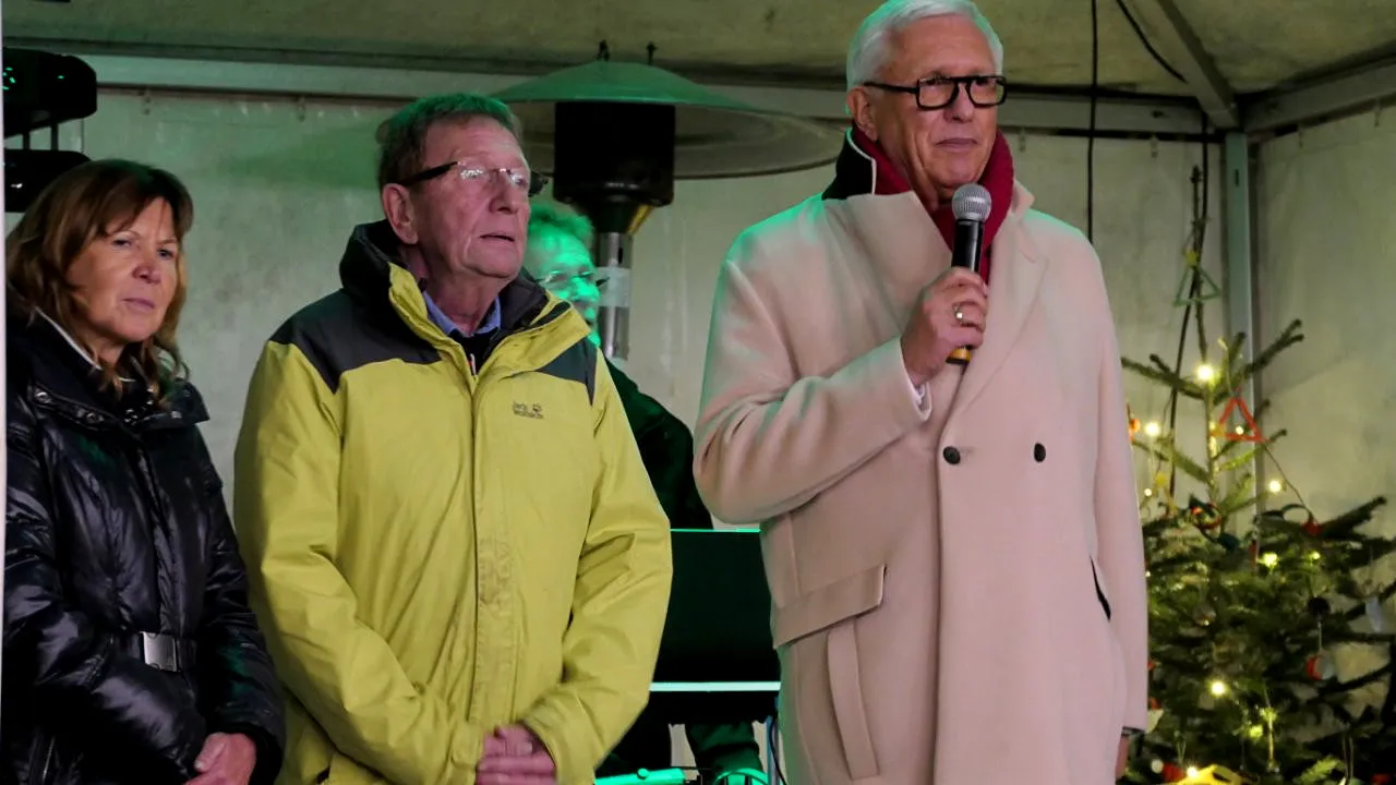 Nach dem Abspielen des in sozialen Netzwerken kursierenden Plettenberger Weihnachtsliedes begrüßten der neue Plettenberger Bürgermeister Ralf Beßler und der alteingesessene Eiringhauser „Dorf-Bürgermeister“ Thomas Lipps von der Werbegemeinschaft Eiringhausen die auch zum frühen Zeitpunkt bereits sehr zahlreichen Gäste. Lipps wies auf die zunehmenden Schwierigkeiten mit weniger werdenden Interessenten an einer Standbesetzung durch immer weniger stationären Händler im Stadtteil und höhere allgemeine Kosten hin.