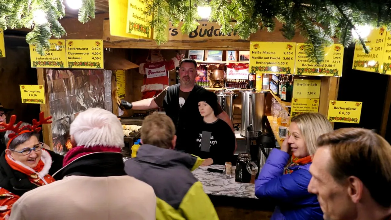 DJ Martin von Ohle sorgte am Samstag für die musikalische Untermalung. Bei nicht unbedingt winterlichen Temperaturen füllte sich die Fläche um die Buden sehr schnell mit vielen Gästen und es zeigte sich wieder, dass dieser heimelige Markt ein beliebter Treffpunkt für alle Eiringhauser und viele Besucher aus dem Umland ist. Eine Geburtstagsrunde aus Neuenrade hatte sich extra mit einem Bus auf den Weg gemacht und ließ es ordentlich krachen.