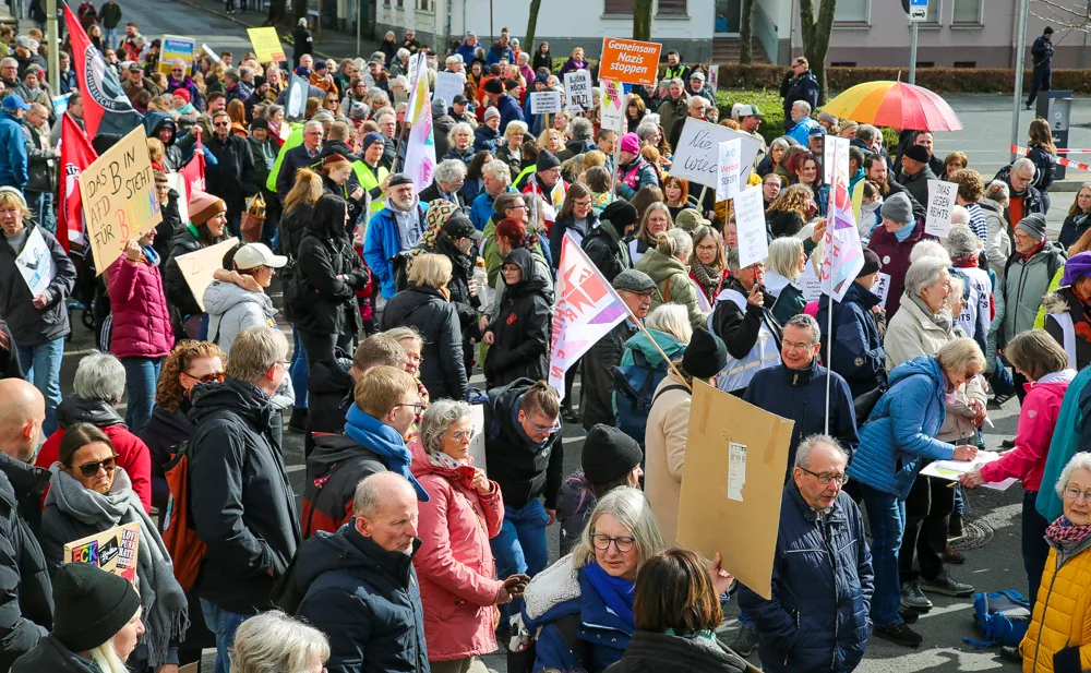 Geschützt wurden Demonstranten und Versammlungsteilnehmer von insgesamt 25 Polizeikräften. Sie mussten allerdings nicht einschreiten – ihre Hauptaufgabe war es, die Friedrich-Ebert-Straße vor dem Saalbau großräumig abzusperren.