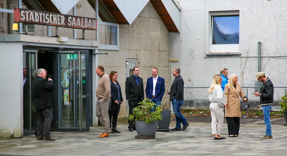 Der AfD-Kreisverband hatte in den Saalbau eingeladen, um seine Delegierten für die bevorstehenden Landes- und Bezirksparteitage zu wählen. Es war das zweite AfD-Treffen innerhalb weniger Wochen in Letmathe. Bekanntlich hatte sich auch der Landesverband NRW der neuen AfD-Jugendorganisation dort gegründet. Bereits seinerzeit hatte es eine Anti-AfD-Demo dort gegeben, die allerdings wegen des erst kurzfristig bekanntgewordenen Termins nicht so viel Demonstranten angelockt hatte wie dieses Mal.