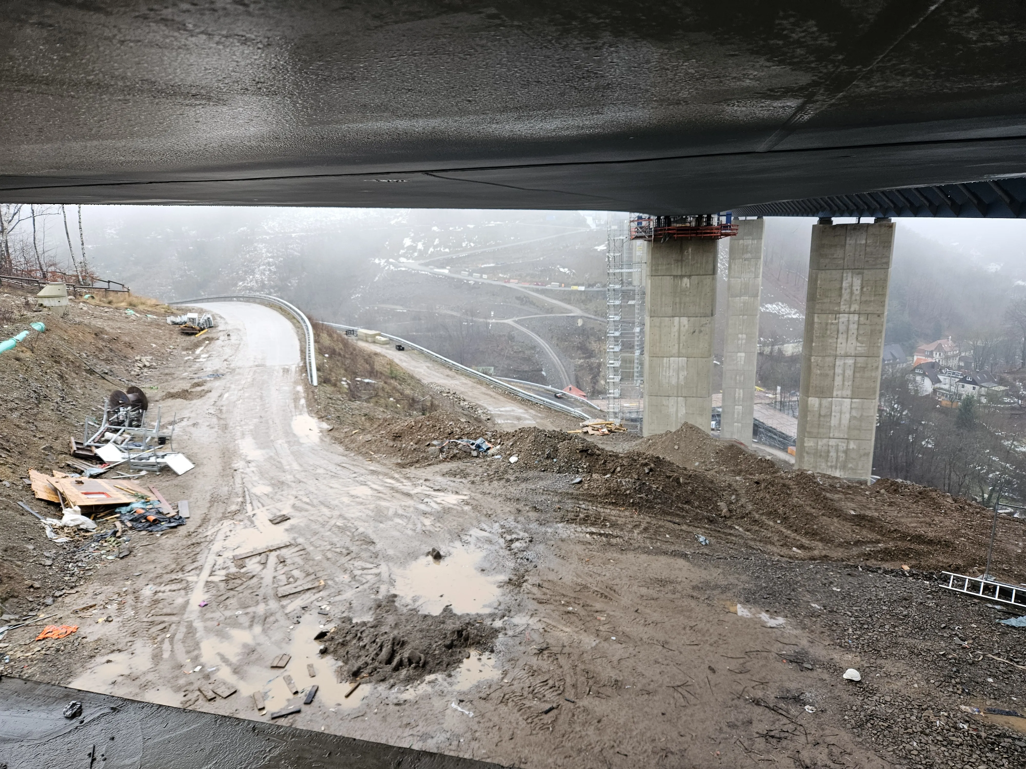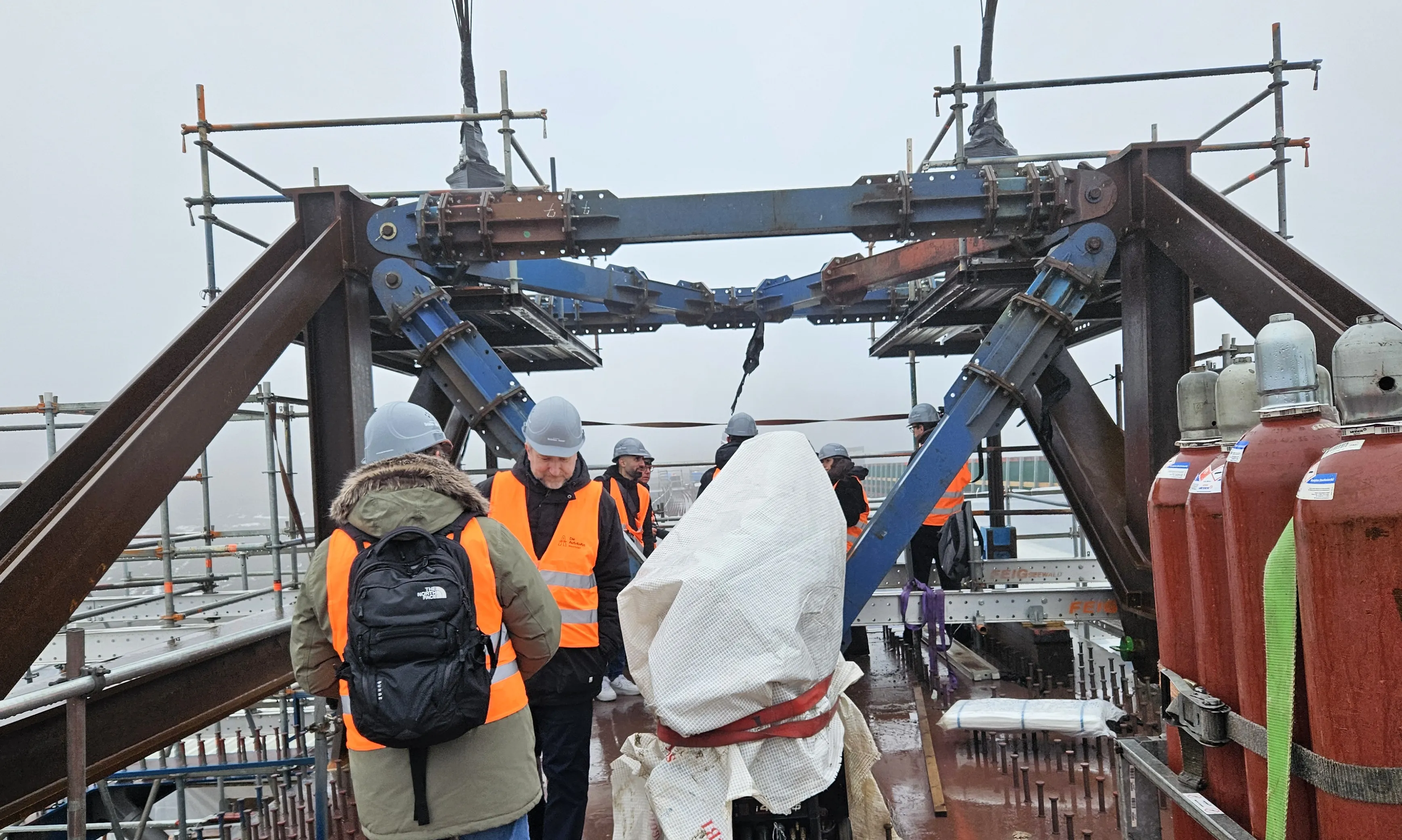 Beim Pressetermin am Mittwochvormittag waren die Brückenbauer noch mit dem Feintuning beschäftigt. Bei dichtem Nebel und Temperaturen um die fünf Grad herrschte ohnehin kein Wetter für eine Hochzeitsparty.