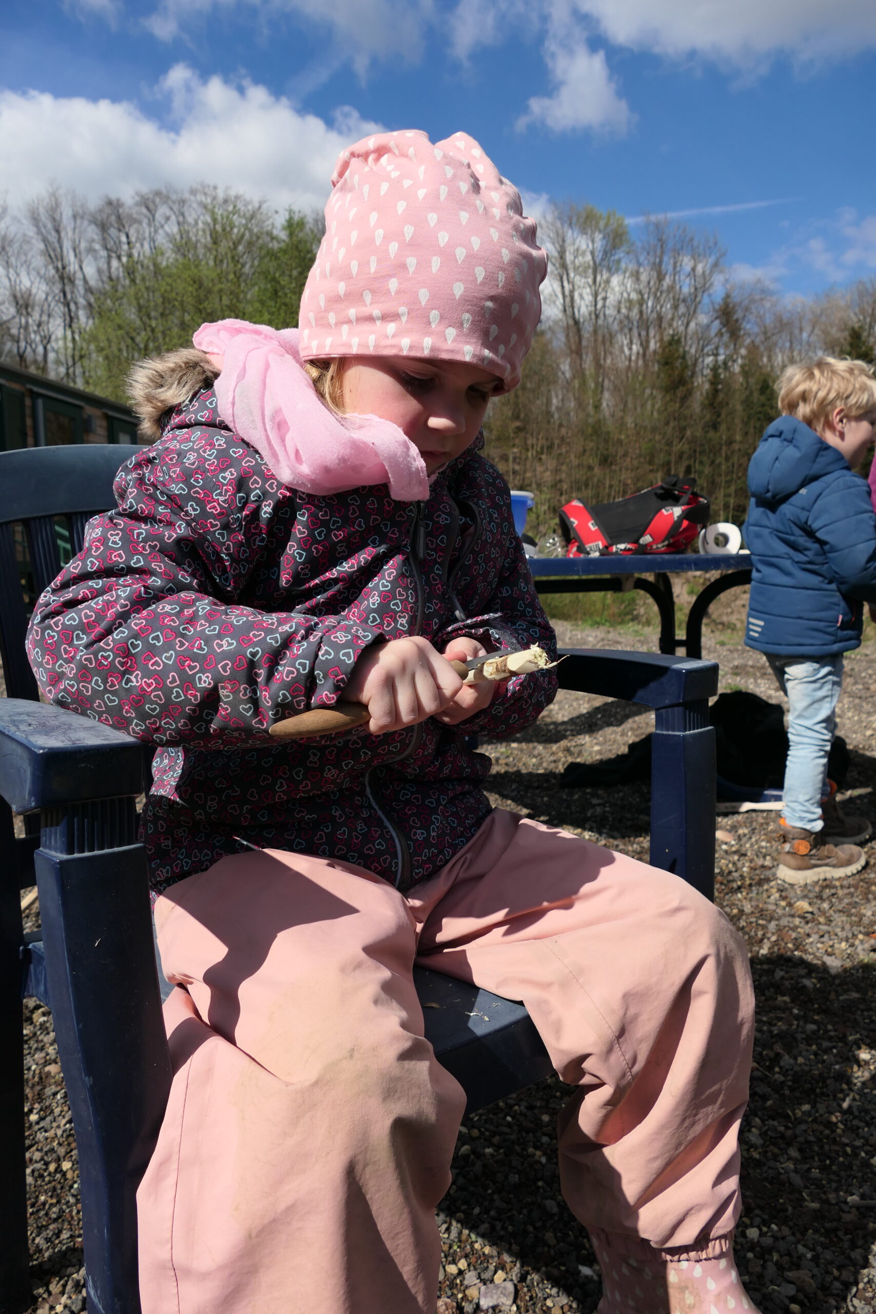 So hat jedes der Kinder eine besondere Vorliebe, warum es gerne in den After-School-Club kommt. Der sechsjährige Jonatan liebt es zu schnitzen und das Lager zu bauen, die ebenfalls sechsjährige Matilda sagt: „Ich finde es toll, in den Wald zu gehen. Das ist viel spannender als mit Mama und Papa!“