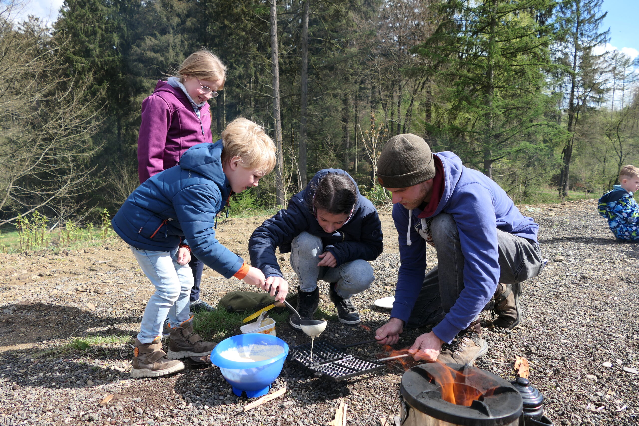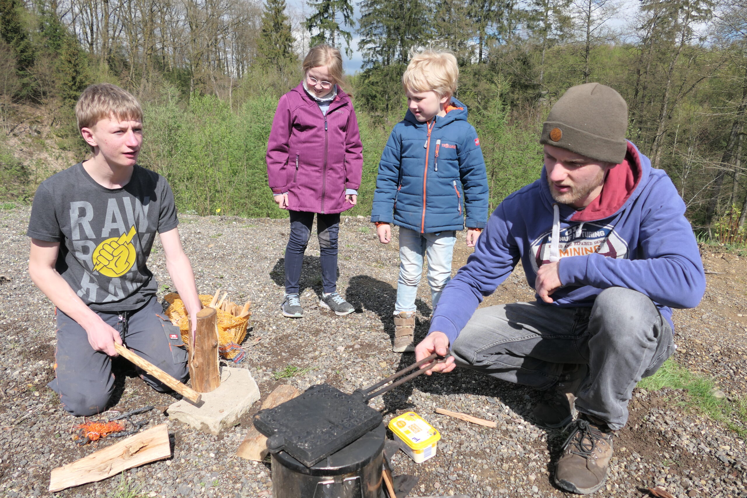 Draußen spielen, die Natur erleben, Feuer machen und die heimische Tierwelt kennenlernen. Das sind Erlebnisse, die vielen Kindern fehlen. „Unser Hauptanliegen ist, dass die Kinder, die wir hier betreuen, raus kommen – egal wie das Wetter ist“, erläutern Jonas Scheemann, Einrichtungsleiter des Hauses Waldfrieden und Kevin Hofeditz, der die Gruppe leitet.