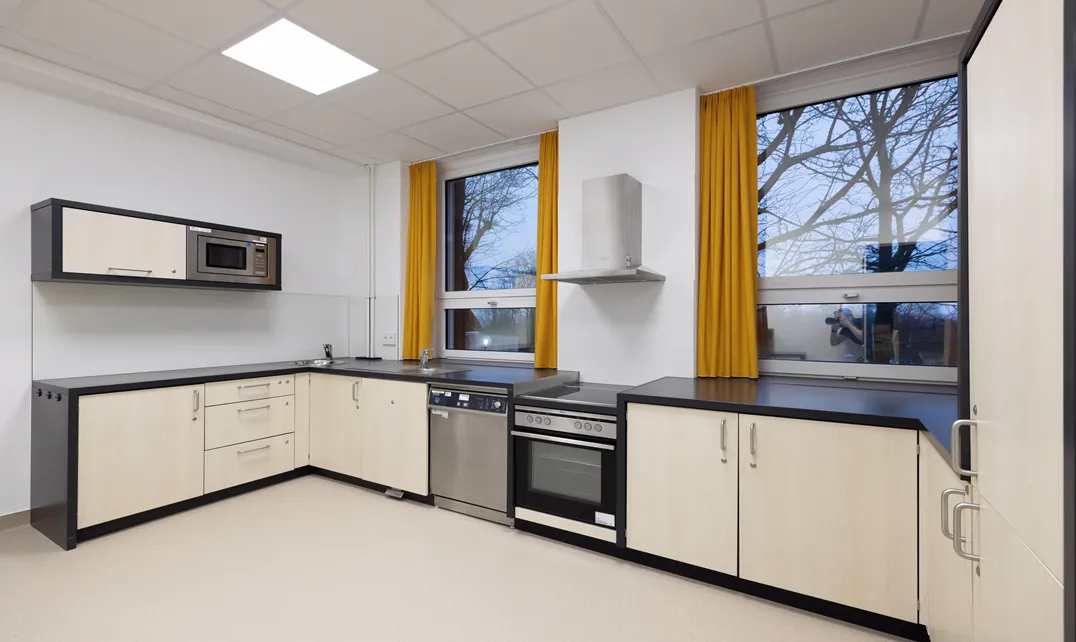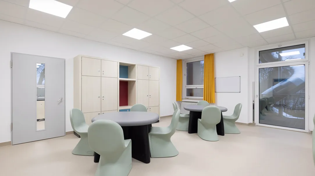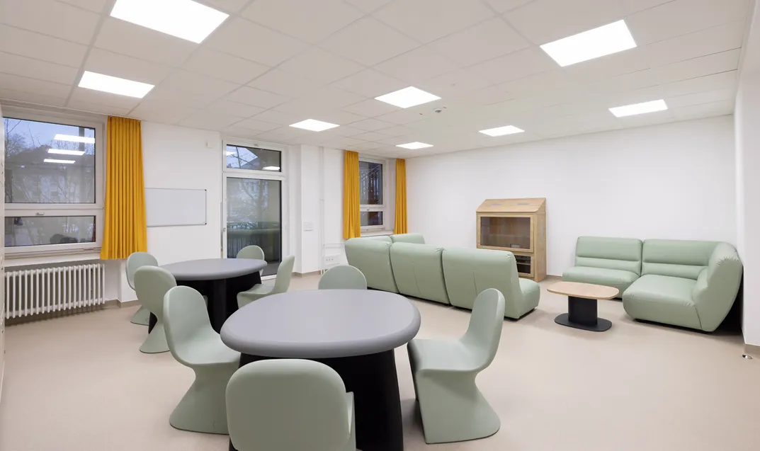 Die neuen Räumlichkeiten umfassen unter anderem Einzel- und Doppelzimmer, Gemeinschaftsbereiche, einen geschützten Außenbereich sowie spezielle Räume zur Krisenintervention. Eine interne schulische Beschulung ist in Zusammenarbeit mit der Michael-Ende-Schule sichergestellt.