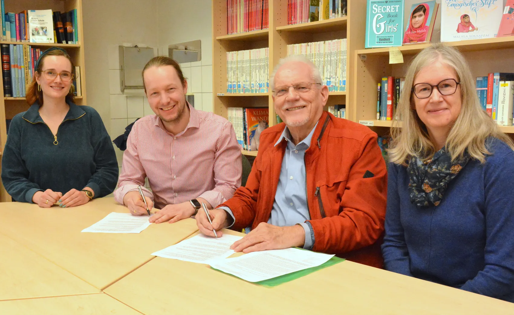 Der Förderverein Freunde der Stadtbücherei will den Poetry-Slam-Nachwuchs in Lüdenscheid weiter fördern. Am Freitag, 20. Februar, unterschrieben Dorothee Maschmeier (Deutschlehrerin), Martin Lisek (didaktischer Leiter) sowie Rolf Scholten (Freunde der Stadtbücherei) und Dagmar Plümer (Leiterin der Stadtbücherei) den Kooperationsvertrag. Er macht für dieses Jahr die Zusammenarbeit perfekt.