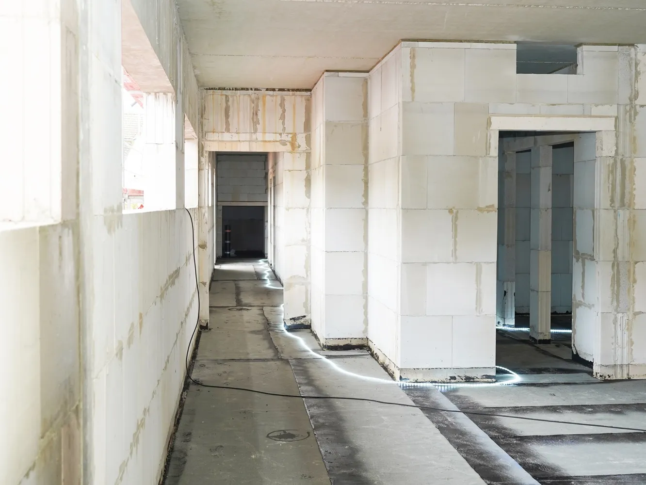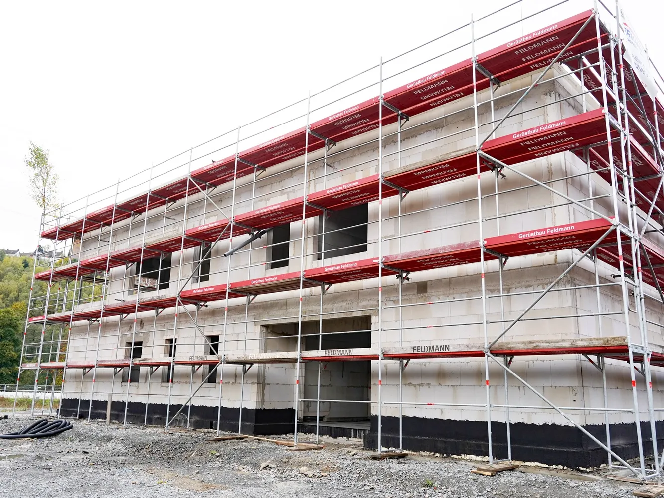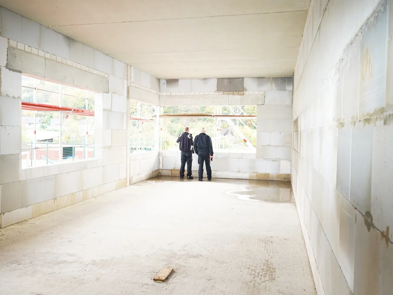 Zuletzt wurde seit dem 13. Oktober das Dach bearbeitet, das nun von oben dicht ist. Fenster, Türen und die Fahrzeughallentore sind bereits beauftragt und Ziel ist eine dichte Gebäudehülle bis zum Dezember dieses Jahres. Dann können die Ausbauarbeiten im Innenbereich stattfinden, beispielsweise die Elektroarbeiten, Herstellen von Abgasabsaug- und Lüftungsanlage sowie die Sanitäranlagen.
