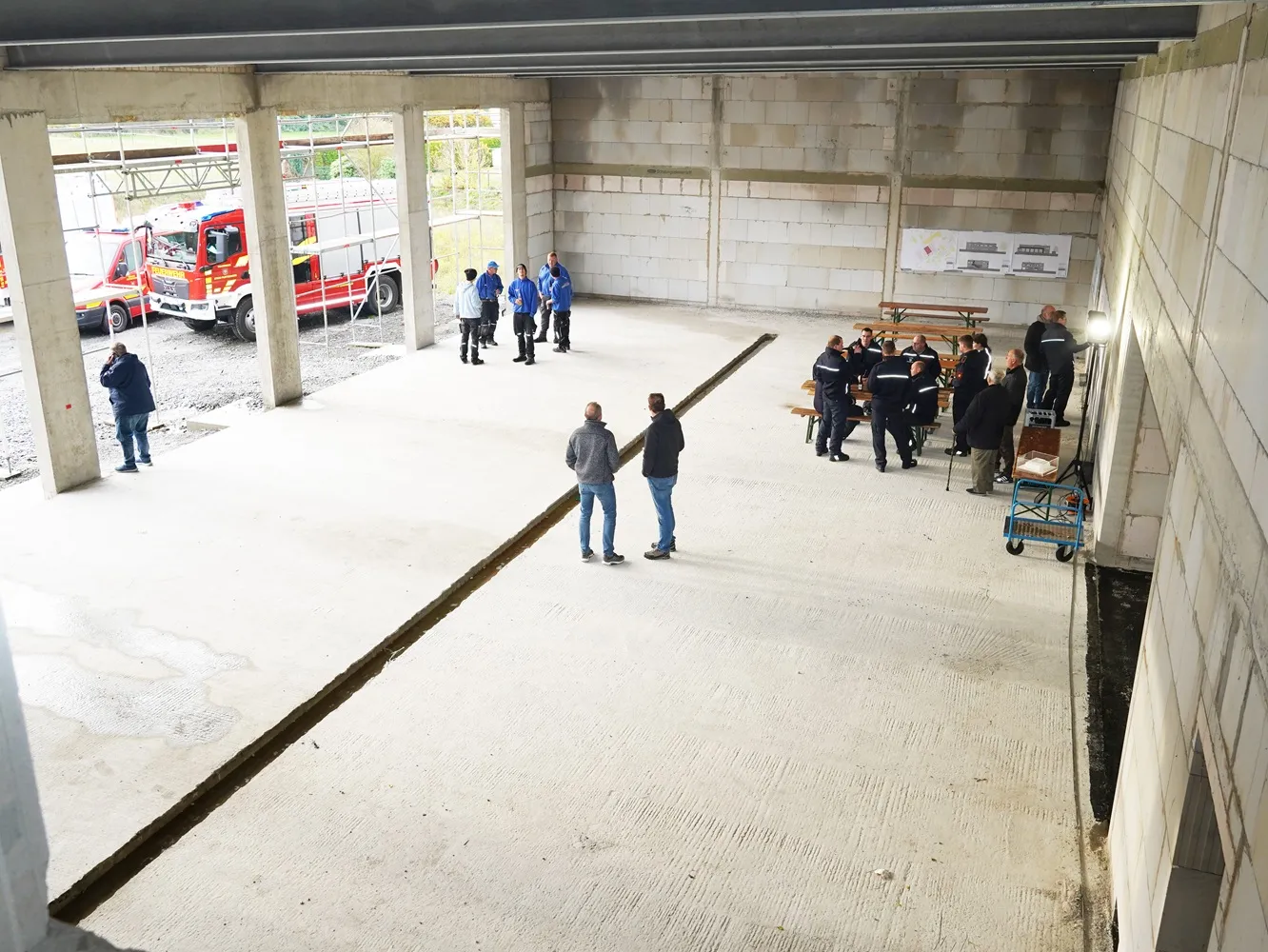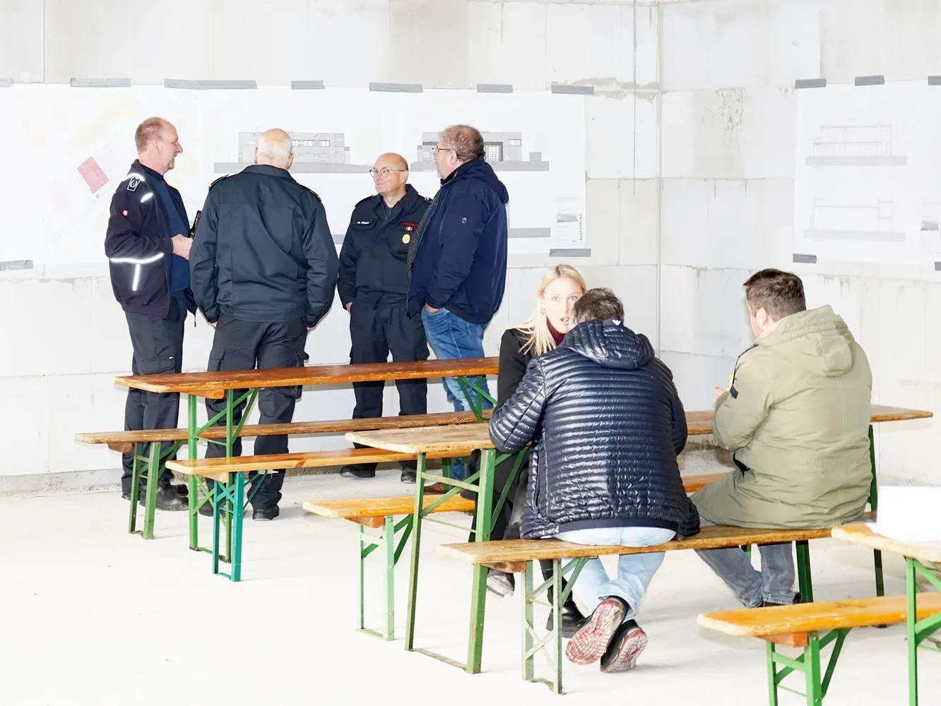 Der Rohbau des neuen Feuerwehrgerätehauses wurde von den Gästen in Augenschein genommen, wie auch die Pläne, die an den Wänden aufgehängt waren. Als gute Gastgeber hatten die Kameradinnen und Kameraden der Löschgruppe Ohle für warme Speisen vom Grill und kalte Getränke gesorgt.