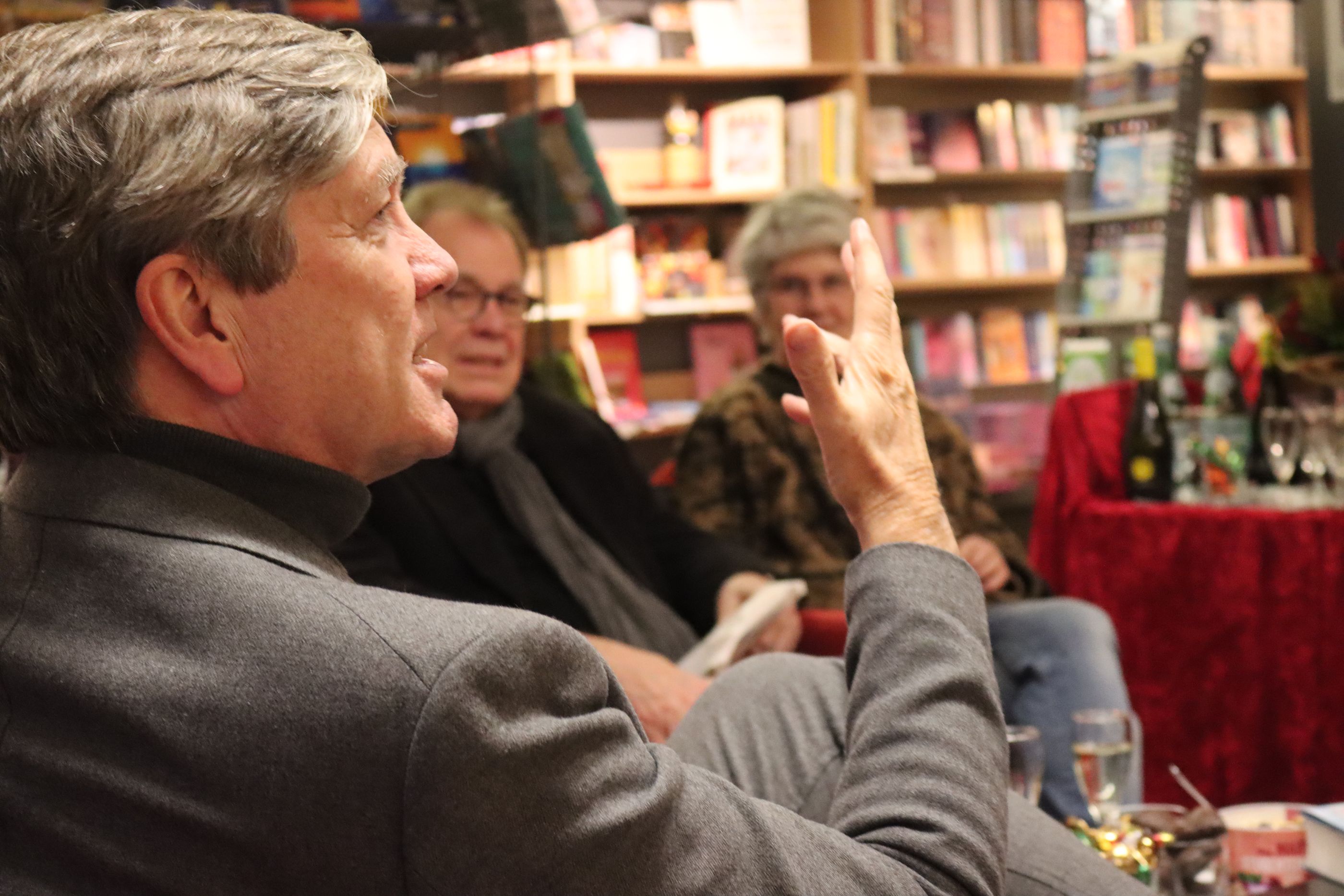 Im Bildband schildert er Stationen seines Lebens. Episoden, die ihn auch über größere Themen philosophieren lassen. Selbstbewusst und selbstironisch erzählt er, wie sein Vater ihm als Doktorand ein Pferd schenkte. Die Intention: Wenn der Geisteswissenschaftler den Gaul unterhalten kann, kann er auch eine Familie ernähren. Neben der Plauderei las er noch zwei Passagen aus dem Buch. Und da auch schnell geklärt ist, wie er, der eigentlich zum Zug müsste, nach Hagen kommt, geht die Plauderstunde nahtlos in die Verlängerung. Ein Vergnügen für alle Beteiligten. Und ja, Zeit zum Signieren nahm er sich auch noch.