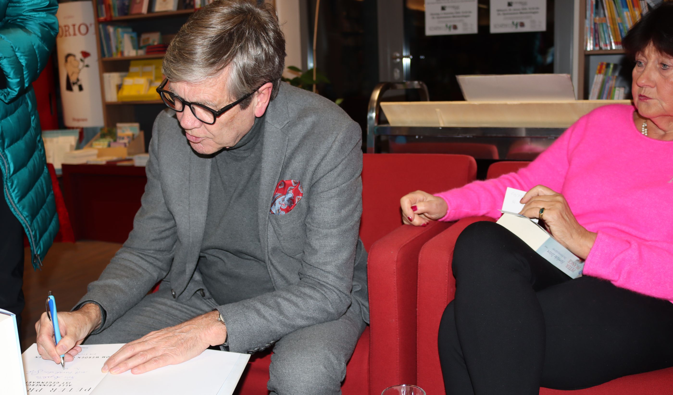Zwischenstopp auf dem Weg von Tübingen zum Termin in Hagen. In der Buchhandlung Schmitz in Meinerzhagen wurde die mit Peter Prange geplante Signierstunde am Dienstag, 2. Dezember, zu einer amüsanten Plauderstunde. Der Erfolgsautor, dessen Bücher teilweise auch verfilmt worden sind, erwies sich als eloquenter Erzähler und sympathischer Gesprächspartner, mit dem die Zeit wie im Fluge verging.