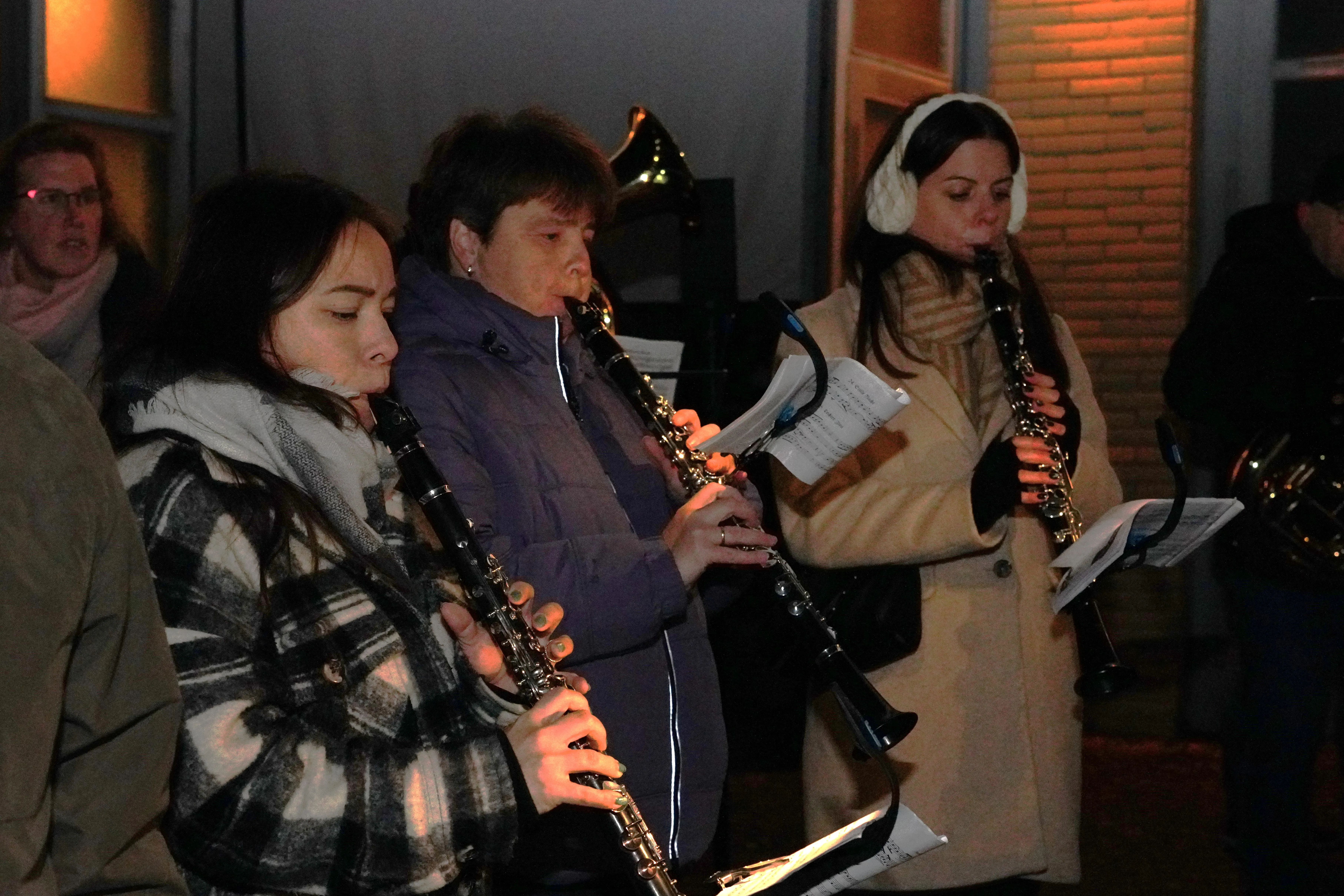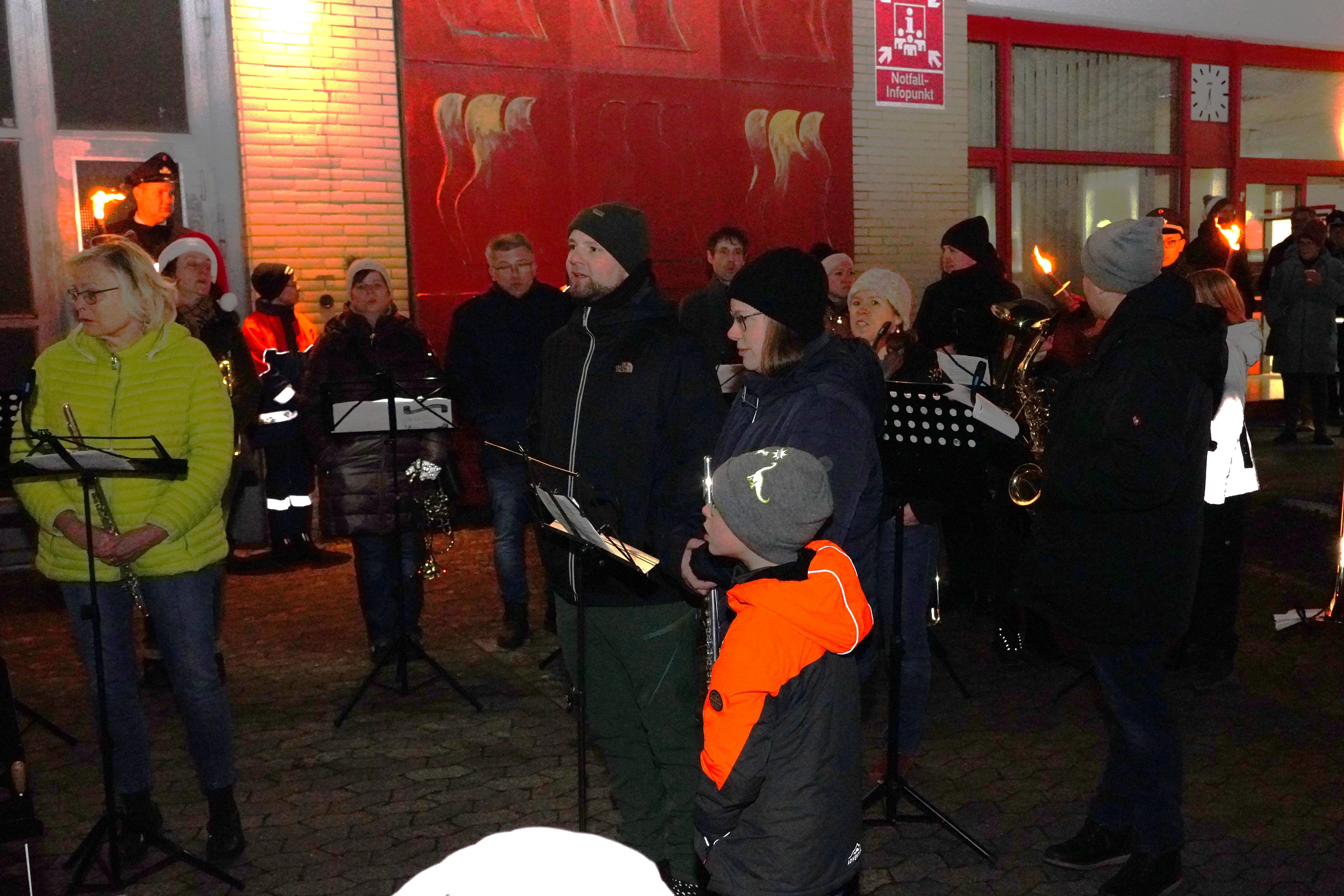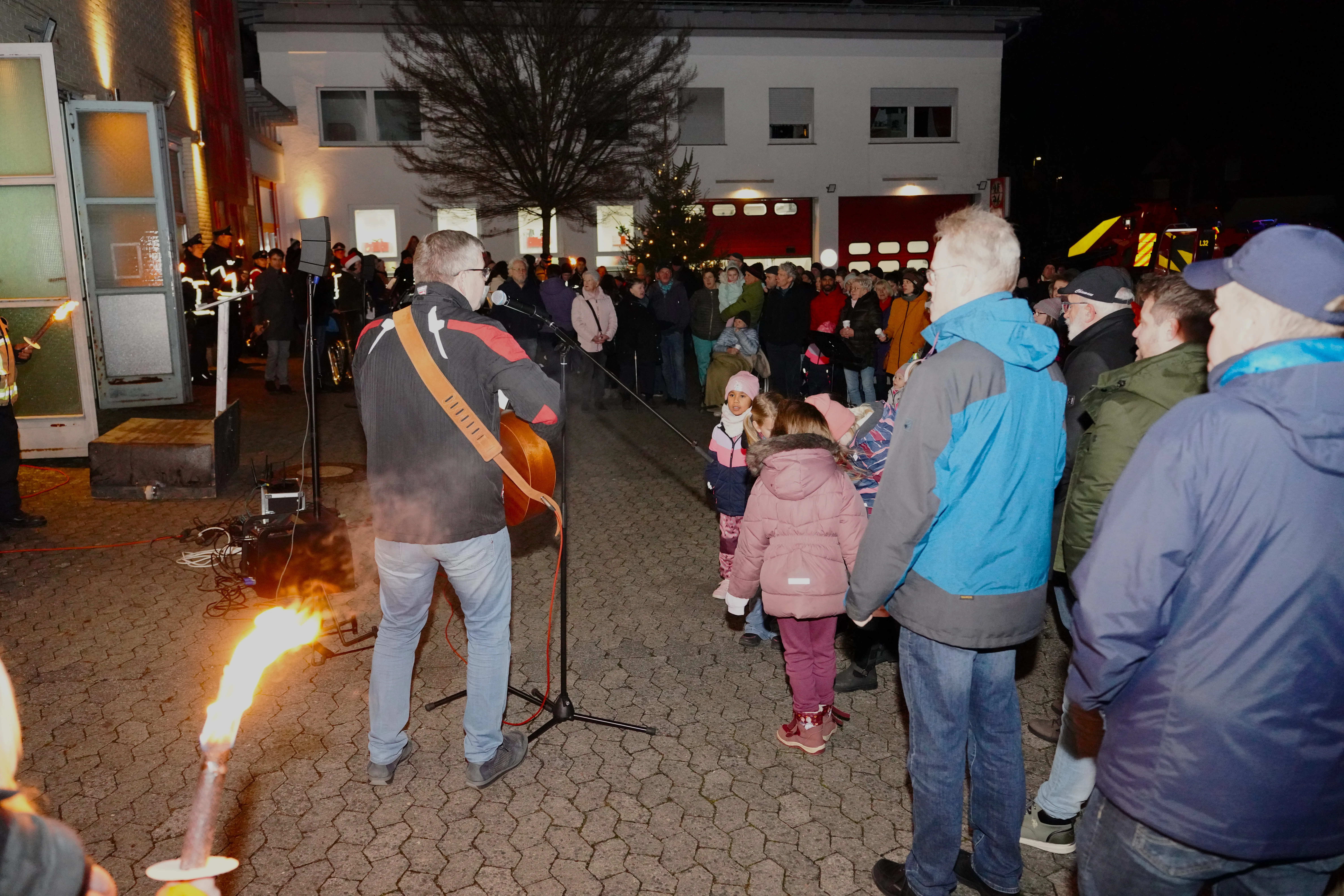 Pfarrerin Christine Rosner eröffnete das Adventssingen, hieß die Anwesenden willkommen und zeigte sich erfreut über die große Zahl der Besucher. Henning Schewe, Sänger des Plettenberger Männerchores Die Four Valleys, stimmte im Anschluss mit seiner Gitarre zum offenen Singen an. Textsicher sangen die Kinder das Lied „In der Weihnachtsbäckerei“ mit; beim nachfolgenden Lied „O du fröhliche“ und weiteren wurde der Text auf die Leinwand projiziert, sodass auch hier stimmungsvoll mitgesungen werden konnte. Weiter musikalisch begleitet wurde der alljährliche Event durch die Four Valleys und den Musikzug der Freiwilligen Feuerwehr. Andächtig und mit Fackellicht untermalt präsentierten sie den Besuchern festliche Versionen ihrer Weihnachtslieder.