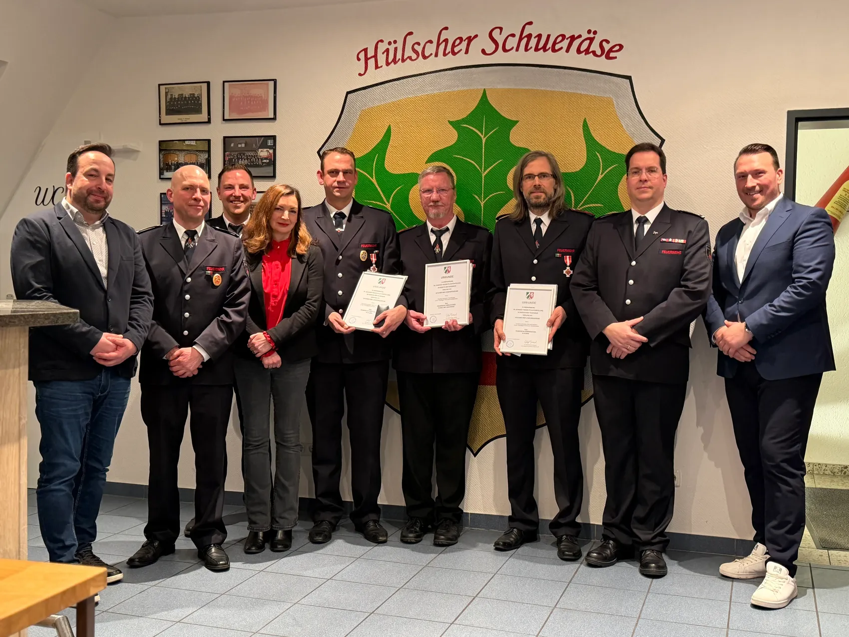 Zum Oberfeuerwehrmann wurde Claas Christian Brilla, zum Unterbrandmeister Jona Philipp Hagen, Jona Peter Nockemann und Robin Neumann befördert. Frederik Gesen übernimmt ab sofort das Amt des Jugendfeuerwehrwarts. Das Feuerwehrehrenzeichen in Silber erhielten Michael Holthaus und Marc André Kahlert, das Ehrenzeichen in Gold mit Kranz bekam Axel Münster überreicht.