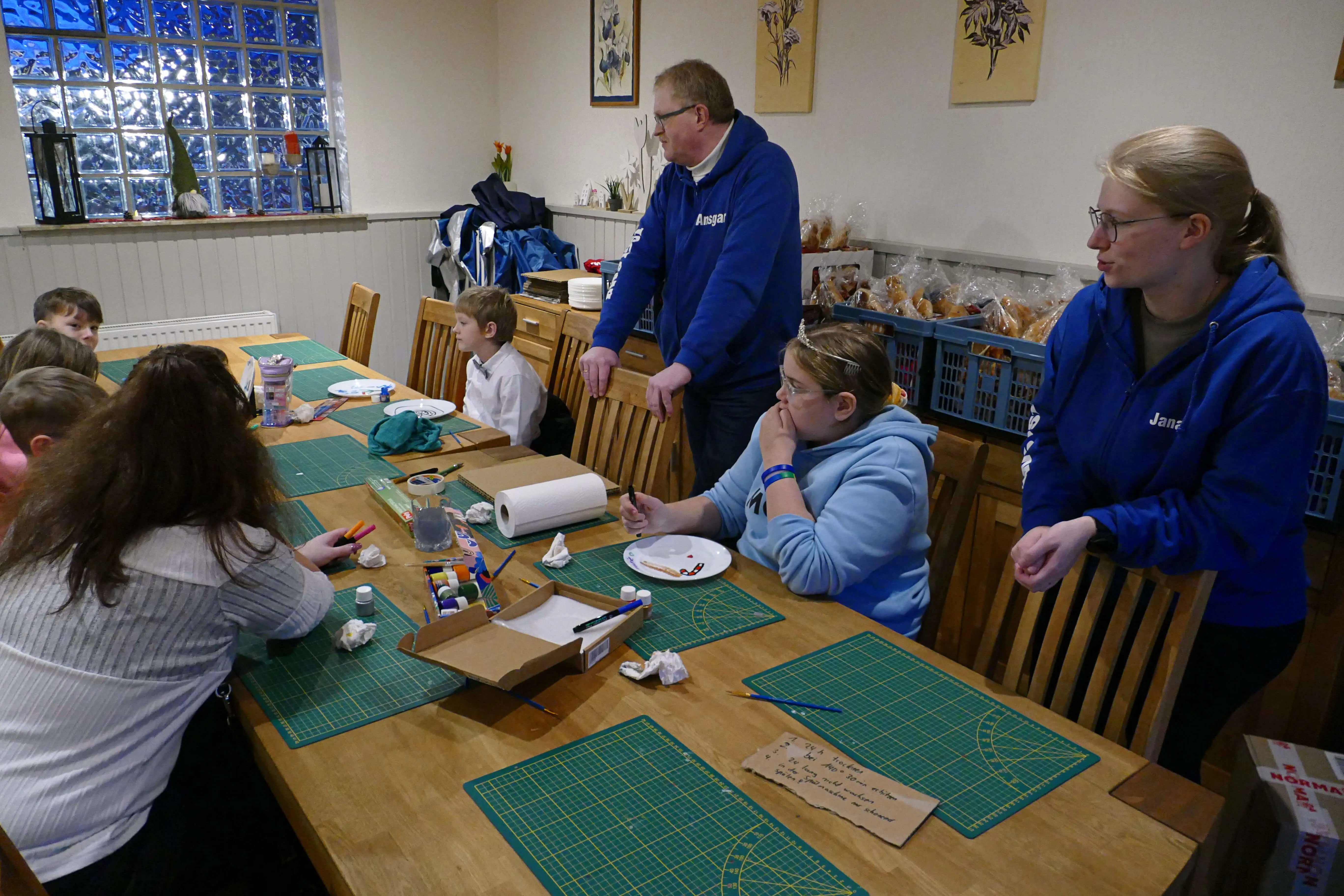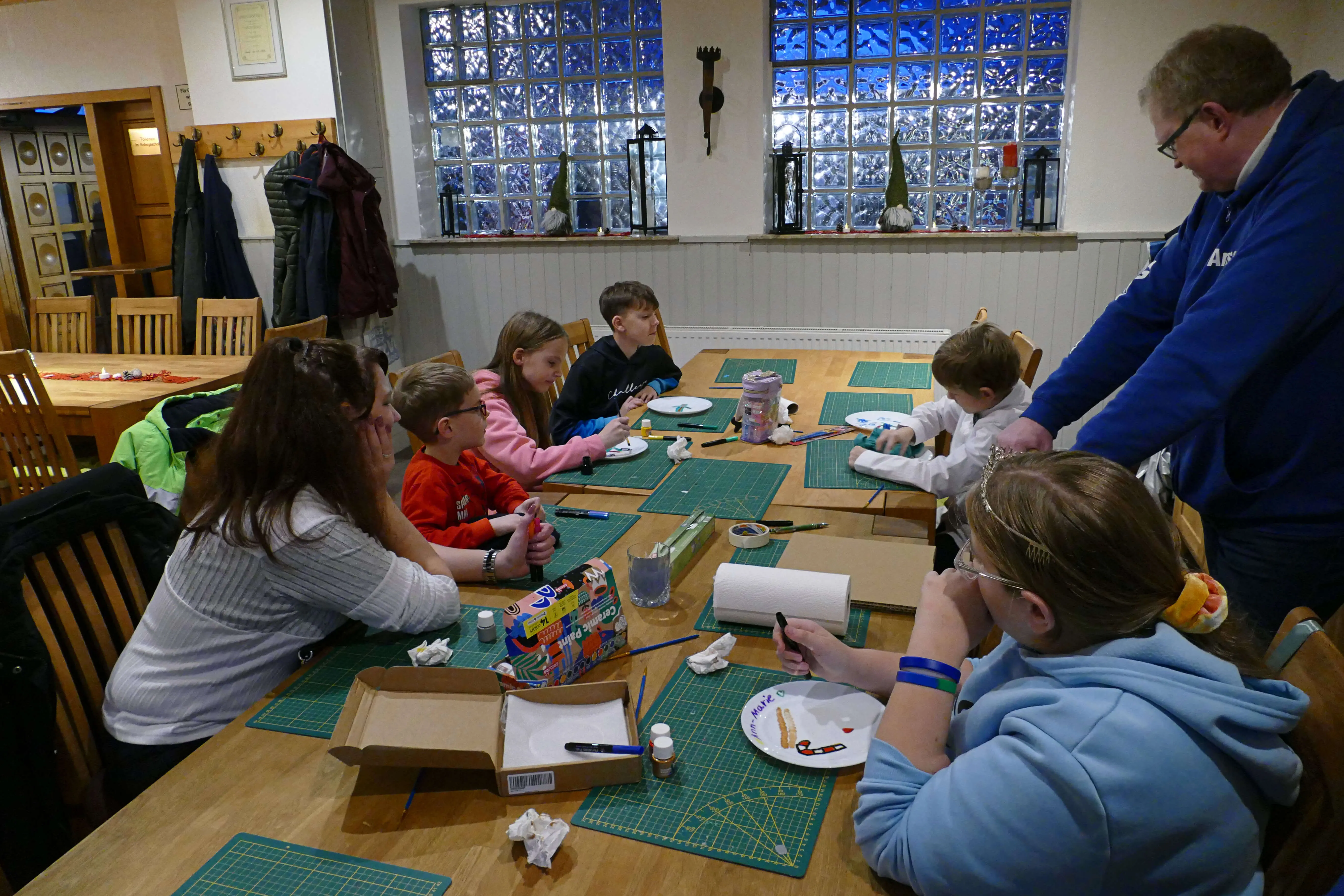 Die Kinder gestalteten mit David Schnell und Ansgar Meyer Teller, die sie mit nach Hause nehmen durften. Der Nikolaus schaute auch herein und hatte in seinem Buch nur Gutes über die Kinder stehen. Das Schützenkönigspaar Marcus Richter und Daniela Duschek-Mohr beschenkte die Mädchen und Jungen mit gefüllten Tüten.