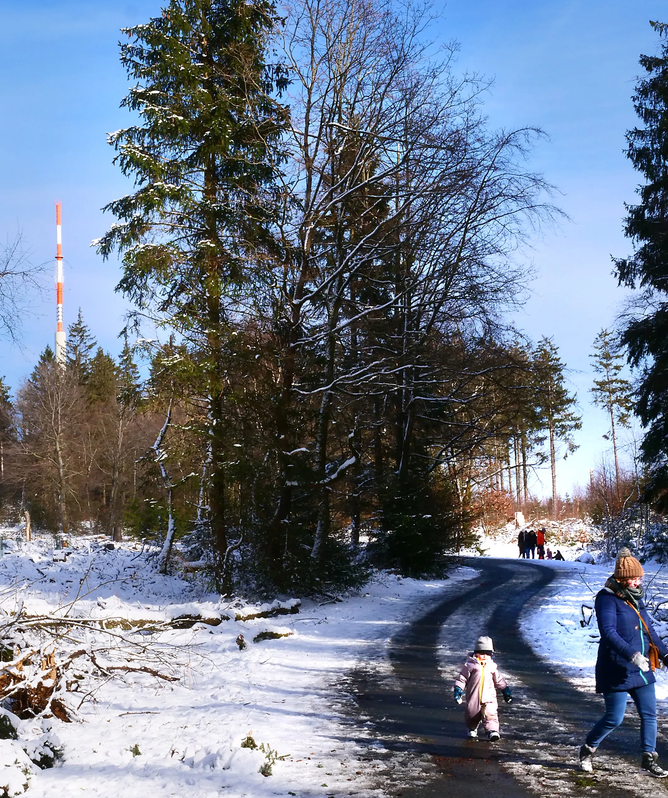 Vom Parkplatz an der L 707 gehts über eine gesperrte Straße zum WDR-Turm