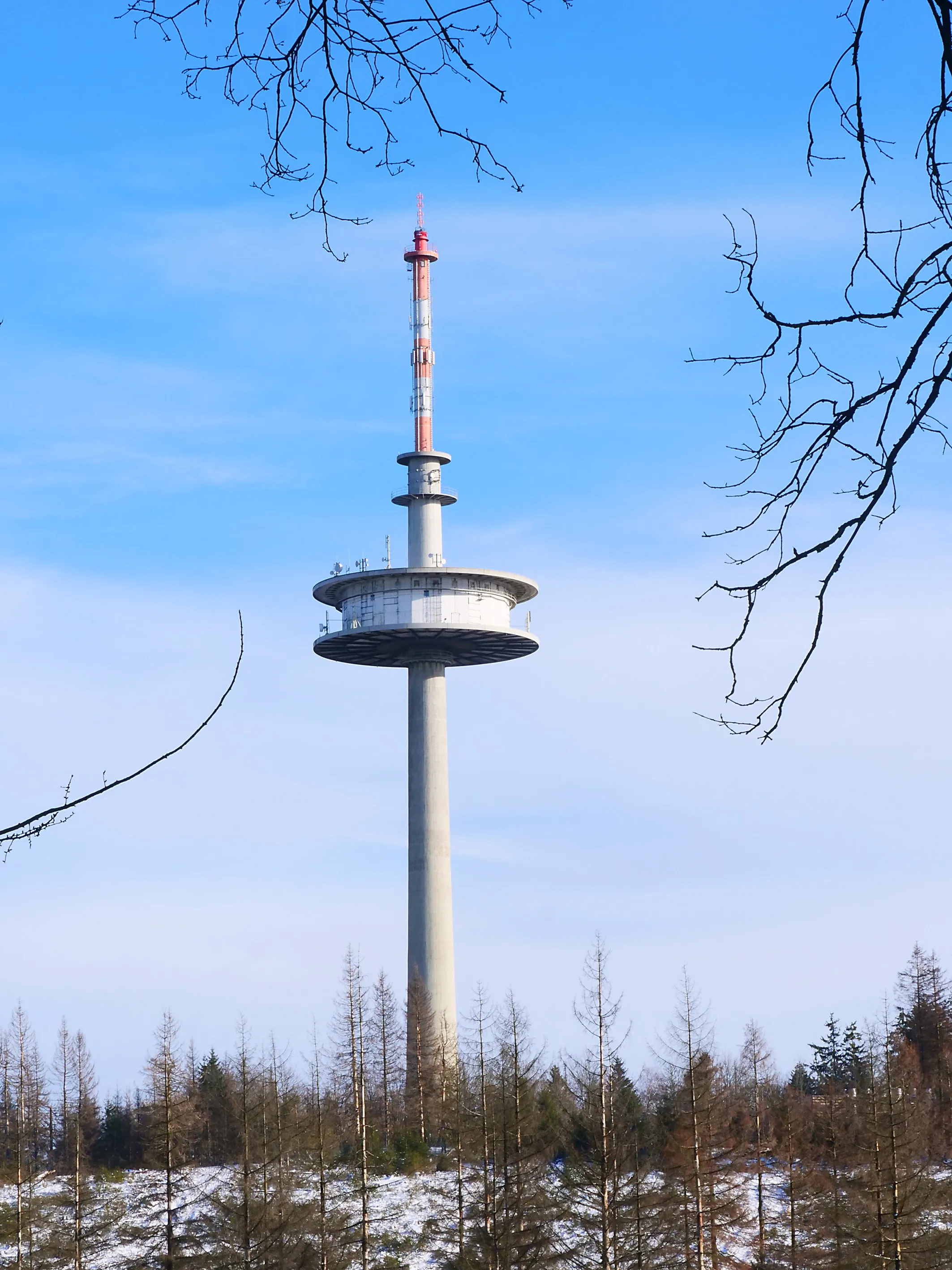 Das ging bis 1962, als der Turm wegen Feuchtigkeitsschäden gesperrt werden musste. 1986 brach gar ein großes Mauerstück aus der nach Osten weisenden Turmwand heraus. Karies! Es hätte das Ende sein können. Doch wieder wurde saniert und zwar in einer Qualität, dass der Robert-Kolb-Turm seit 1990 wieder bestiegen werden kann. Und wie man es auch sieht – dem Borkenkäfer sei zweifelhafter Dank: Seit die Fichten zur West-, Nord- und Ostsicht hin gefallen sind, bietet sich eine Aussicht, die überwältigend ist. Nach Südwesten hin sieht man bis ins Rheinland, nach Nordosten bis in die Soester Börde. Unmittelbar im Blick hat man auch den bereits angesprochenen WDR-Sendeturm sowie zwei weitere große Sendeanlagen.