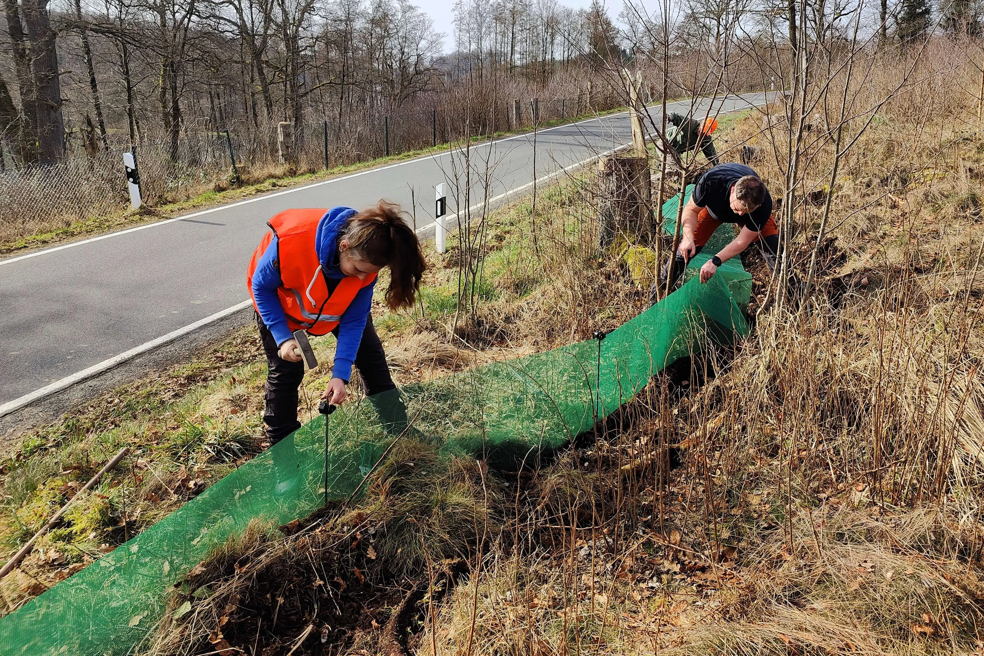Da die Tiere dabei eine Landstraße überqueren müssen, engagieren sich seit mittlerweile 16 Jahren der BUND Kierspe-Meinerzhagen, der NABU, der Hegering sowie weitere Helferinnen und Helfer für ihren Schutz.