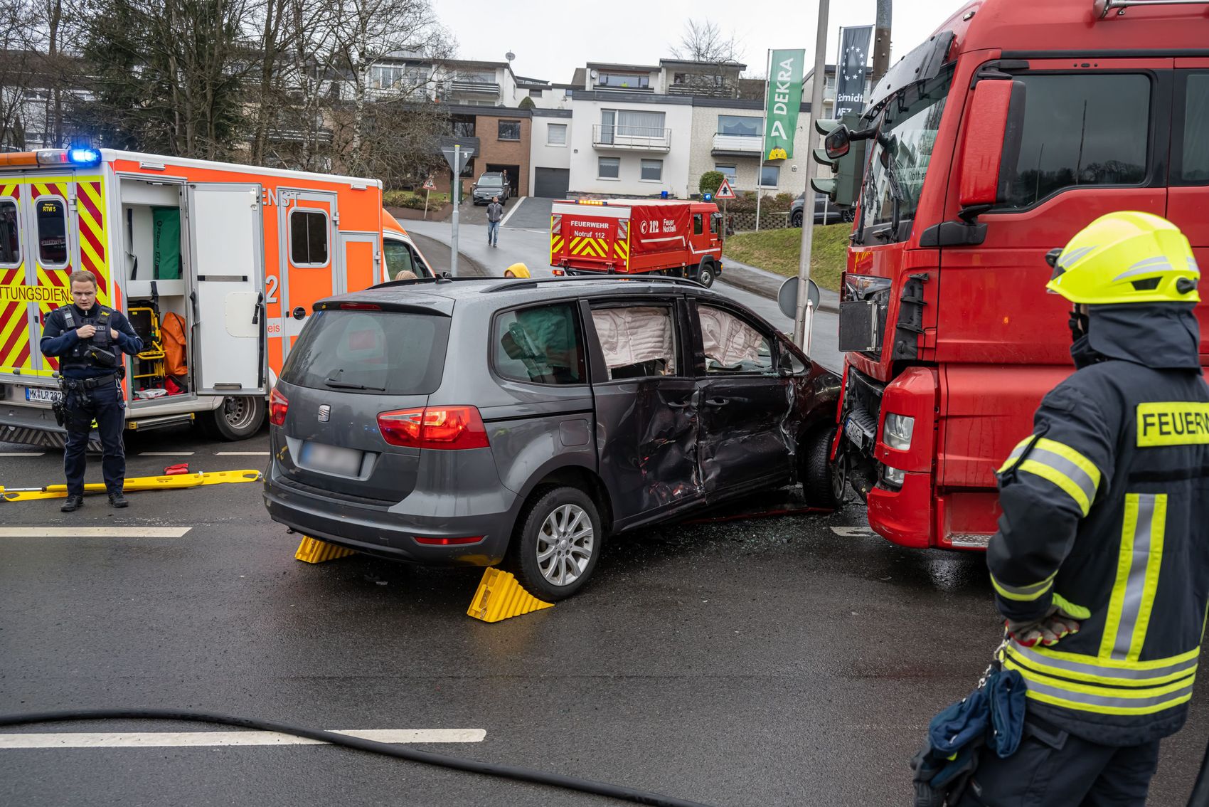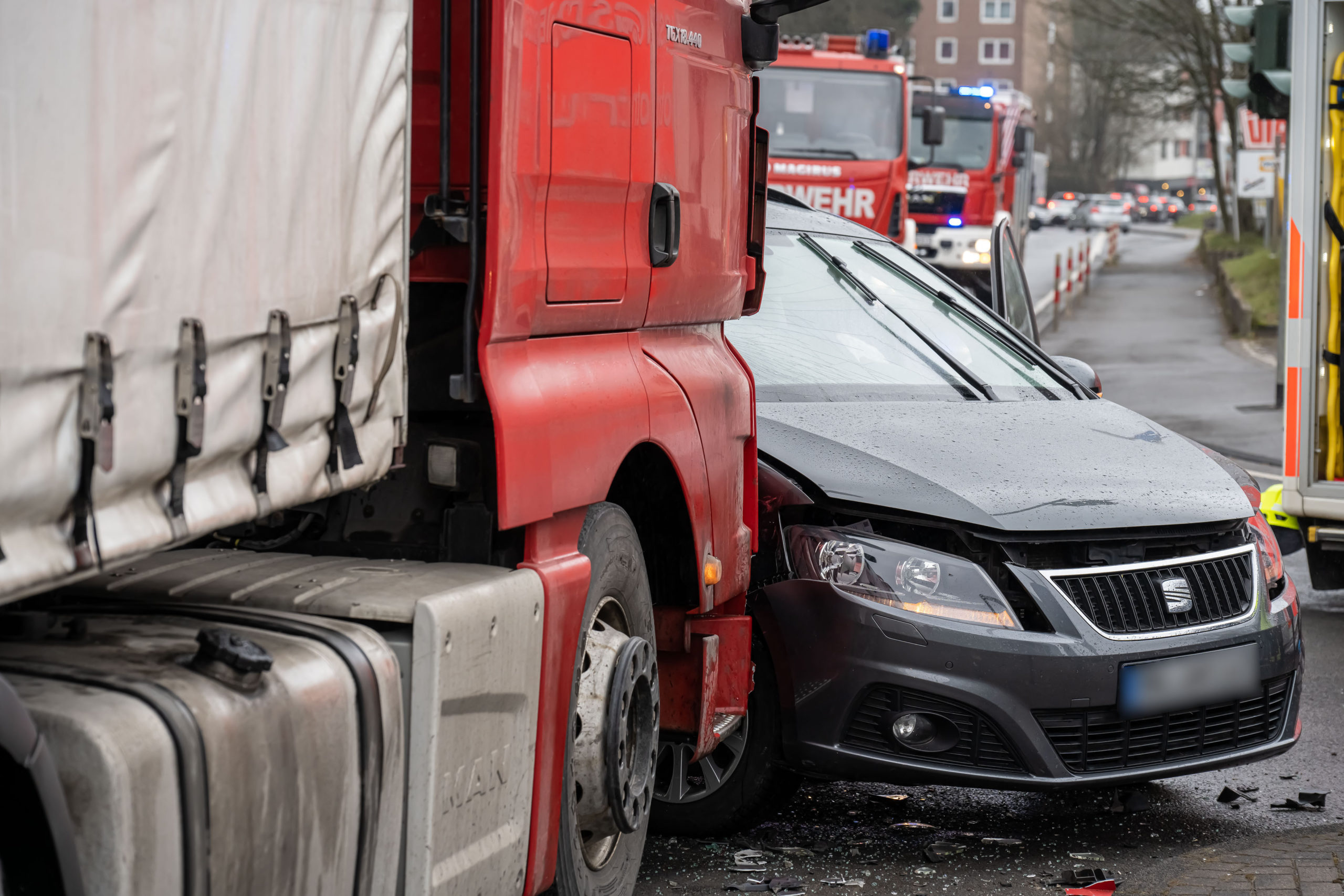 Zu einem schweren Unfall kam es am Samstagmittag, 4. März, gegen 13.25 Uhr mitten in der Meinerzhagener Innenstadt. Auf der Oststraße wurde ein Seat Van mit MK-Kennzeichen von einem Sattelschlepper erfasst. Der Autofahrer wurde dabei verletzt und kam nach der Erstversorgung im Rettungswagen ins Krankenhaus.