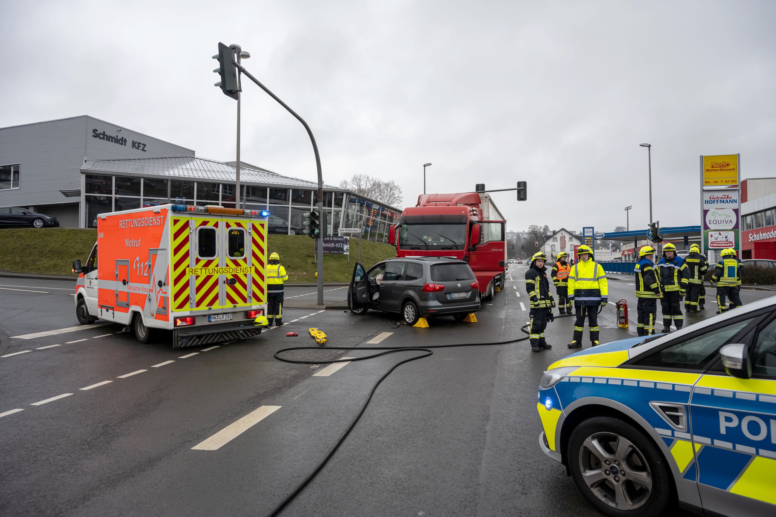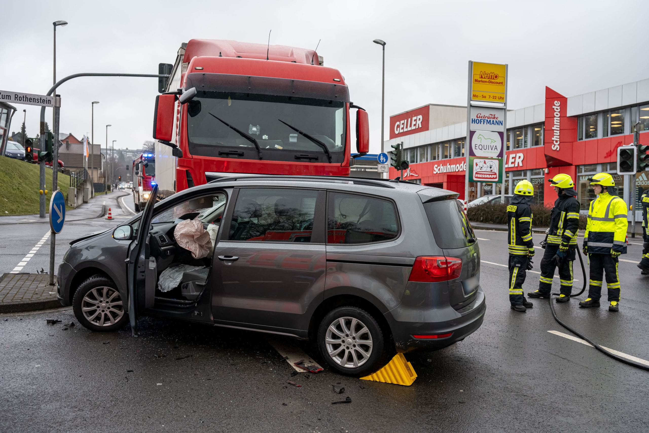 Wie schwer die Verletzungen sind, ist derzeit noch unklar. Der Fahrer des in Polen zugelassenen Lkw blieb unverletzt. Zum Unfallhergang liegen der Polizei mehrere, teils widersprüchliche Zeugenaussagen vor. Offenbar wollte der Autofahrer die Oststraße in Richtung „Zum Rothenstein“ verlassen.