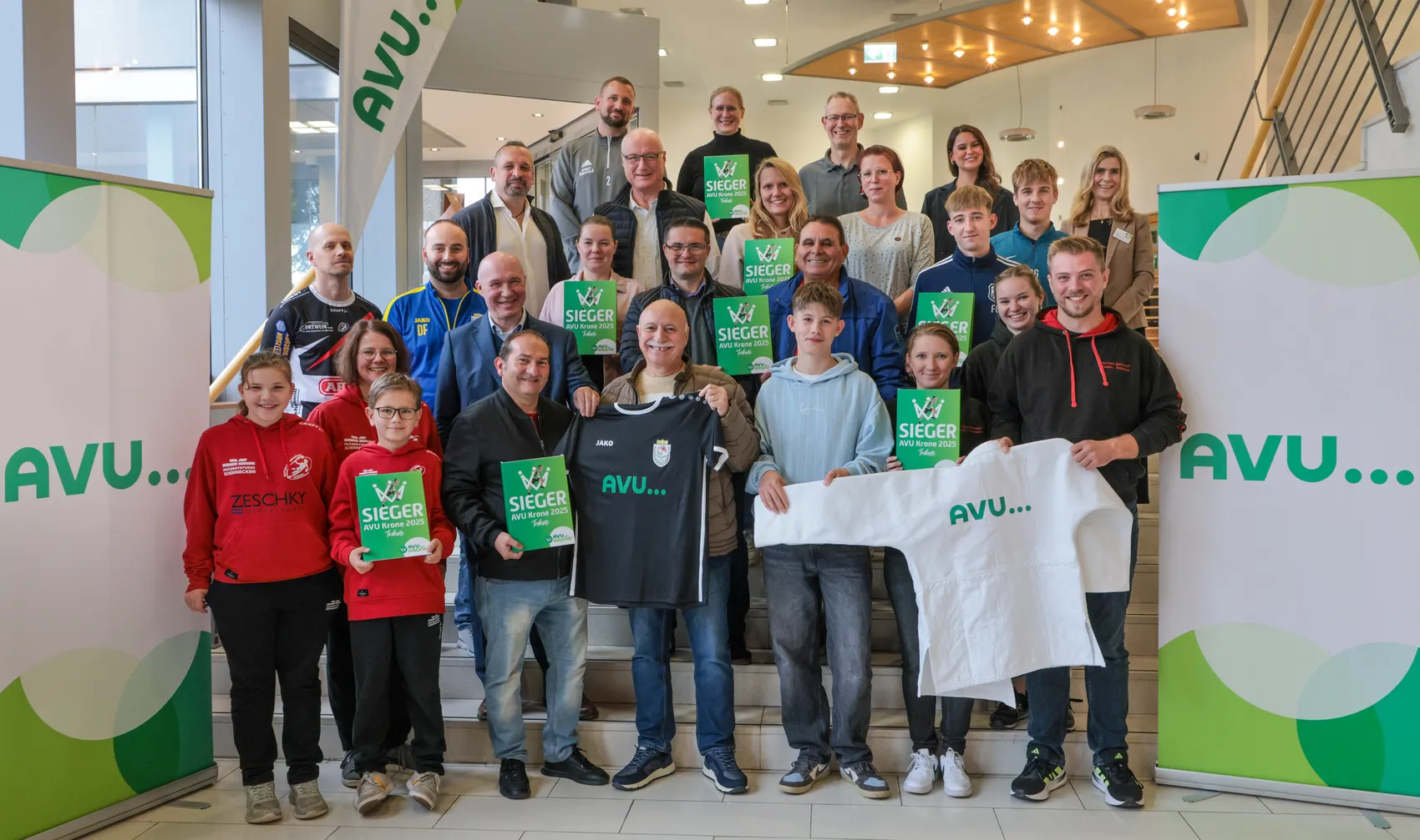 Mit der „AVU Sportkrone“ unterstützt der Energieversorger seit mittlerweile elf Jahren gezielt den Vereins- und Breitensport in der Region. Insgesamt hatten sich in diesem Jahr 32 Vereine aus sieben Städten um einen Trikotsatz beworben – zehn Teams wurden schließlich ausgewählt und erhalten jeweils 1000 Euro für neue Trikots mit AVU-Logo.