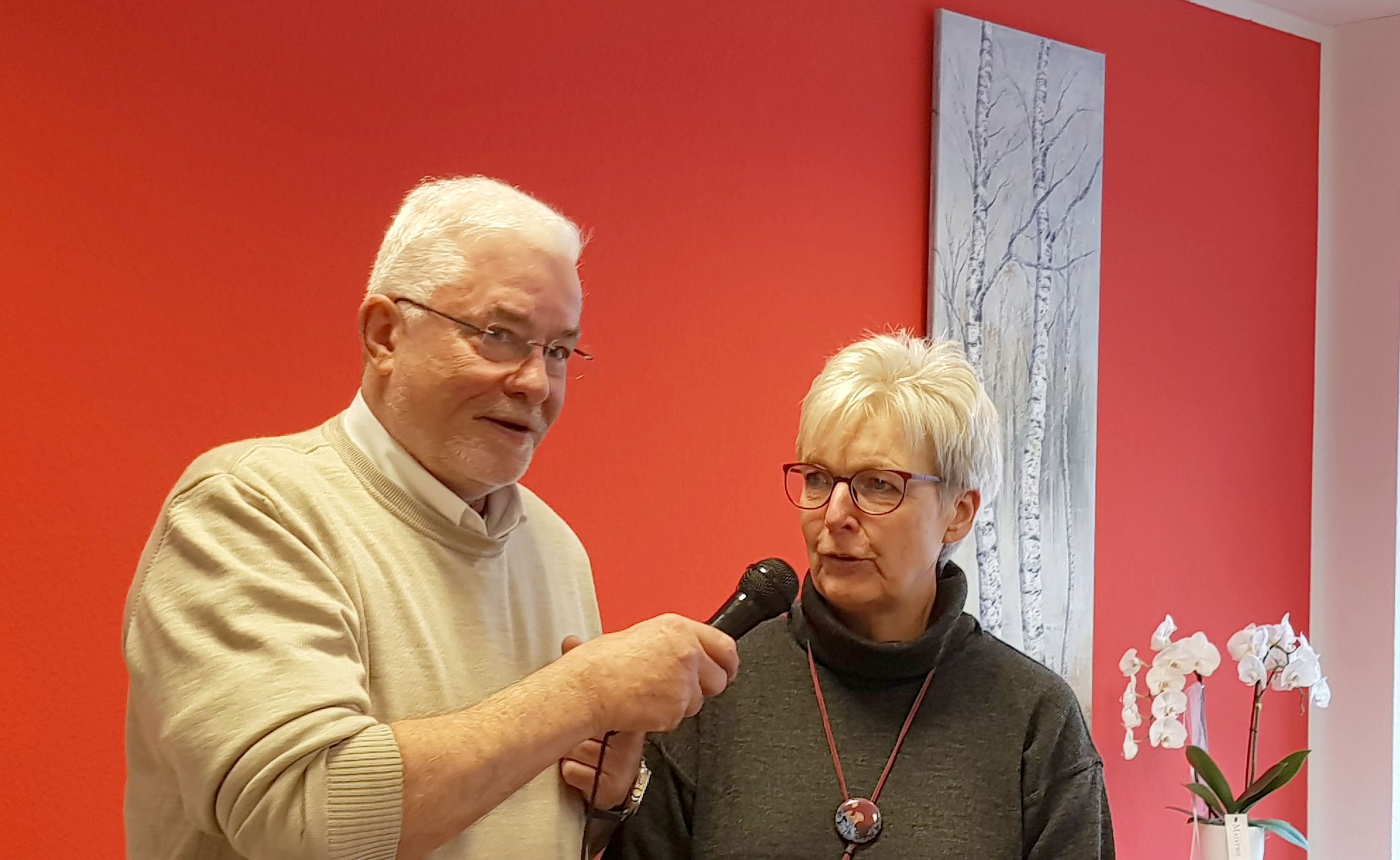 Aow-Vorsitzender Rolf Puschkarsky stellte die Künstlerin und die Intentionen beim Marktfrühstück am Vormittag vor. Nach acht Wochen im neuen Domizil habe man überlegt: „Was machen wir an die Wände?“ Weiße und rote Flächen waren den AWO-Aktiven zu wenig. Bei der Überlegung, „was vor Ort ist“, sei man auf Irene Anweiler gekommen, so Puschkarsky. Die 62-Jährige lebt und malt seit Jahren in Meinerzhagen. Mehrfach hat sie ihre Bilder auf Ausstellungen wie dem Hobbykünstlermarkt präsentiert. An der VHS im Kreis Olpe gibt sie Malkurse.