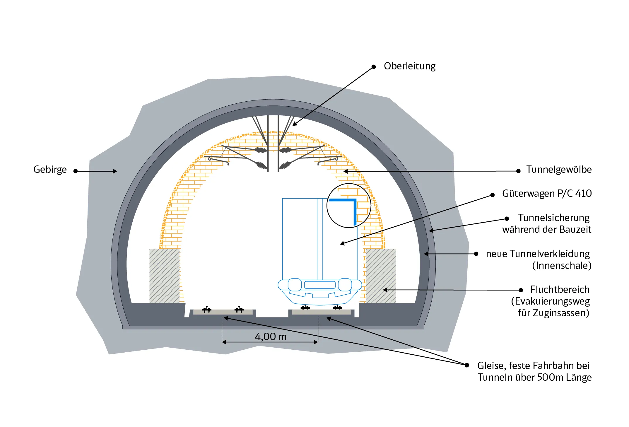 In Altena und Nachrodt sind vier Tunnel betroffen, in Werdohl weitere vier und in Plettenberg der Sieseler Tunnel. Im Wesentlichen stehen der Bahn zwei Optionen für den künftigen Tunnelbau zur Verfügung: Je nach Lage der Dinge kann ein zweigleisiger Bestandstunnel zur Eingleisigkeit heruntergestuft und ein neuer, weiterer, eingleisiger Tunnel nebenan das zweite Gleis aufnehmen. Günstiger ist es, den vorhandenen zweigleisigen Tunnel aufzuweiten, indem die alte Tunnelschale aus- und aufgebohrt, eine neue und größere Tunnelschale eingebaut wird. Schaubilder der Bahn erläutern die beiden Verfahren.