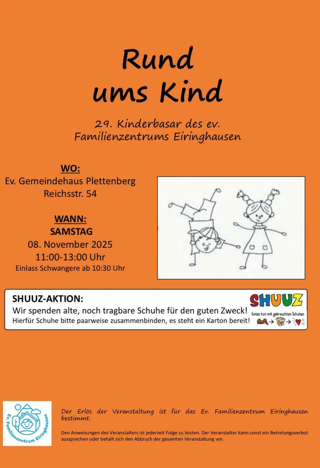 Das evangelische Familienzentrum Eiringhausen lädt für Samstag, 8. November, zum 29. Basar rund ums Kind ein. Startnummern für Verkäufer sind jetzt erhältlich.