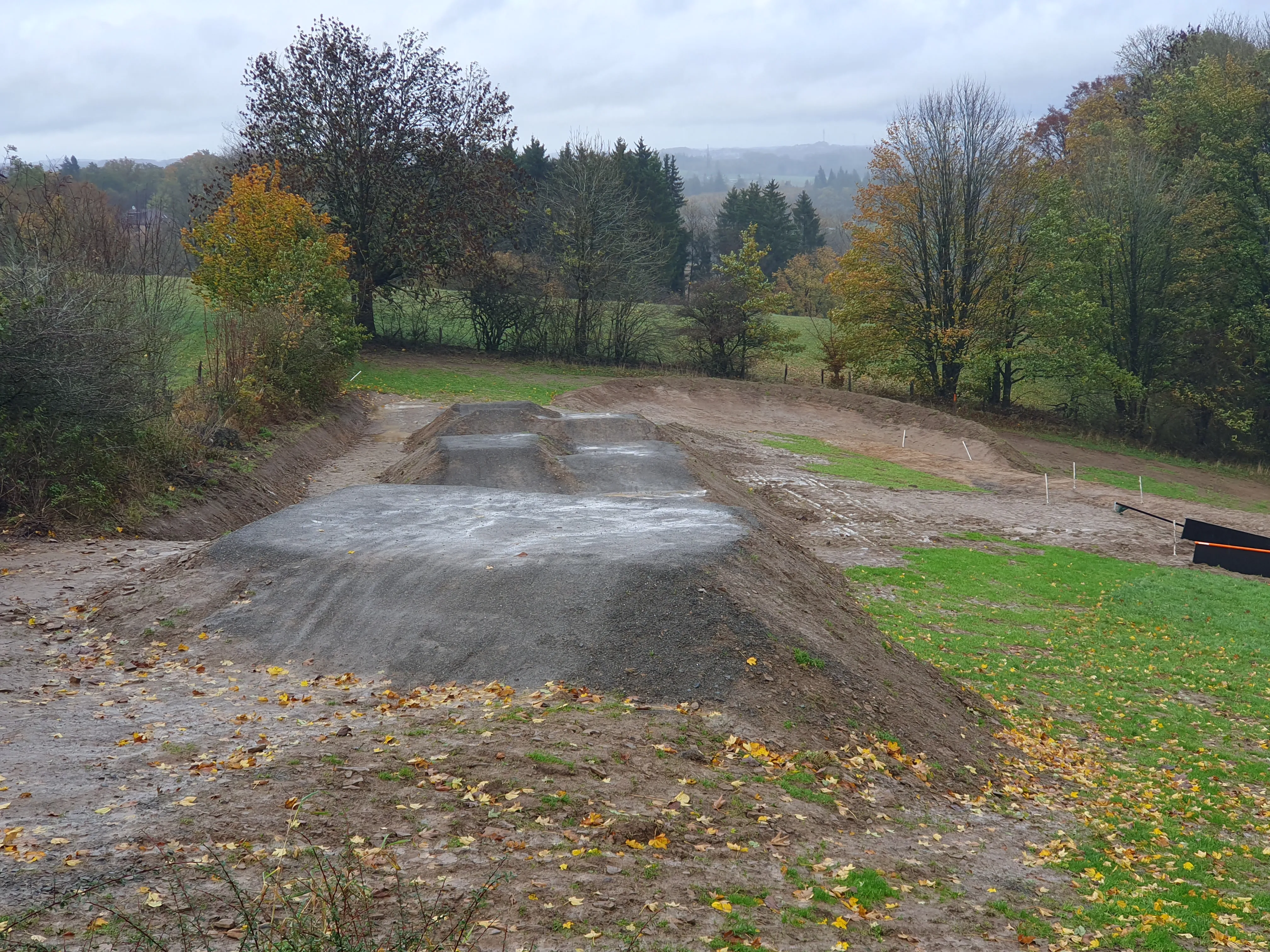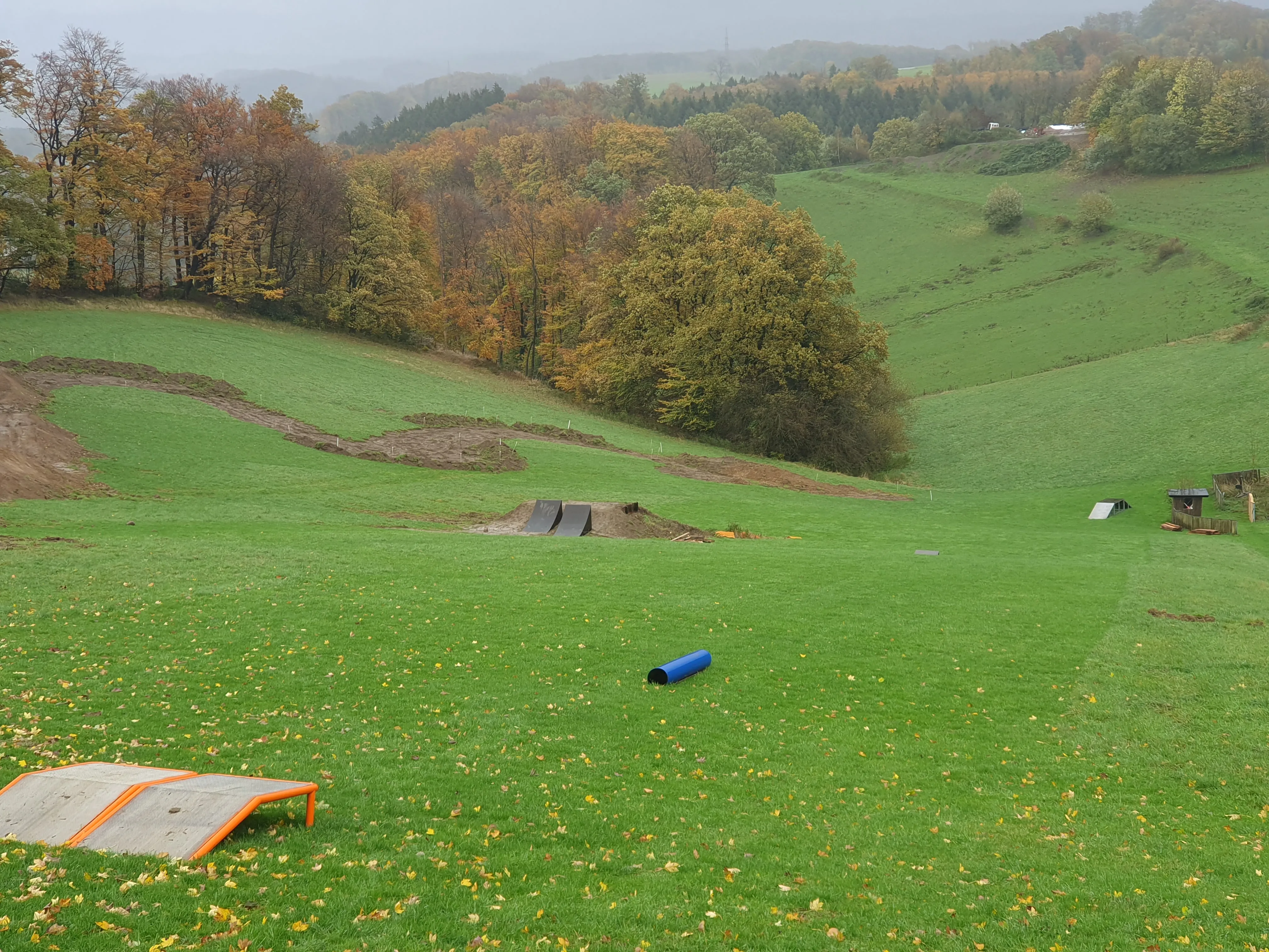 „Der Parcours ist zur Hälfte fertig gestellt“, erklärt Zilles. „Es wurden auf der kompletten Strecke die Grasnarben entfernt“. Durch das nasse Herbstwetter war der Boden jedoch stark aufgeweicht, sodass die Sprünge bislang nur bis zur ersten Steilkurve modelliert werden konnten. Die Arbeiten am restlichen Streckenabschnitt sollen voraussichtlich ab Mai 2026 fortgesetzt werden. „Bis dahin kann sich der Boden noch setzen“, erläutert Zilles. Damit verschiebt sich auch die ursprünglich geplante Eröffnung: Sie soll nun direkt nach Abschluss der Bauarbeiten, voraussichtlich zu Pfingsten 2026, stattfinden.