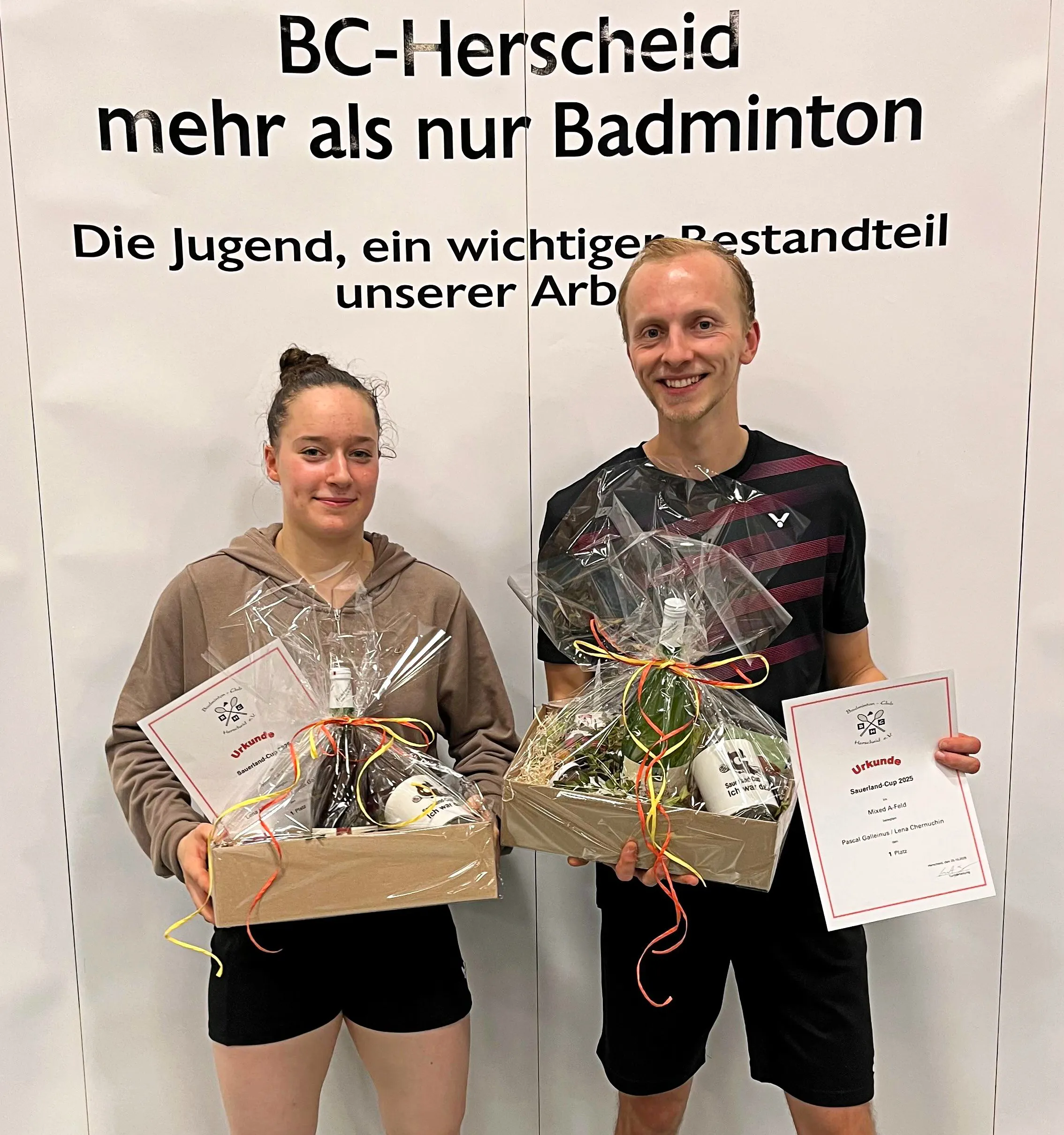 Deutlich größer war das Teilnehmerfeld im Mixed-B (Kreisliga bis Bezirksklasse) mit insgesamt elf Paarungen, darunter fünf mit Herscheider Beteiligung. Jennifer Fischer und Niklas Müller überzeugten mit einer starken Gruppenphase und kämpften sich im Viertel- und im Halbfinale jeweils in drei Sätzen durch. Im Endspiel trafen sie erneut auf Johannes Esch und Lara Wolf, die sie zuvor knapp bezwingen konnten. Dieses Mal mussten sie sich jedoch in zwei Sätzen geschlagen geben (9:21; 19:21) – ein hervorragender zweiter Platz blieb dennoch der verdiente Lohn. Ebenfalls stark präsentierten sich Christian Flori (BCH-Neuzugang) und Aimee Ryß, die mit dem Halbfinaleinzug ein Ausrufezeichen setzten. Für Tim Ruhrmann und Marie-Kristin Torbow sowie René Boueke und Ines Hermann war im Viertelfinale Endstation. Andreas Altmann und Linda Kersenbrock schieden nach hart umkämpften Spielen in der Gruppenphase aus.