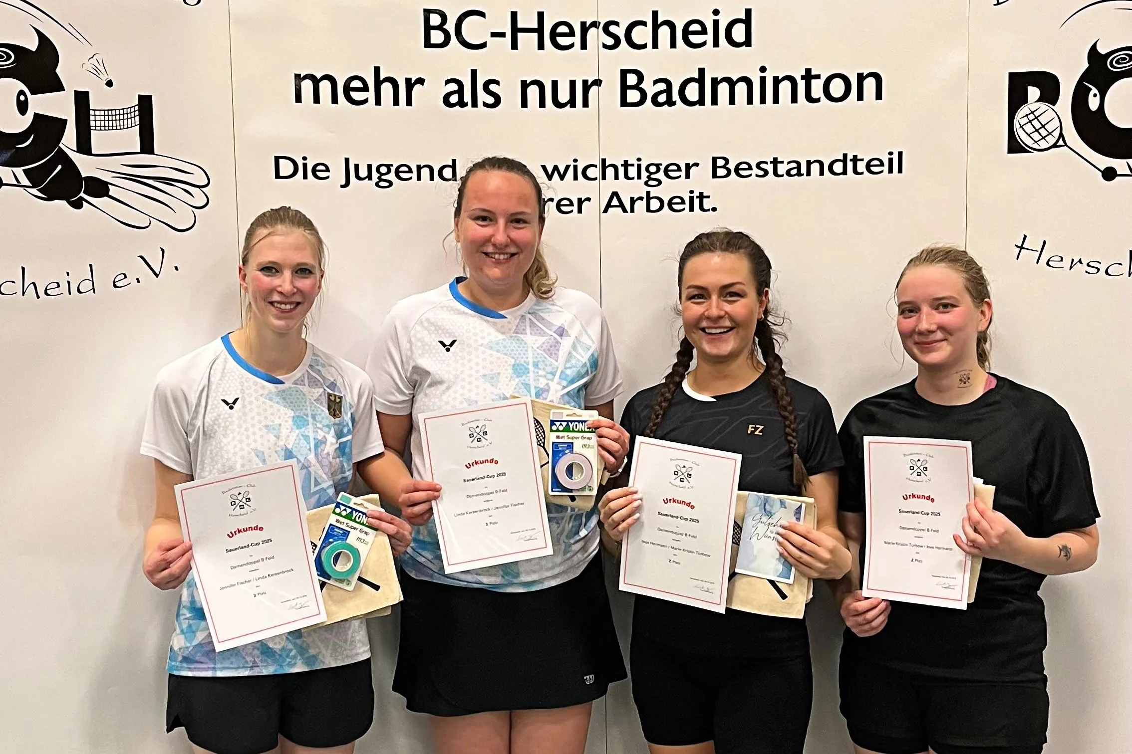 Im Damendoppel-C-Feld freuten sich Lisa Bühner und Katrin Lebus über einen starken zweiten Platz. Im B-Feld zeigten Ines Hermann und Marie-Kristin Torbow im Finale ein spannendes Kopf-an-Kopf-Duell, mussten sich jedoch knapp mit 20:22 und 20:22 geschlagen geben und landeten damit ebenfalls auf einem hervorragenden zweiten Rang. Jennifer Fischer und Linda Kersenbrock sicherten sich Platz drei – lediglich im vereinsinternen Halbfinale gegen Hermann/Torbow mussten sie sich nach drei hart umkämpften Sätzen geschlagen geben.
