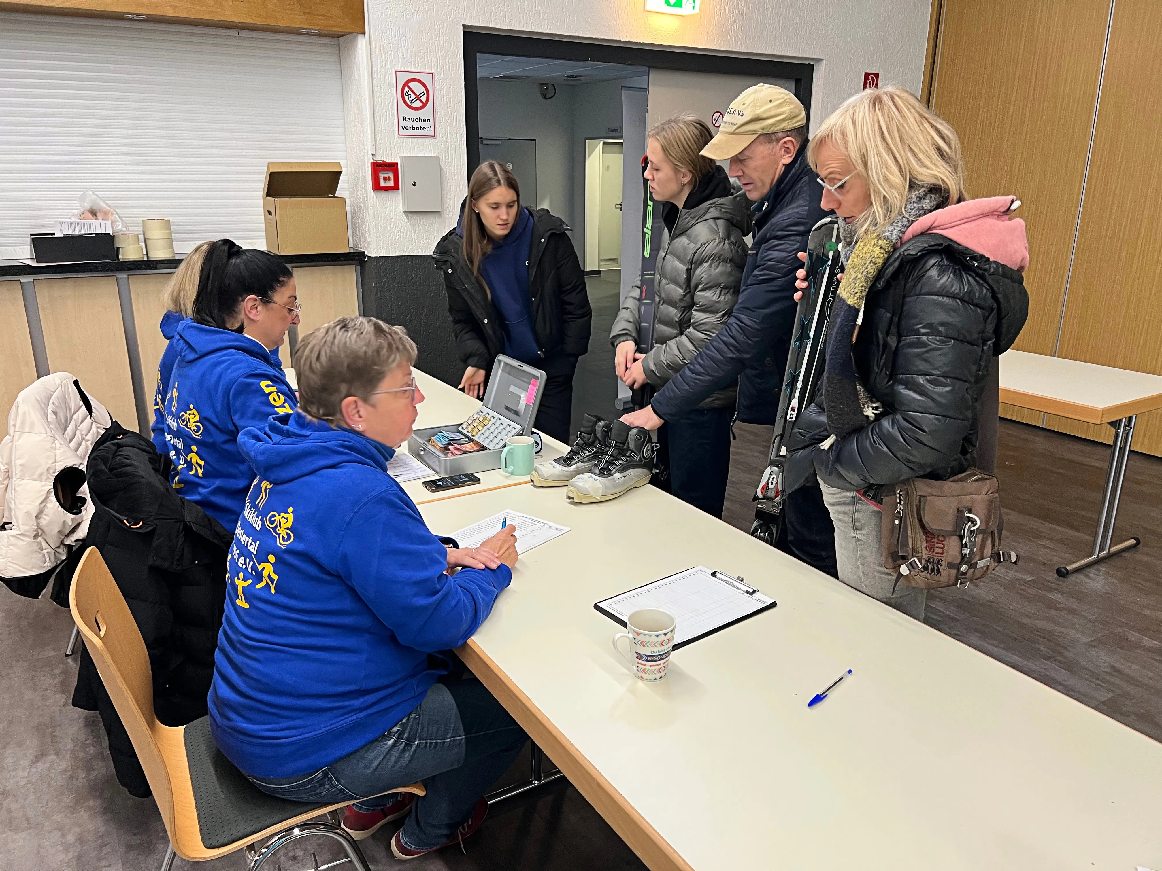 „Der größte Andrang herrschte direkt nach der Öffnung der Türen um 11 Uhr“, berichtete SKÖ-Kassiererin Melanie Brösecke. Skierfahrene SKÖ-Mitglieder standen bereit, um Hilfestellungen zu geben.