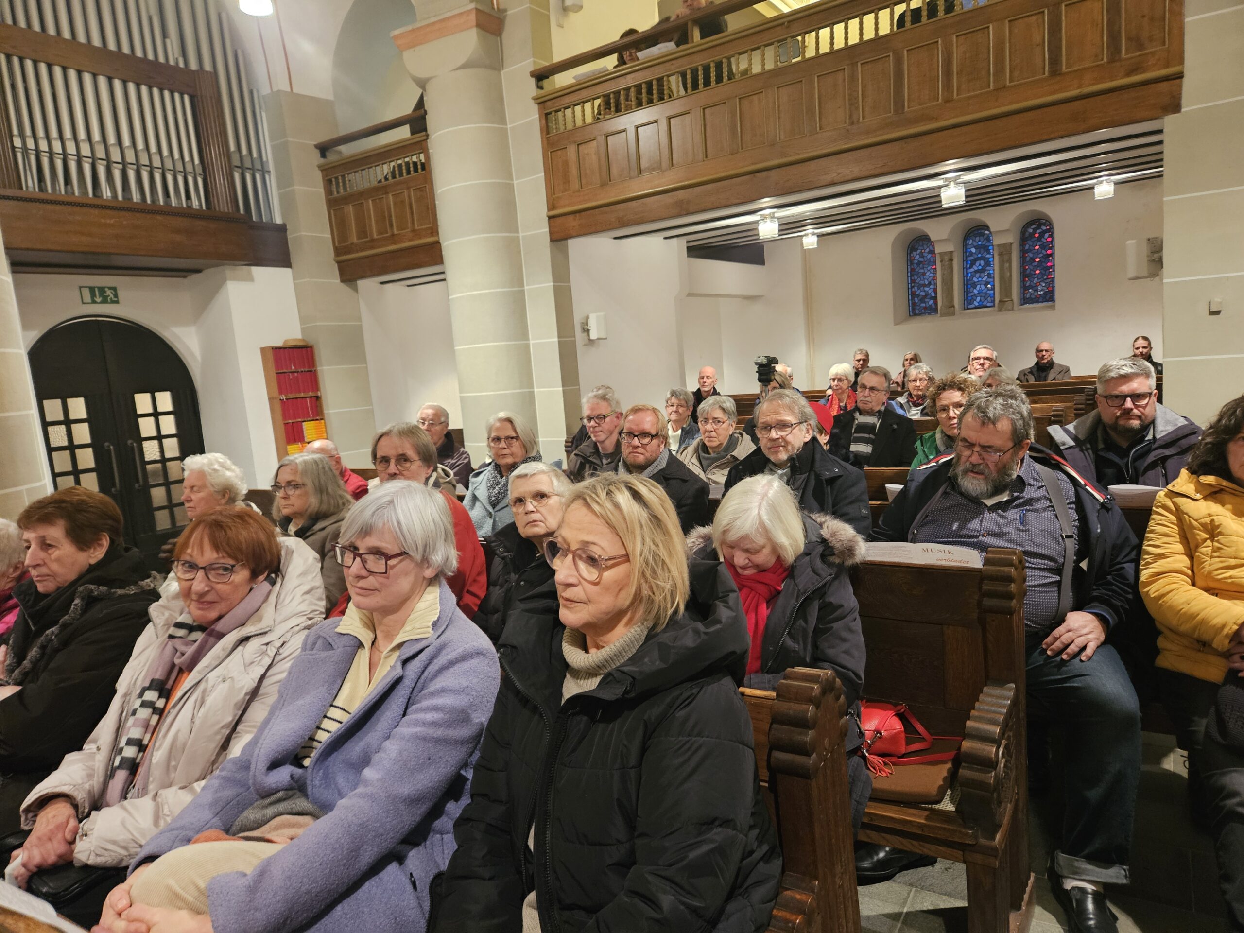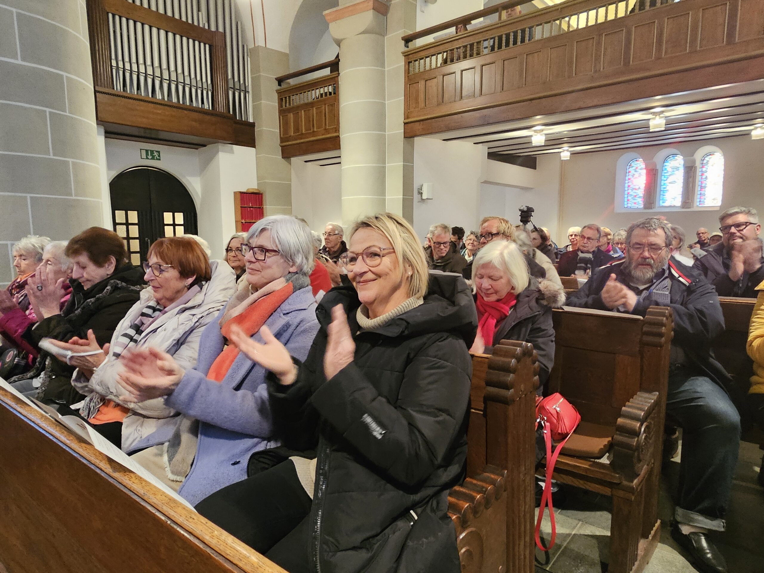Kirchenmusiker Ben Köster brillierte nicht nur als Begleitung am Klavier, sondern auch mit zwei Stücken an der Orgel. „Wenn Sie in diesem Stück meinen, Kanonenschüsse zu hören, dann ist das durchaus so gewollt“, erzählte Petra Kurzawski im Vorfeld.