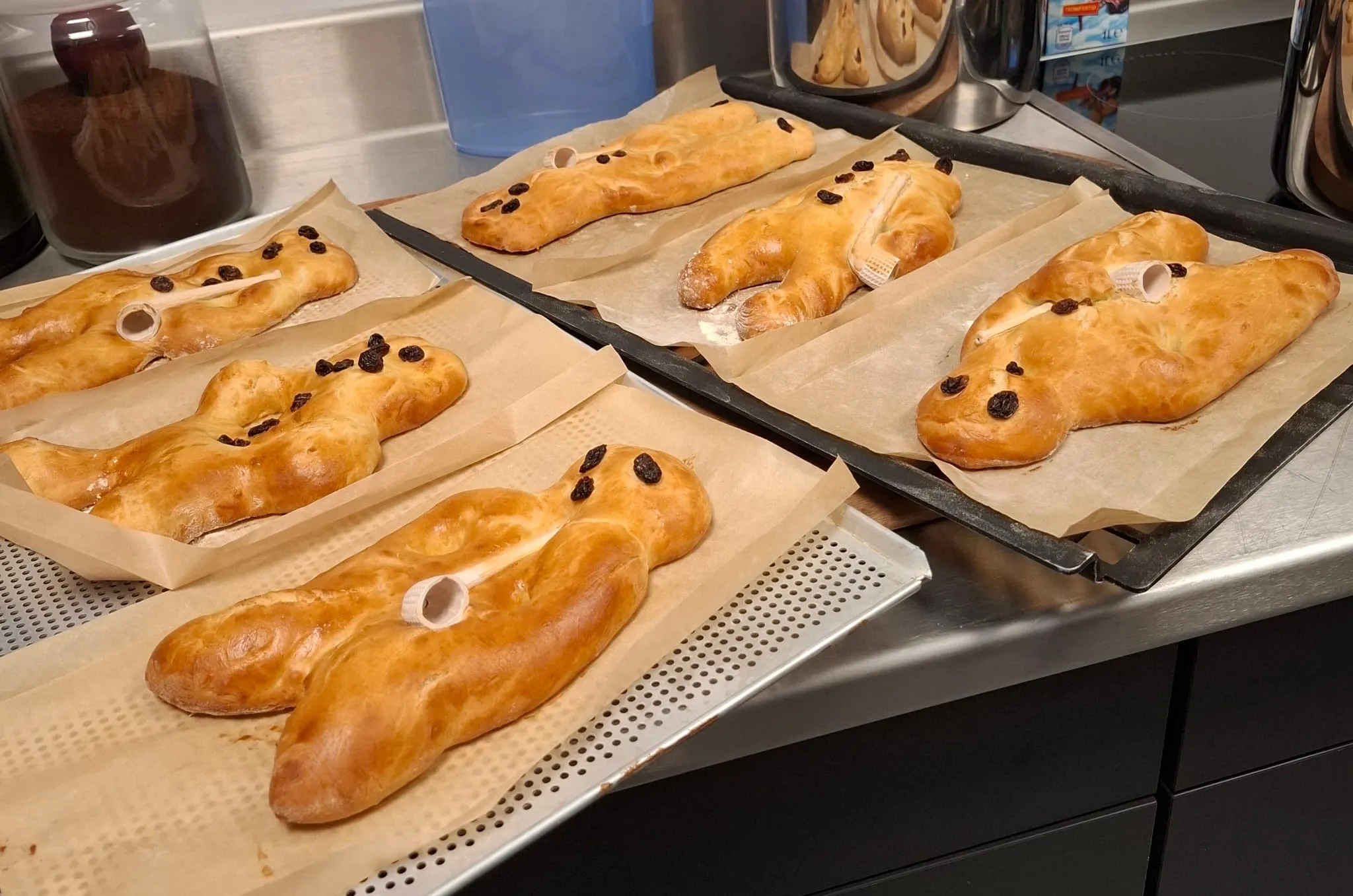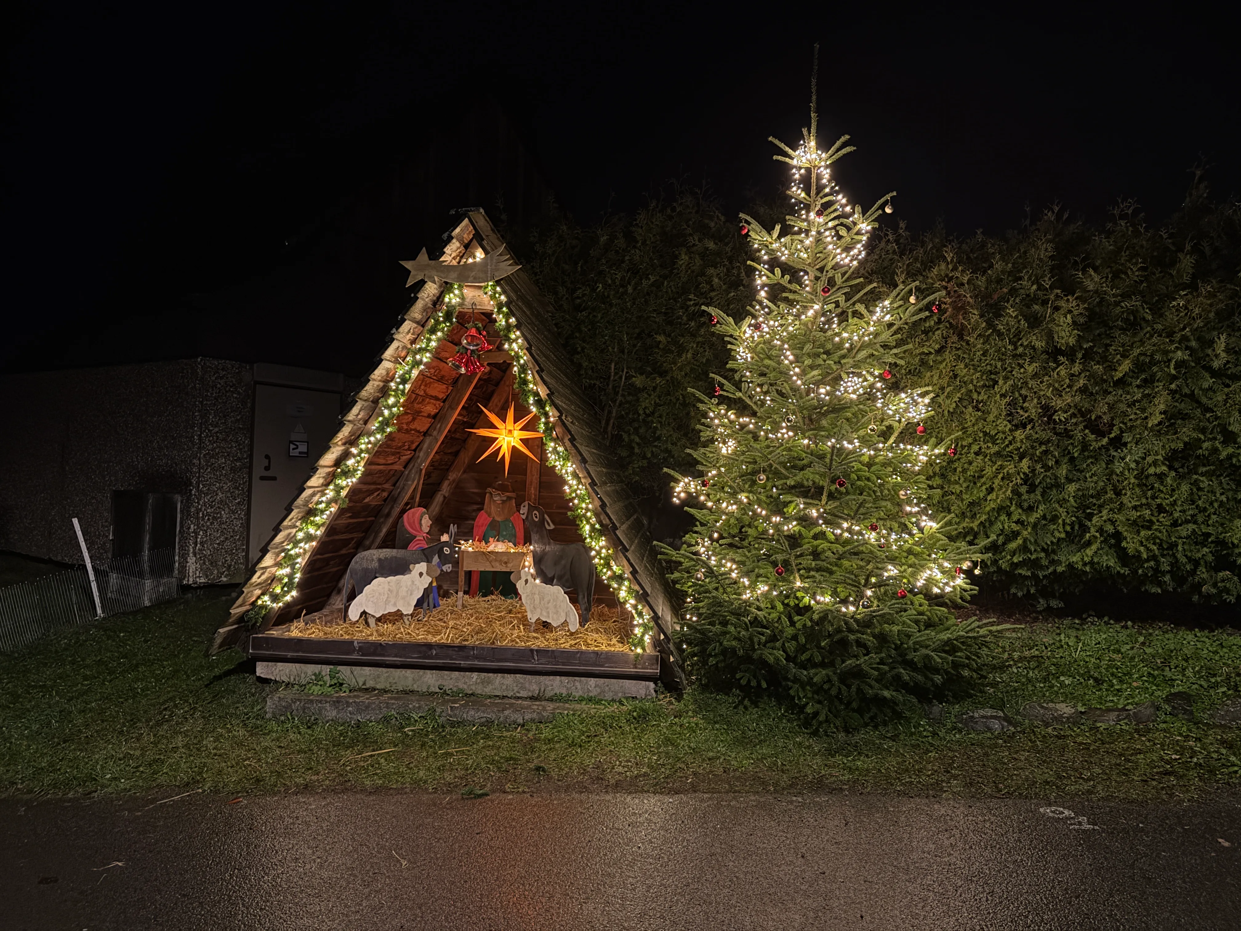 Eine Pracht ist zu jeder Jahreszeit das Haltestellenhäuschen im Dorf – es wird stets so passend wie geschmackvoll geschmückt. Nun hat sich die kleine Station wieder in eine Krippe verwandelt. Mit den Räriner Kindern wurde gebacken, Stutenkerle – natürlich mit Pfeife – wurden bereitet.