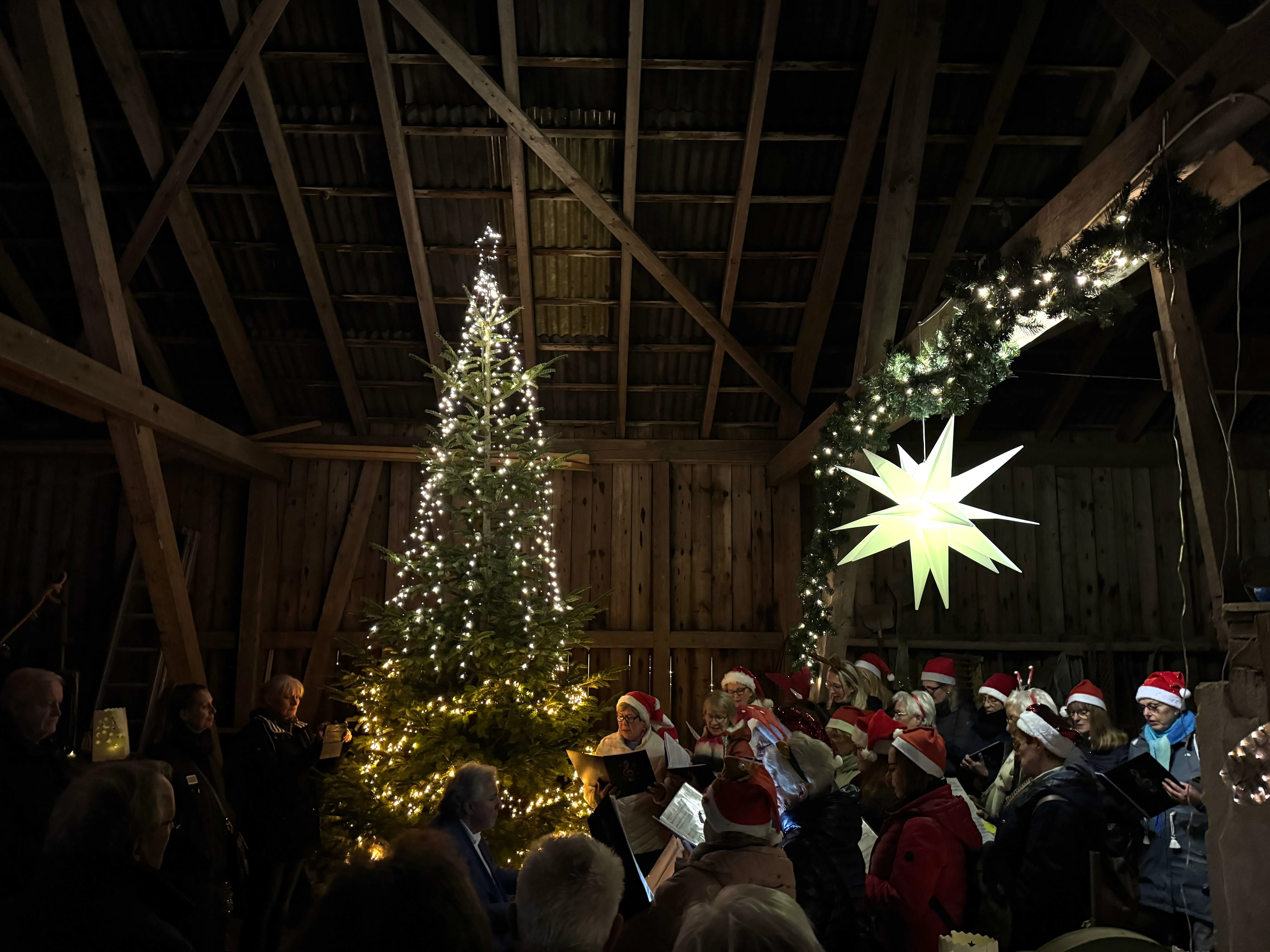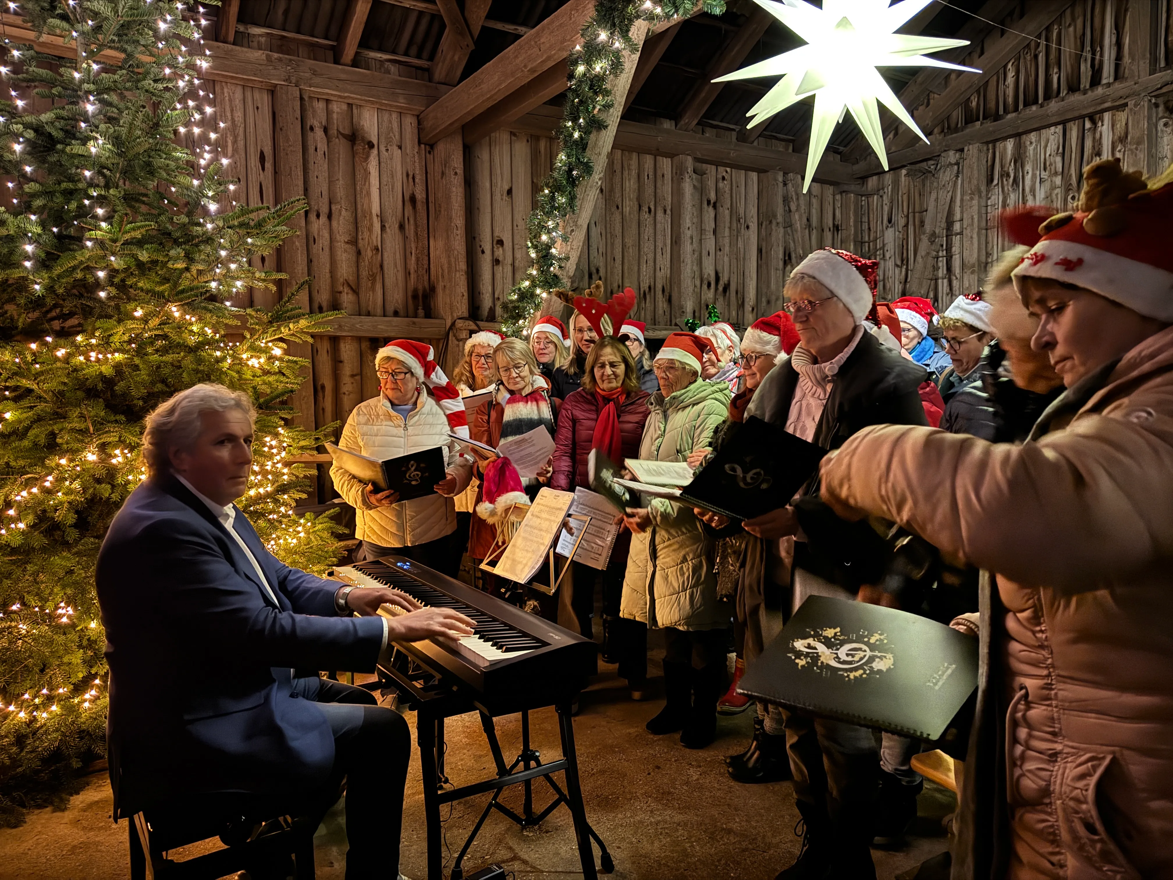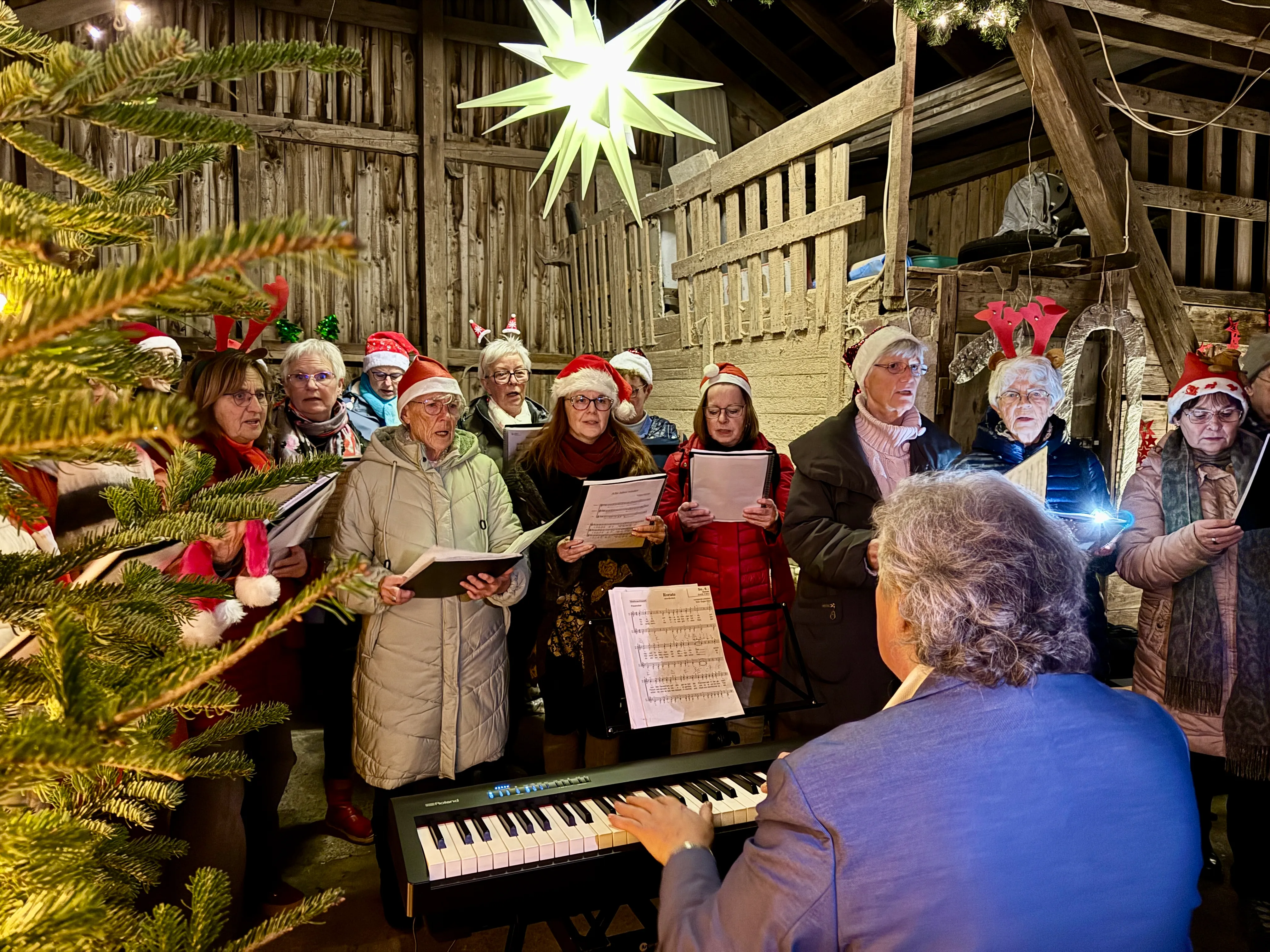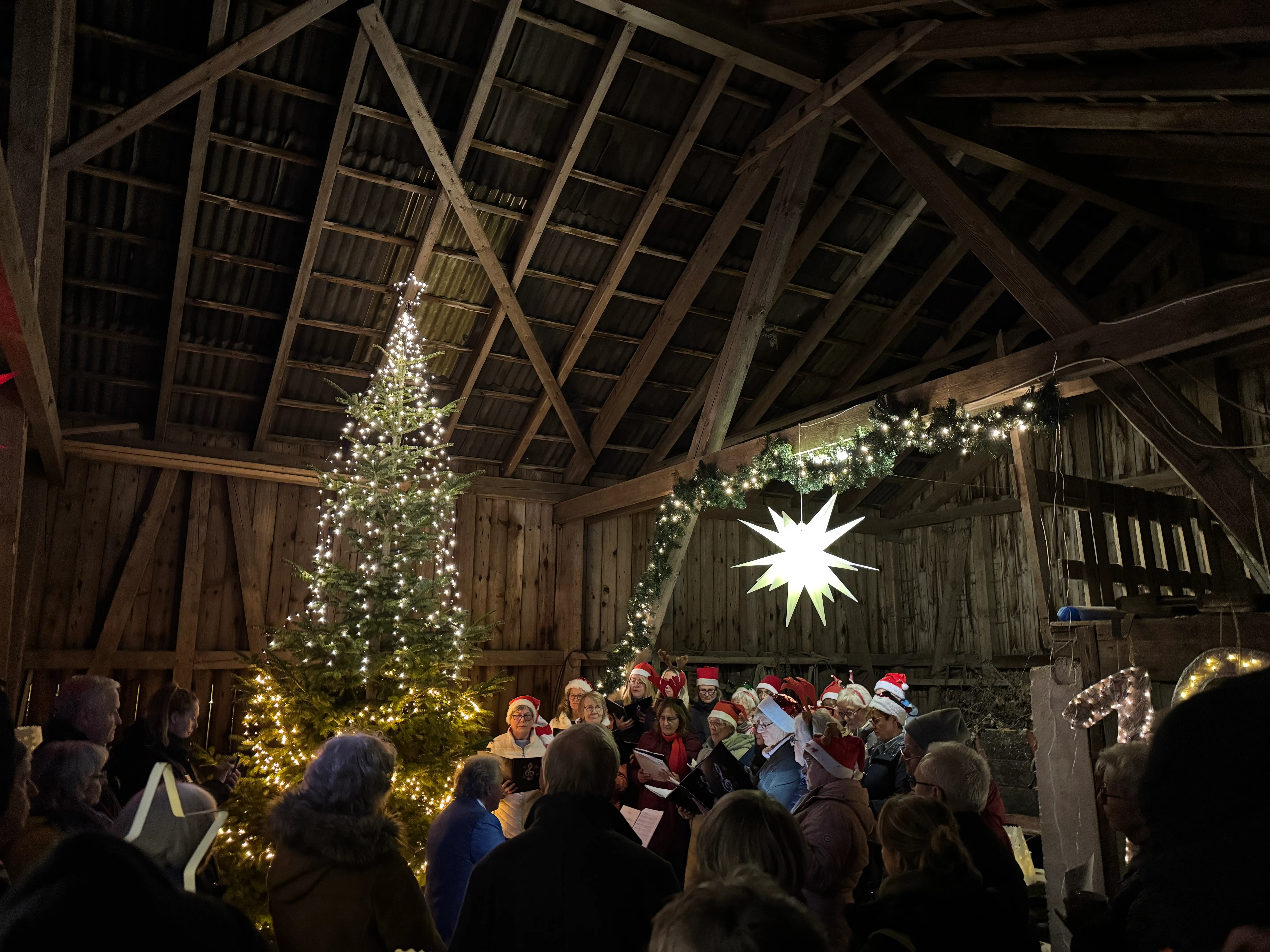 Das größte Adventserlebnis war die Zusammenkunft in der Scheune, wo sich bei Gebäck und heißen Getränken 120 Gäste einfanden, um den Lüdenscheider Damenchor Cantabile zu hören. Dieser erfreute unter der Leitung von Eugen Momot mit Auszügen aus seinem Weihnachtsprogramm. Mitsingen war an diesem Adventsabend nicht nur erlaubt, sondern erwünscht. Die nachfolgenden Fotos von Max Holthaus dokumentieren die adventliche Stimmung im Höhendorf.