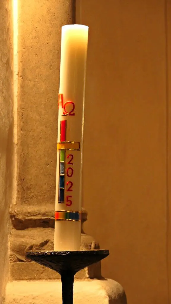 Während im Stadtgebiet bereits die ersten Raketen und Böller gezündet wurden, war die Kirche ein Ort der Ruhe und Besinnlichkeit. Gemeinsam mit dem Gemeindereferenten Johannes Westhoff und dem Vokalensemble Twende wurde der Gottesdienst gestaltet. Die vier Sängerinnen des Ensembles, Verena Knabe, Regina Siepe, Regina Ingenohl und Sabine Hollweg, begeisterten sowohl mit eindrucksvollem A-cappella-Gesang als auch mit Instrumentalbegleitung durch Verena Knabe am E-Piano und Sabine Hollweg auf der Querflöte. Gemeinsam mit der Gemeinde wurde das von Dietrich Bonhoeffer getextete Lied „Von guten Mächten wunderbar geborgen“ gesungen.