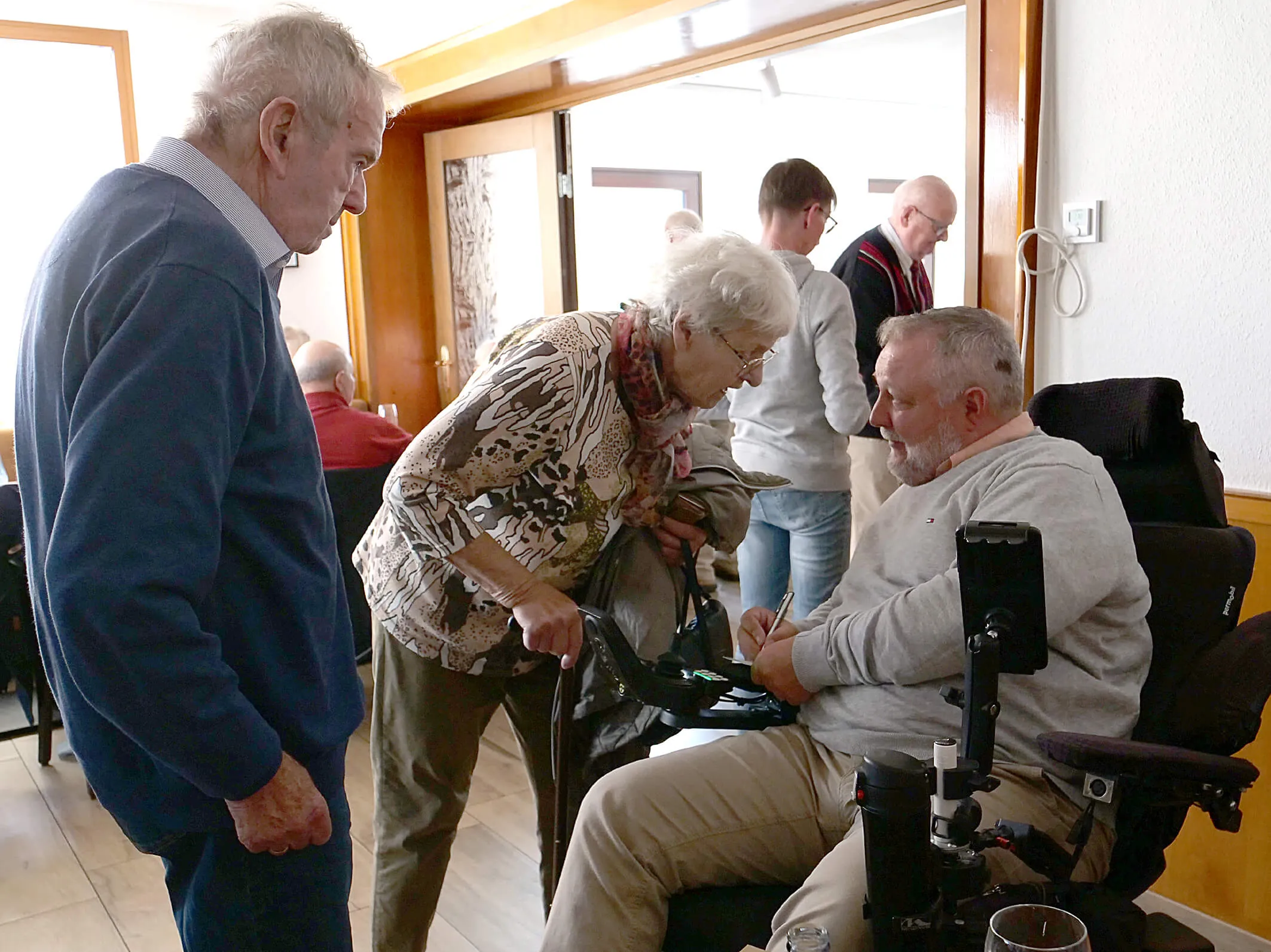 Mario Demmer-Benedetti stellte desweiterten den Schwerbehindertenausweis und das Notruftelefon vor, erklärte Beantragung, Funktion und Nutzung. Auch hier kann der Berater als Möglichmacher tätig werden, ohne dass Kosten entstehen. Sein Appell an seine Zuhörer über alle angesprochenen Themen hinweg: „Nur 17 Prozent der zustehenden Leistungen werden tatsächlich beantragt. Man soll und darf sich nicht schämen, die Leistungen abzurufen!“
