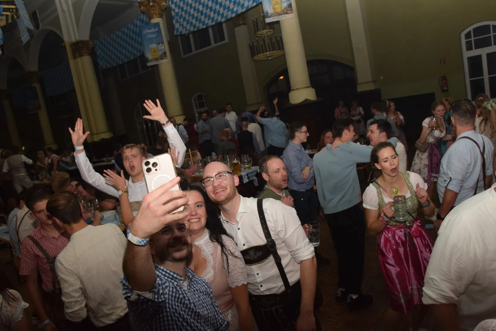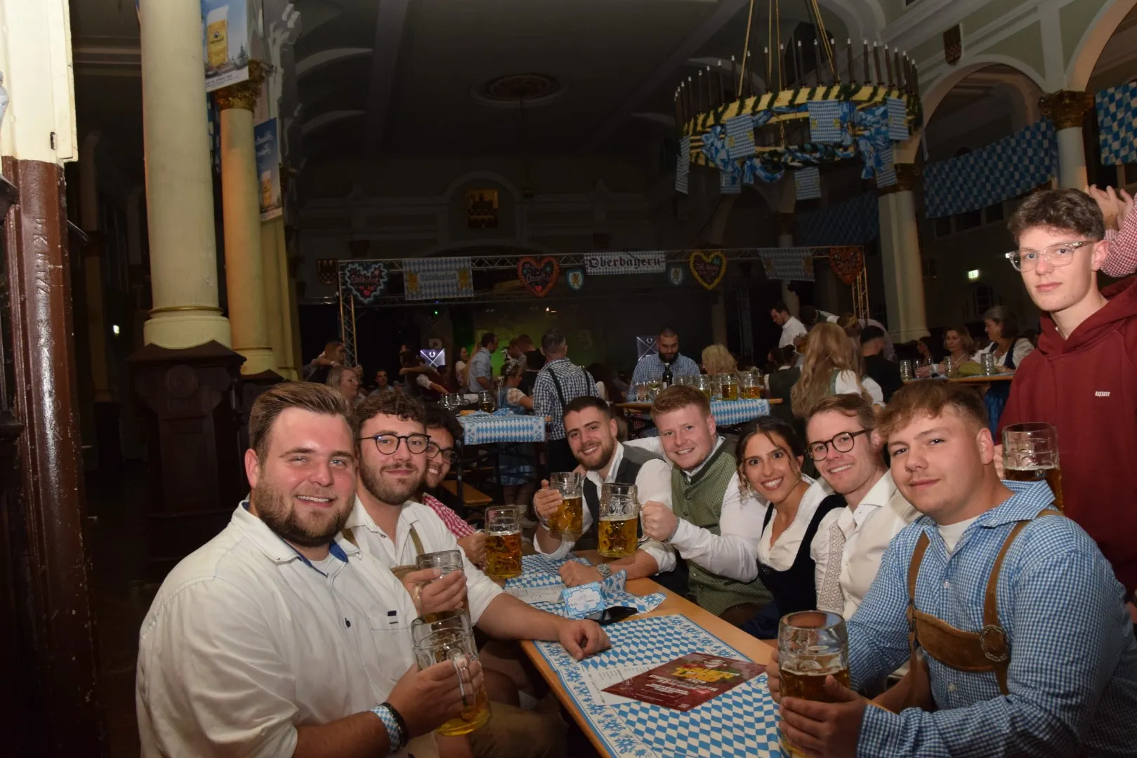 Der Duft von Leberkäse und süßem Senf lag in der Luft, als am Samstagabend die ersten Gäste in Dirndln und Lederhosen die Historische Schützenhalle betraten. Blau-weiße Girlanden, blinkende Maßkrüge und der Ruf „O’zapft is!“ verwandelten Lüdenscheid in Klein-München.