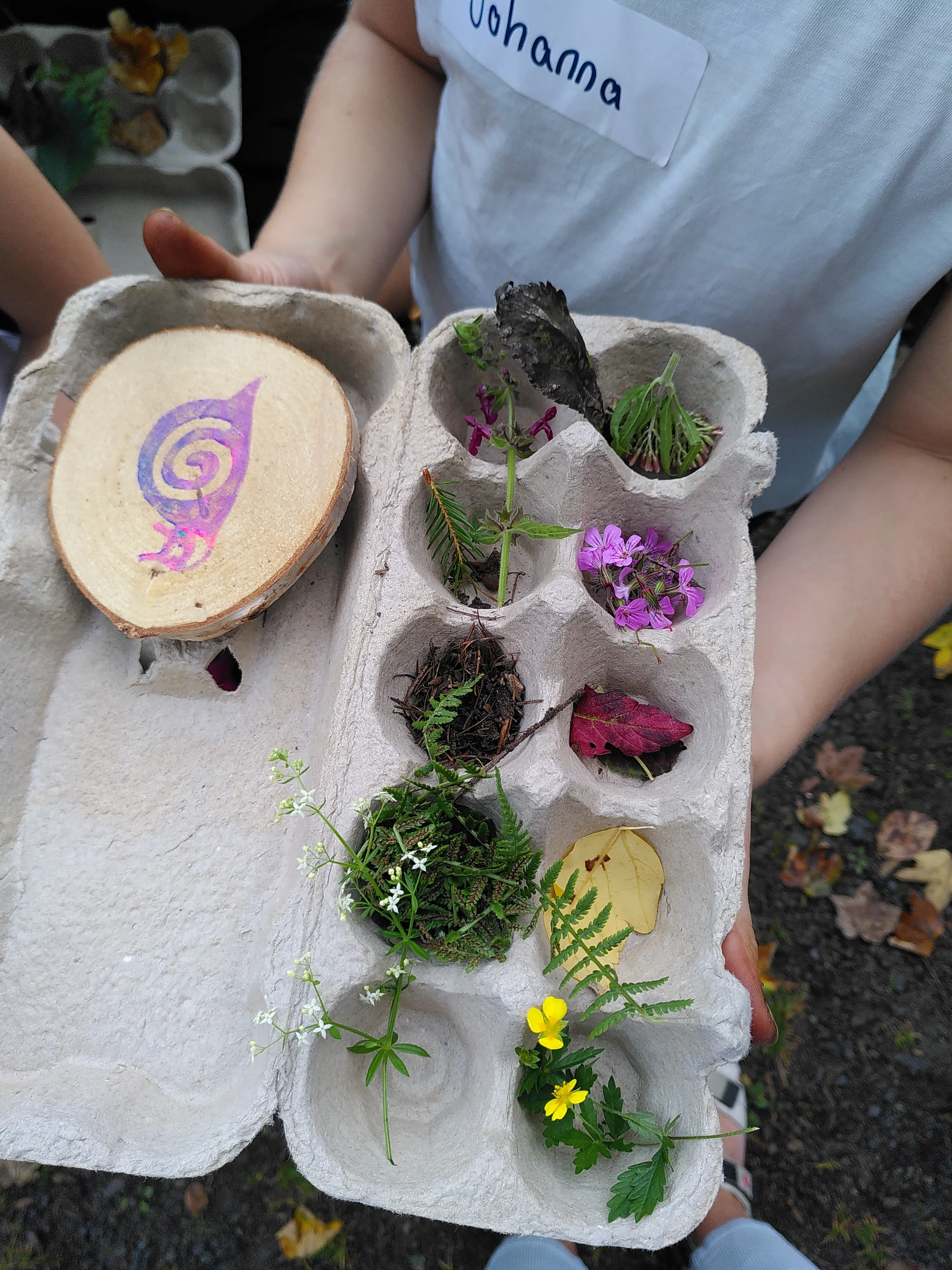Spielerisch, sportlich und kreativ ging es in den verschiedenen Kleingruppen zu. Passend zur Titelfigur stand auch Stoffe-Färben auf dem Programm – statt wie damals mit dem Extrakt der Purpurschnecken für die gleichnamige Farbe doch lieber mit Rotkohl. Das sommerliche Wetter bot sich an, mit der Gruppe in den Wald am Hestenberg zu gehen. „Die Aufgabe, Holzschnecken im Unterholz zu finden, brachte viele ordentlich ins Schwitzen“, erzählt Sabine Hollweg und fügt hinzu: „Die Jüngsten waren besonders motiviert, sammelten und tauschten die begehrten Trophäen.“