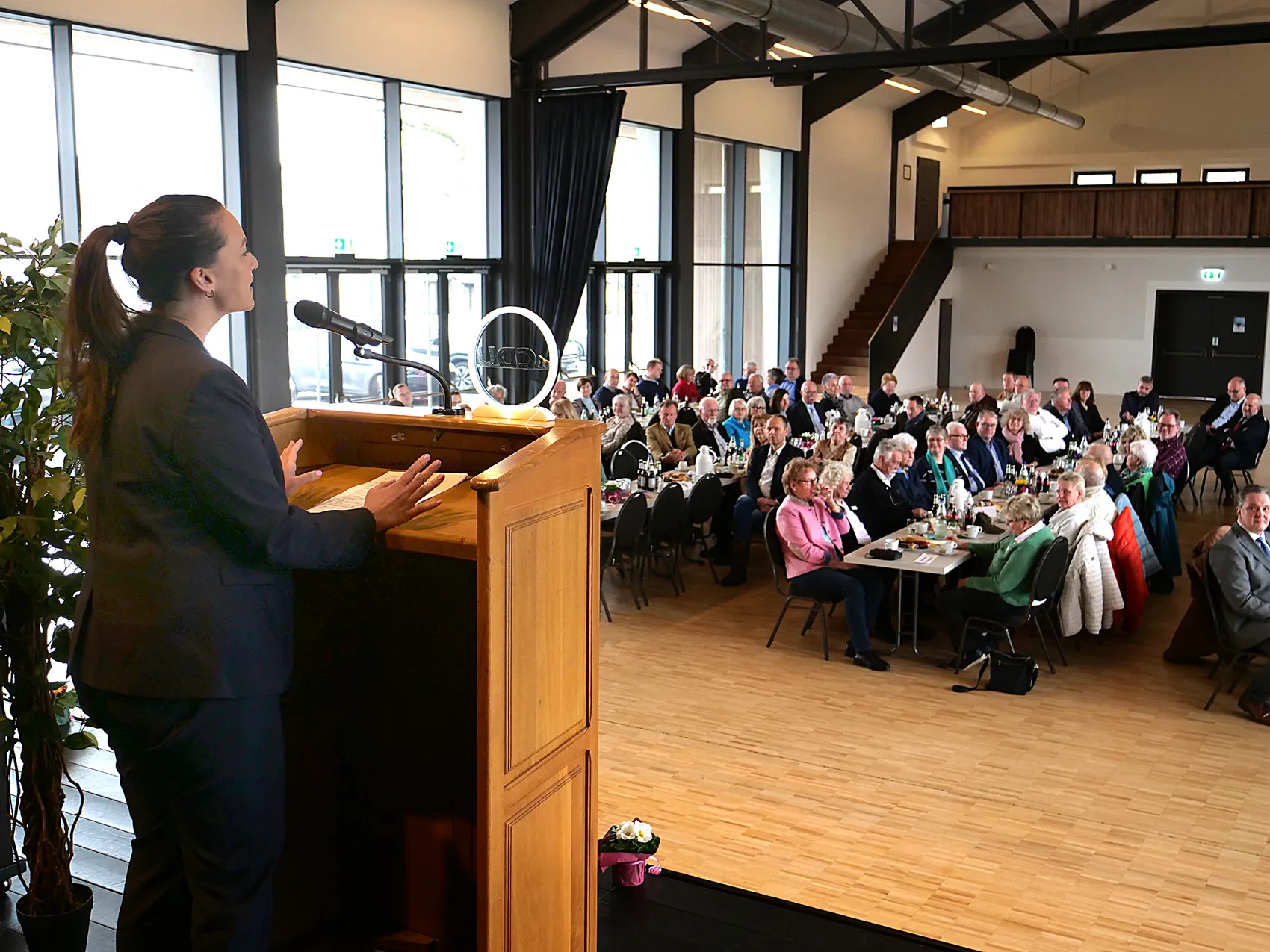 Generell rief sie dazu auf, Probleme nicht zu tabuisieren, sondern anzusprechen. Auch die Wirtschaftslage dürfe nicht schöngeredet werden und doch „sollten wir öfter über Erreichtes, Geschafftes sprechen“. Defätismus ist die Sache der Caroline Bosbach nicht, dies wurde deutlich und vom Auditorium mit anhaltendem Applaus bedacht.