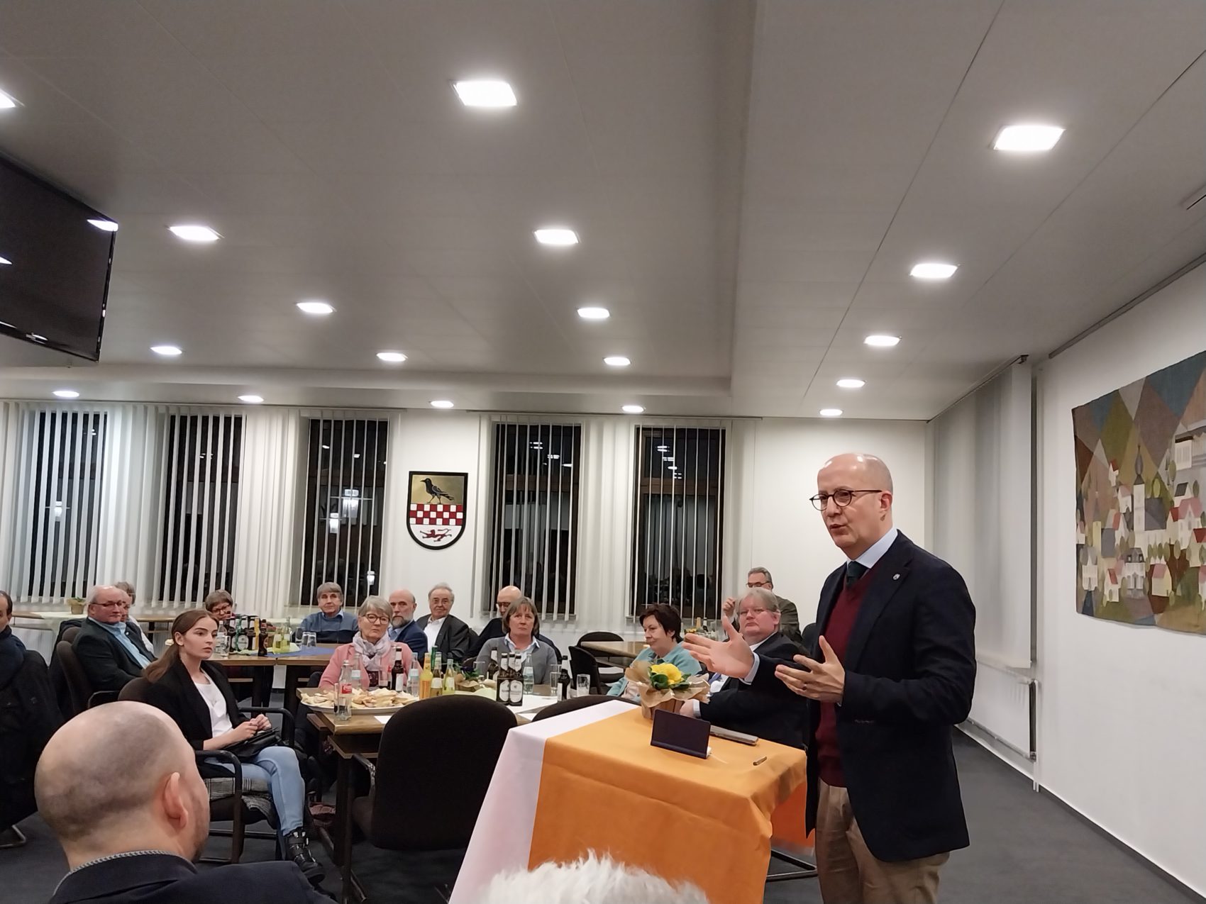 Scheel teilte mit seinen Fraktionsmitgliedern, Vertretern der Feuerwehr, dem FDP-Vorsitzenden Armin Jung, der stellvertretend für die anderen Ratsfraktionen am Empfang teilnahm und interessierten Bürgern Gedanken zum Begriff „Heimat“. Schließlich hatte er erwartet, die Heimatministerin würde an der Veranstaltung teilnehmen. Dennoch ließ sich durch den Begriff ein Bogen spannen von der Bedeutung der Heimat in der Kommunalpolitik über die Landespolitik, die Schwarzkopf vertrat, bis hin zur Bundespolitik.