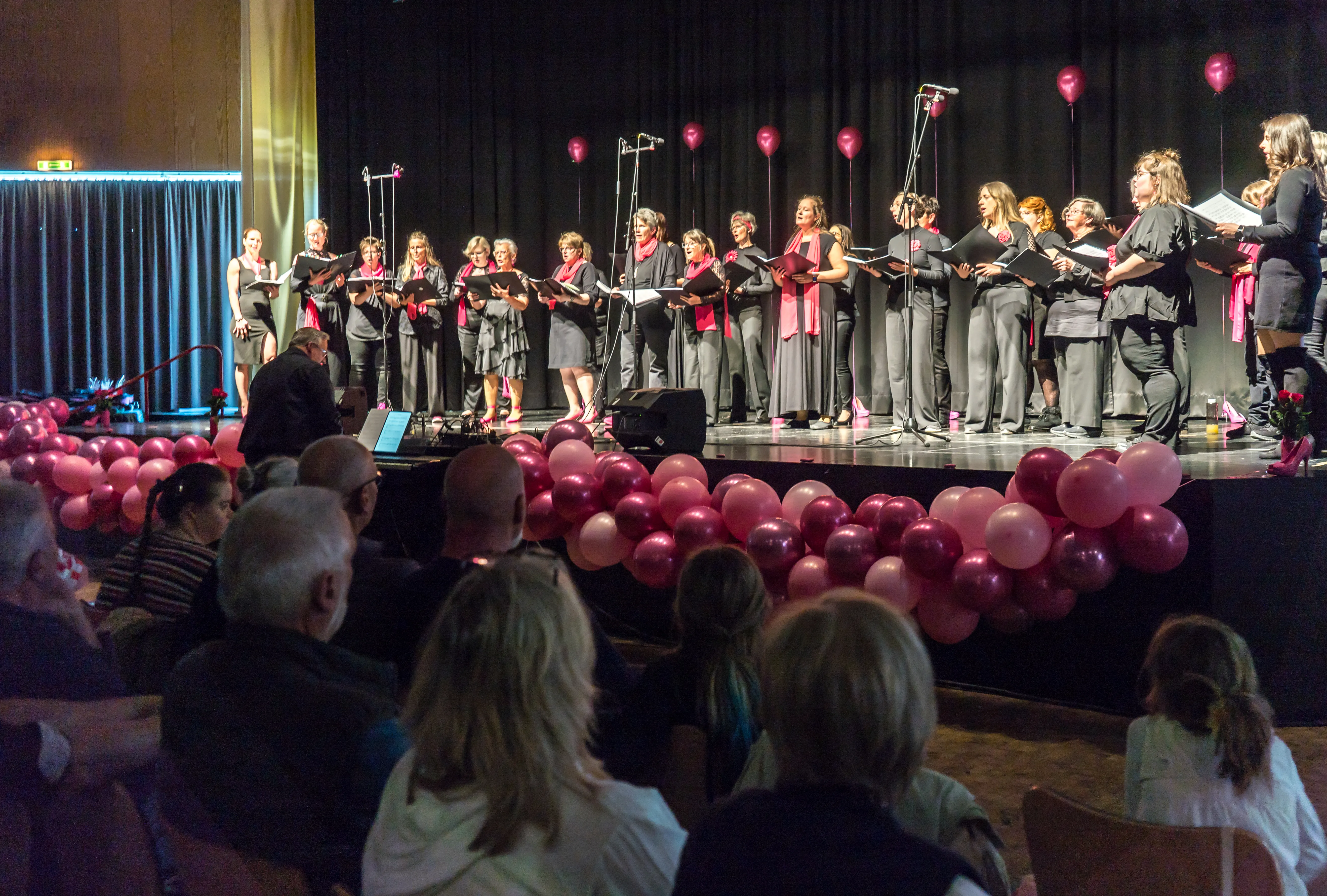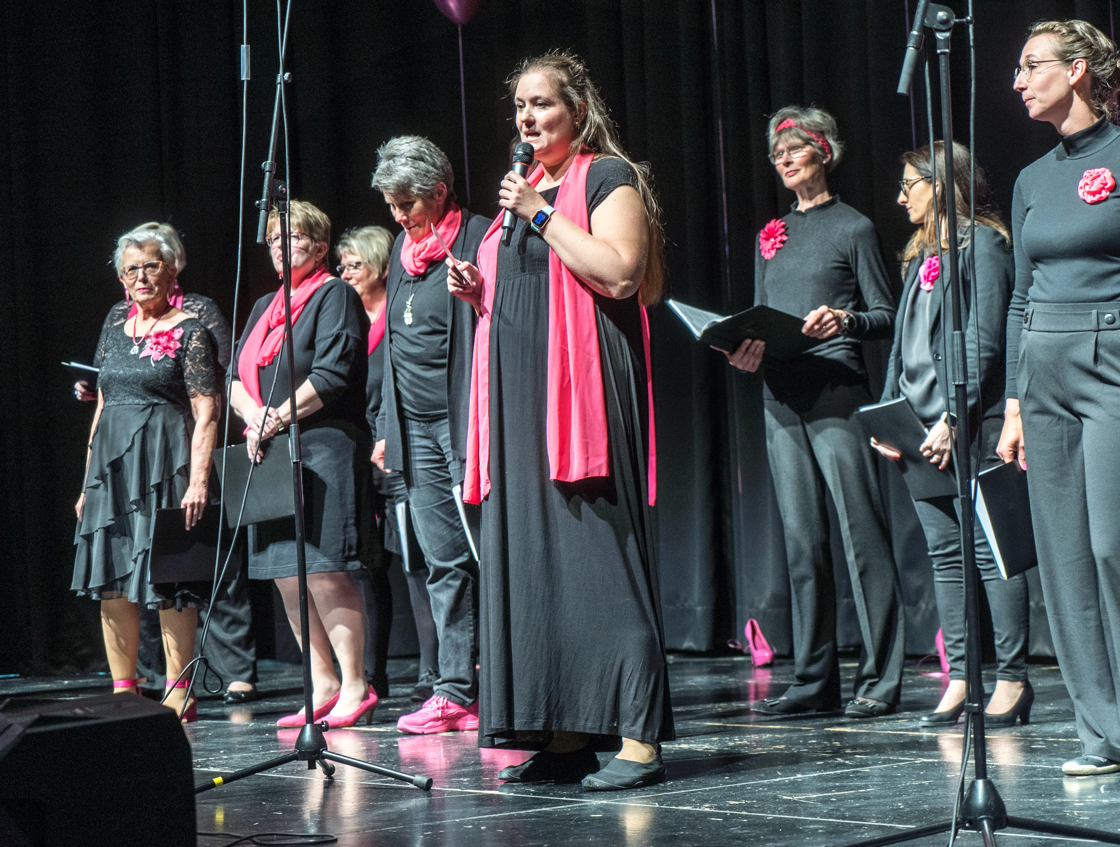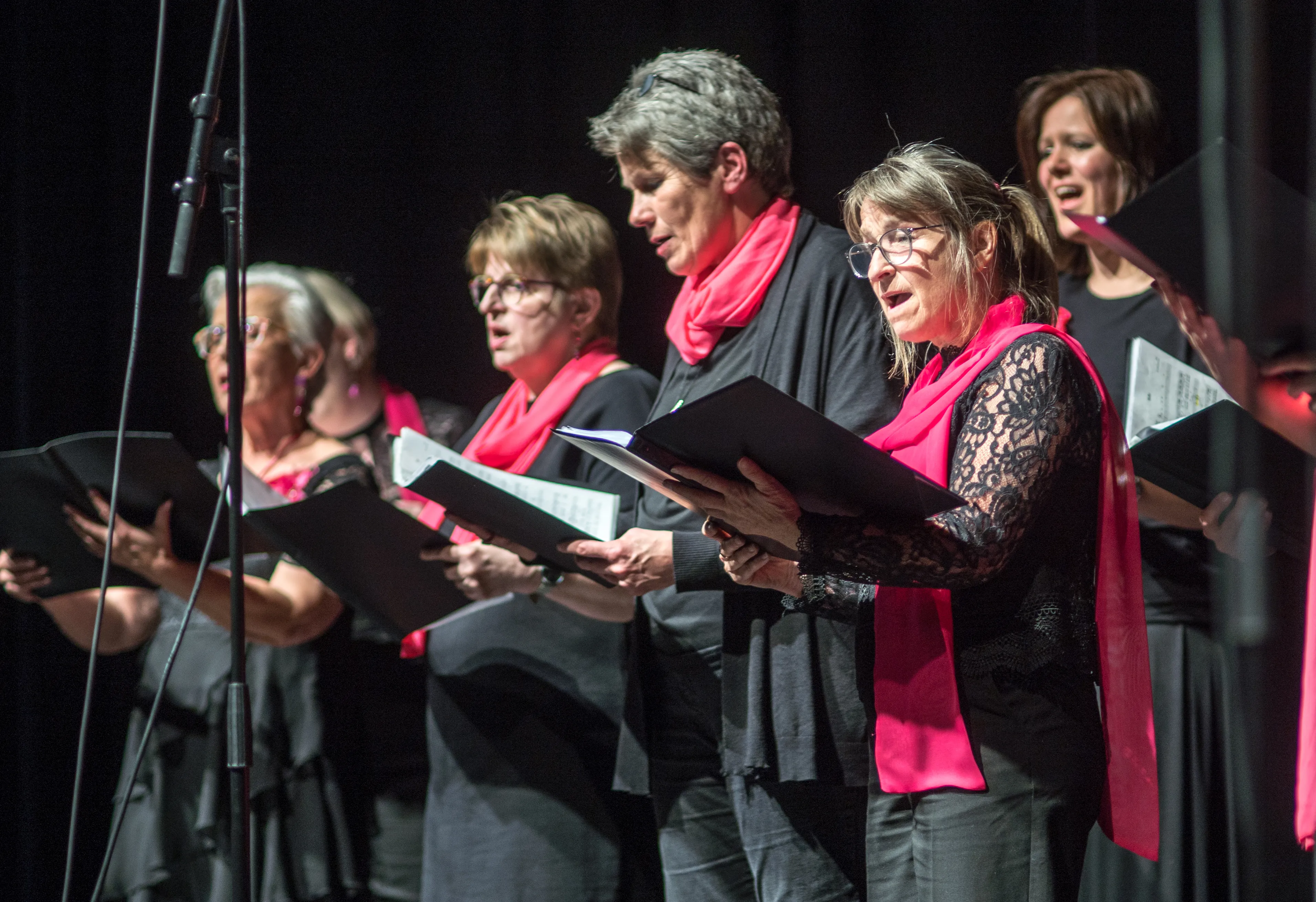 Ihr Auftakt-Lied „Let me entertain you“ von Robbie Williams nahmen die etwa 30 Sängerinnen wörtlich, und unterhielten ihre Zuhörer von der ersten bis zur letzten Minute. Nach „Stay with me“ von Sam Smith, „Perfect“ von Ed Sheeran und „All about that bass“ von Meghan Trainor gab es erst einmal eine Atempause und fürs Publikum ein unterhaltsames Musikquiz. Doch dann ging’s auch schon weiter mit Klassikern wie „Forever young“ von Alphaville, „Hello“ von Adele, „Lasse redn“ von den Ärzten und Queens „Somebody to love“.