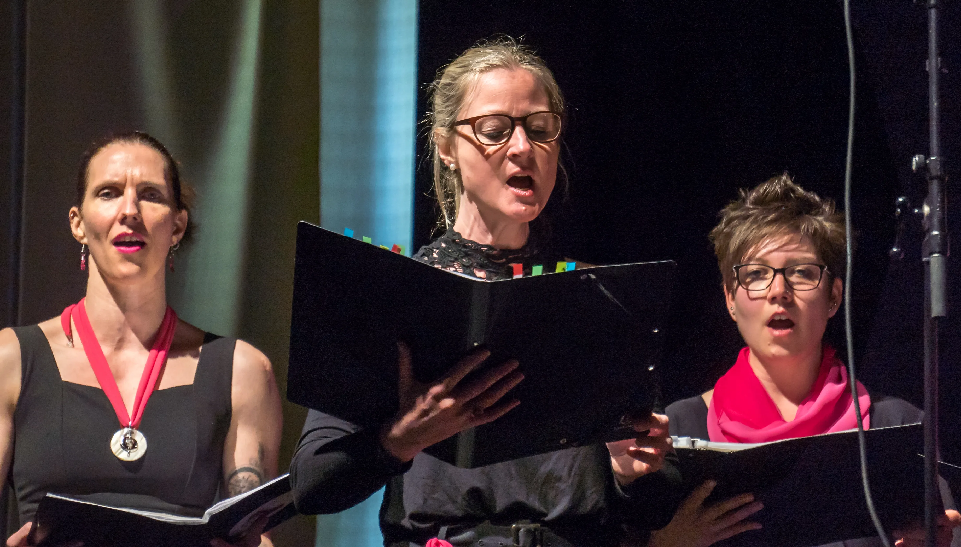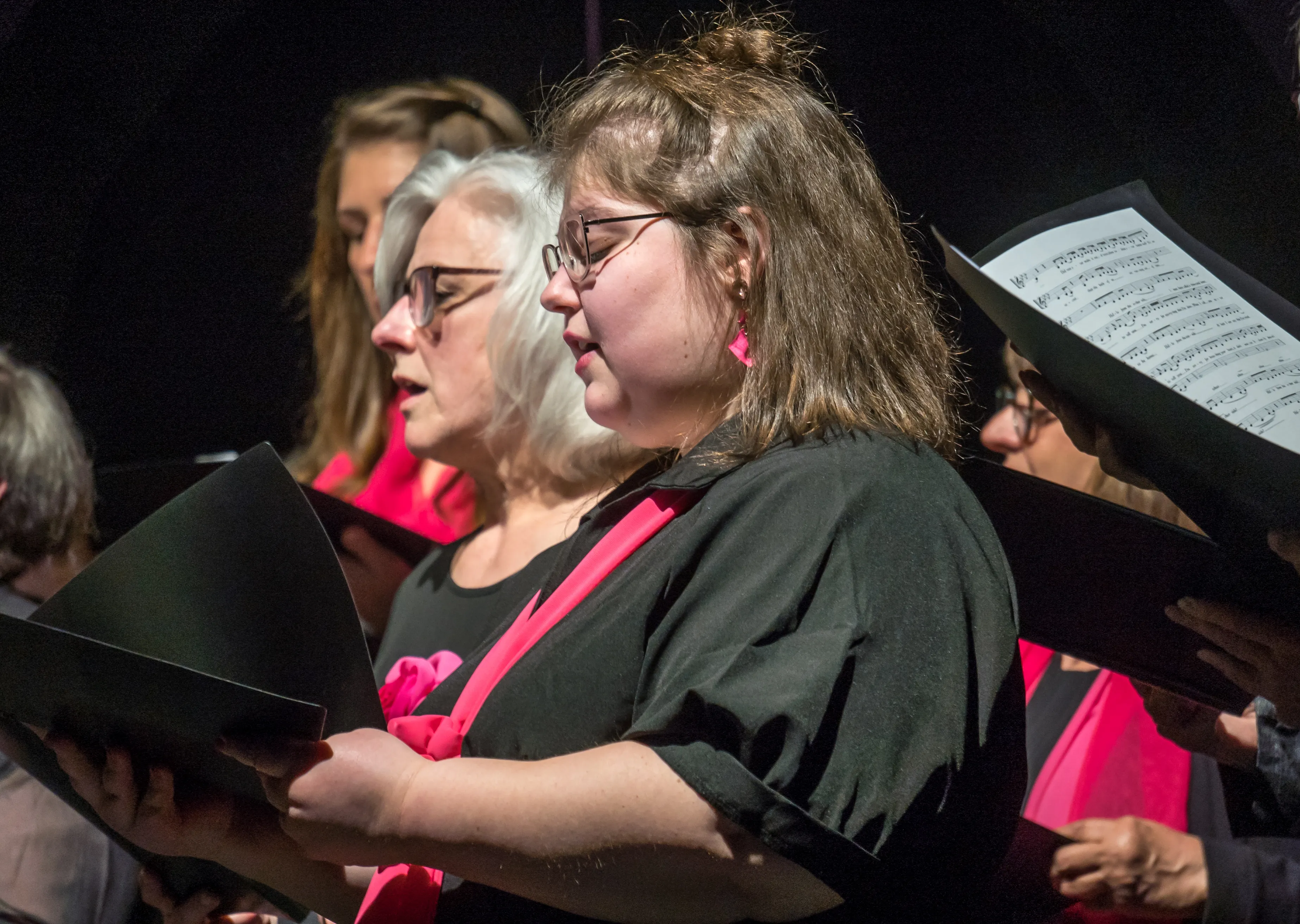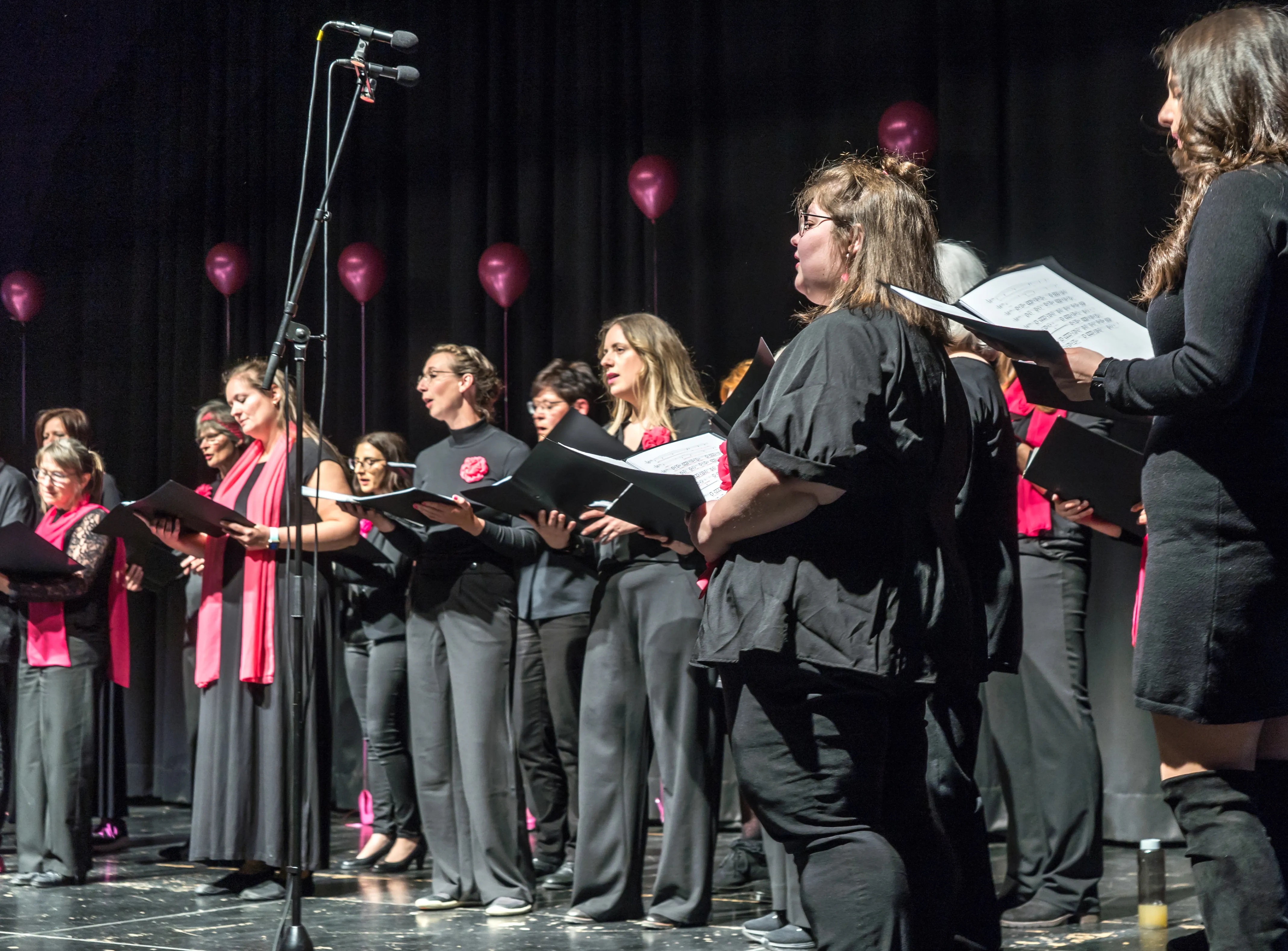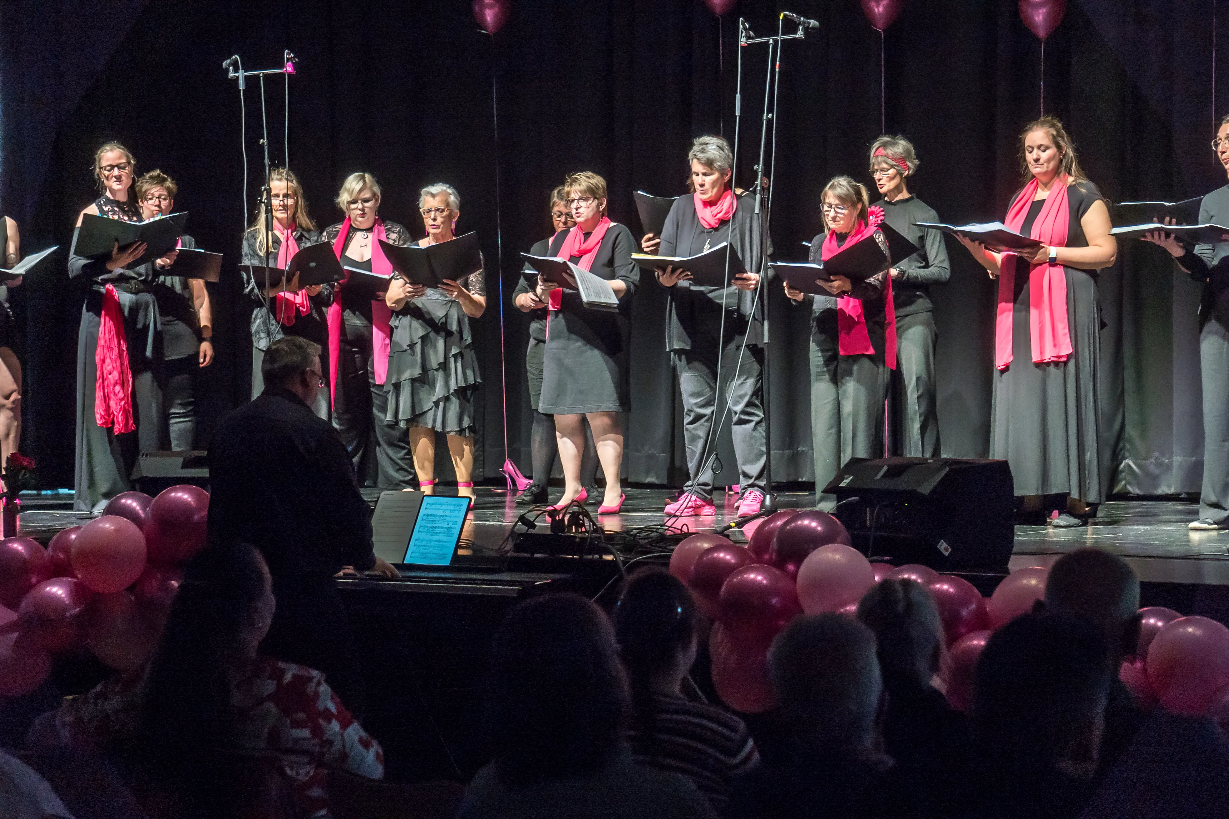 Ihr Auftakt-Lied „Let me entertain you“ von Robbie Williams nahmen die etwa 30 Sängerinnen wörtlich, und unterhielten ihre Zuhörer von der ersten bis zur letzten Minute. Nach „Stay with me“ von Sam Smith, „Perfect“ von Ed Sheeran und „All about that bass“ von Meghan Trainor gab es erst einmal eine Atempause und fürs Publikum ein unterhaltsames Musikquiz. Doch dann ging’s auch schon weiter mit Klassikern wie „Forever young“ von Alphaville, „Hello“ von Adele, „Lasse redn“ von den Ärzten und Queens „Somebody to love“.