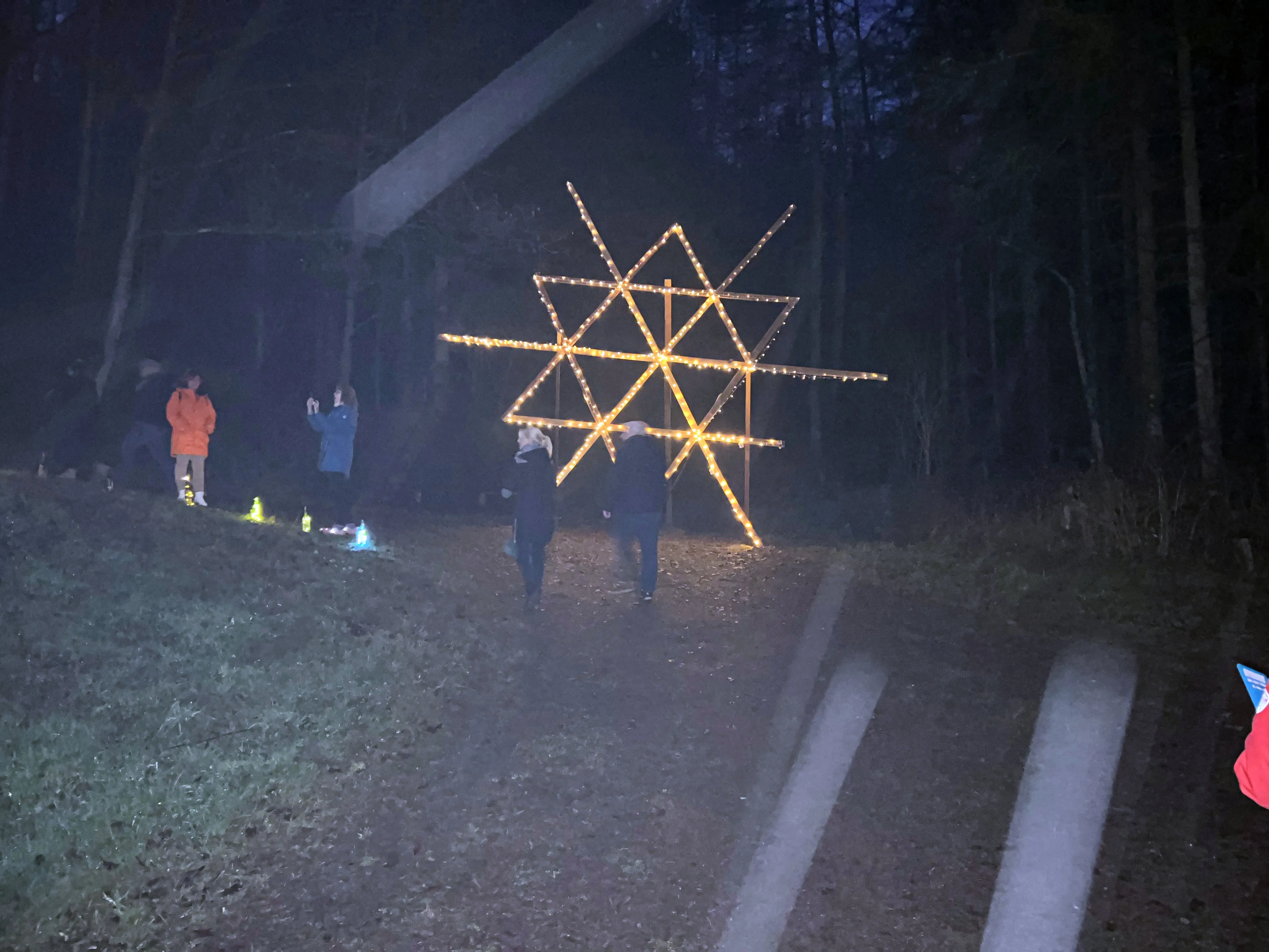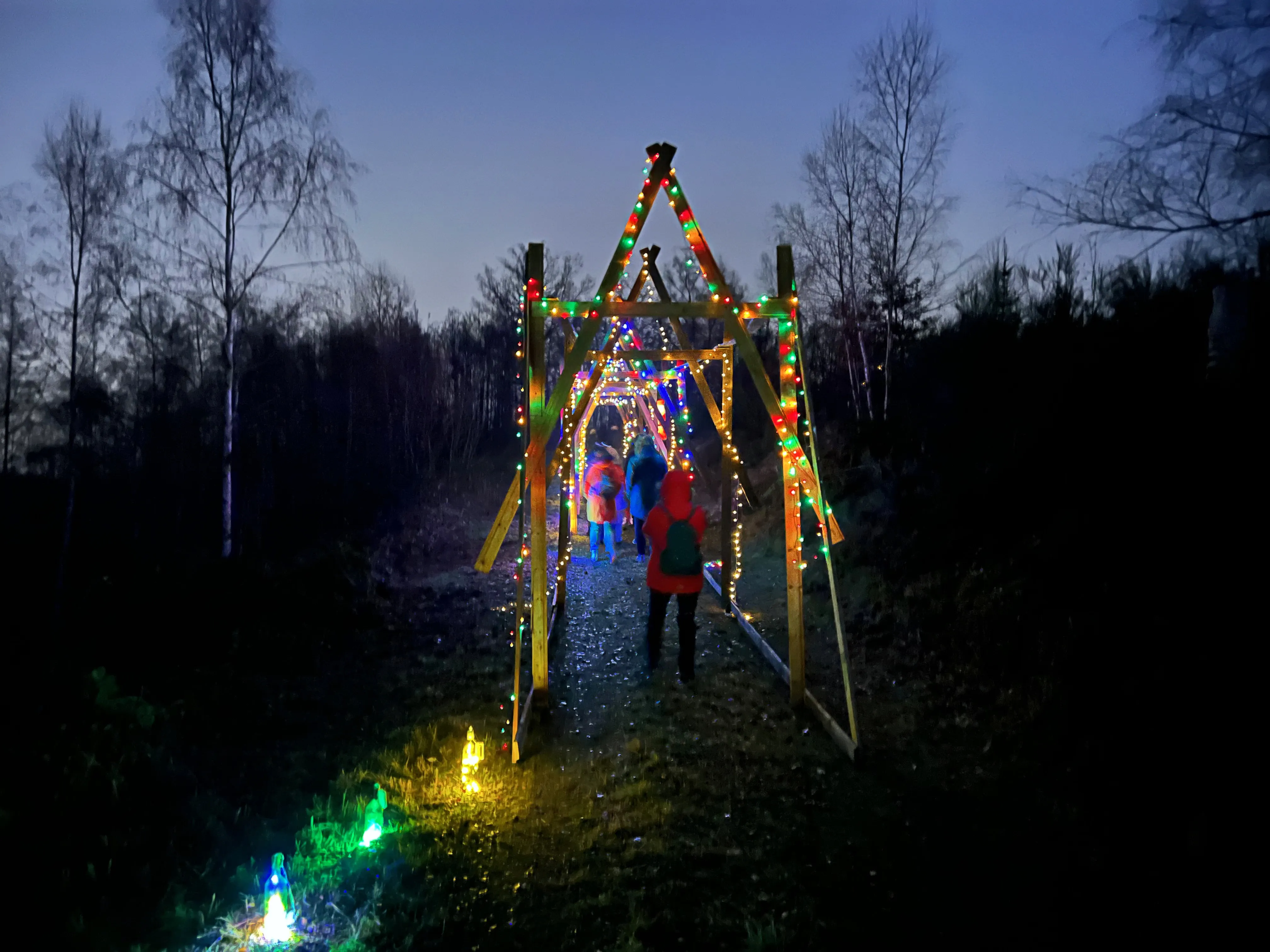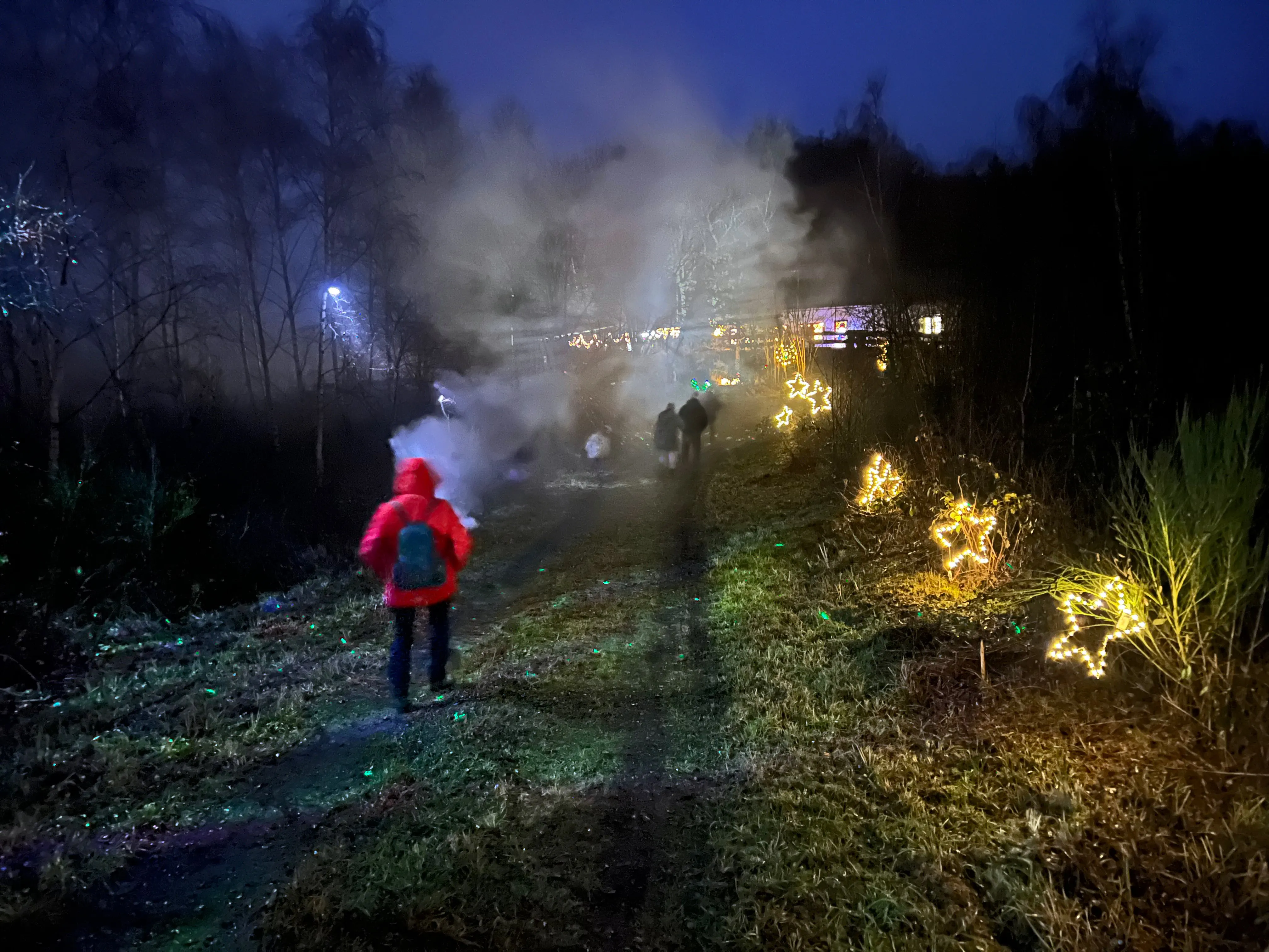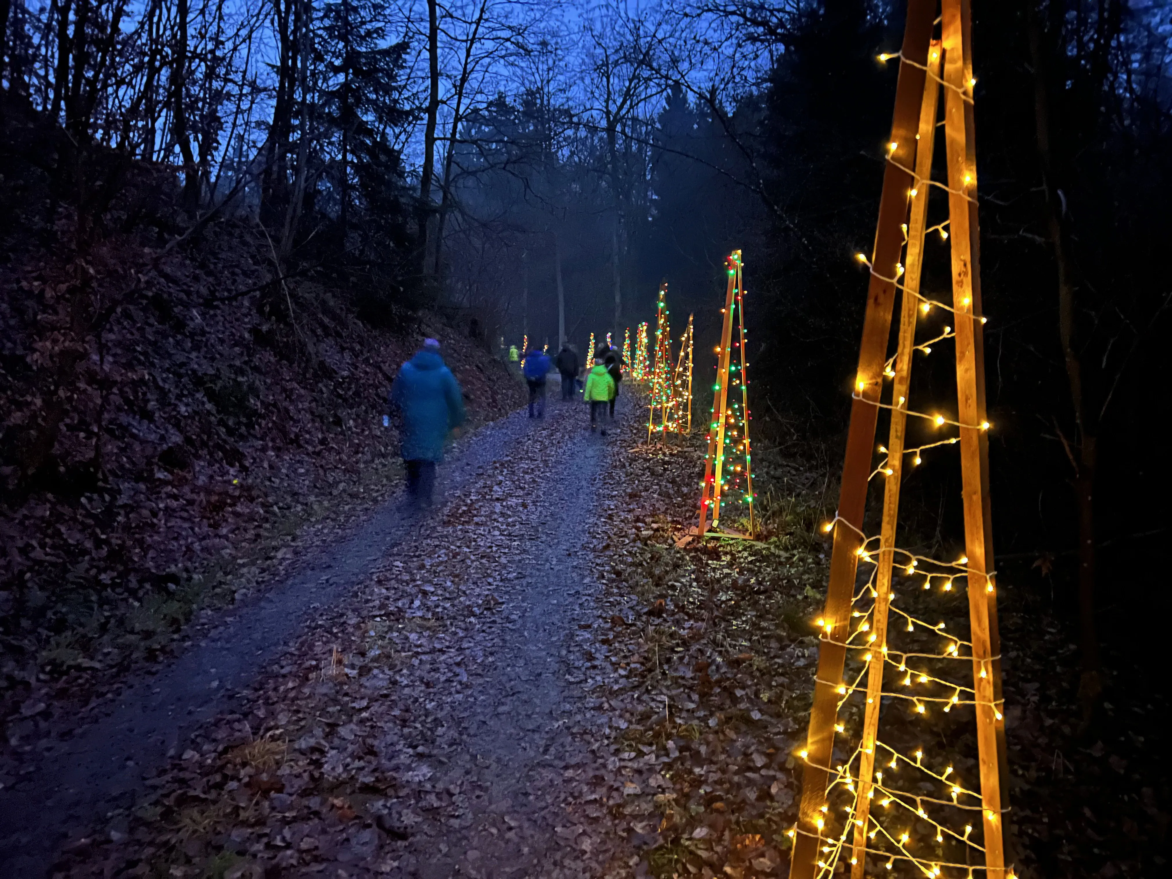 Stimmungs- und fantasievolle Lichtkreationen verwandelten den Waldweg von der Grünestraße hinauf zur Wieckmerth am Samstagabend, 13. Dezember, in einen magischen Ort. Zahlreiche Menschen, darunter viele Familien mit Kindern, spazierten durch den Wald und genossen die nahezu mystische Atmosphäre des Lichterzaubers.