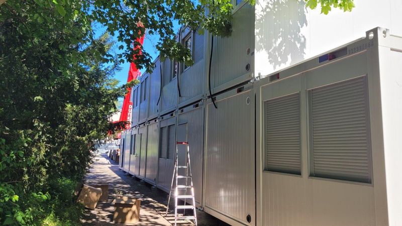 In der vergangenen Woche waren die ersten Container auf dem Parkplatz nahe der Flüchtlingsunterkunft in der Winzenbecke aufgestellt worden. Mit einem Kran wurde jeweils eine weitere Etage auf die Container aufgesetzt. Diese sind mit Küchen und Sanitäreinrichtungen ausgestattet. Ergänzt werden die Appartements, die für zwei bis vier Personen gedacht sind, um Betten und weiteres Mobiliar; zudem müssen die bereits verlegten Strom- und Wasserleitungen noch angeschlossen werden.