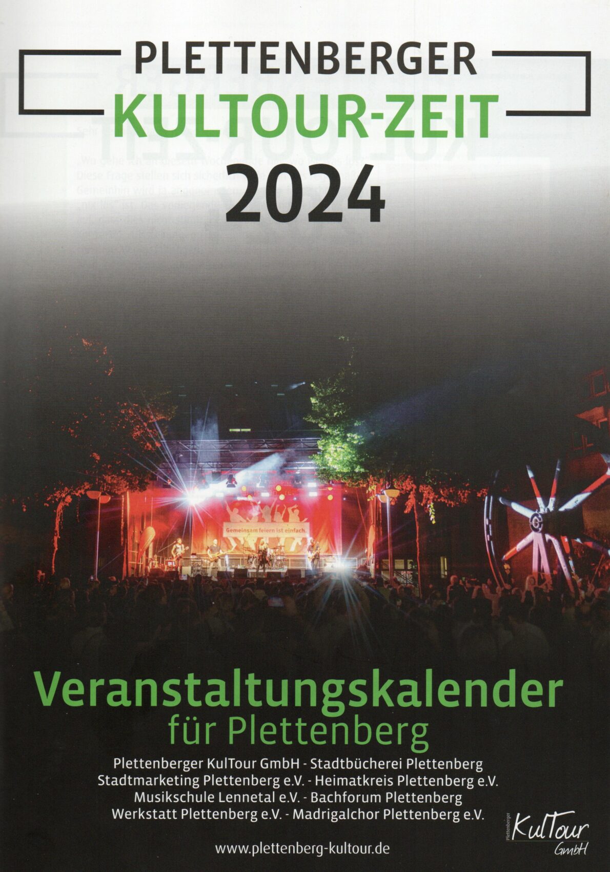 Die KulTour-Zeit 2024 ist im Wilhelm 9, in der Kaiserstraße 9, in der Stadtbücherei, im Rathaus, bei der Sparkasse und an vielen weiteren Stellen erhältlich. Außerdem gibt es sie als PDF-Download auf den Internetseiten der Plettenberger KulTour GmbH.