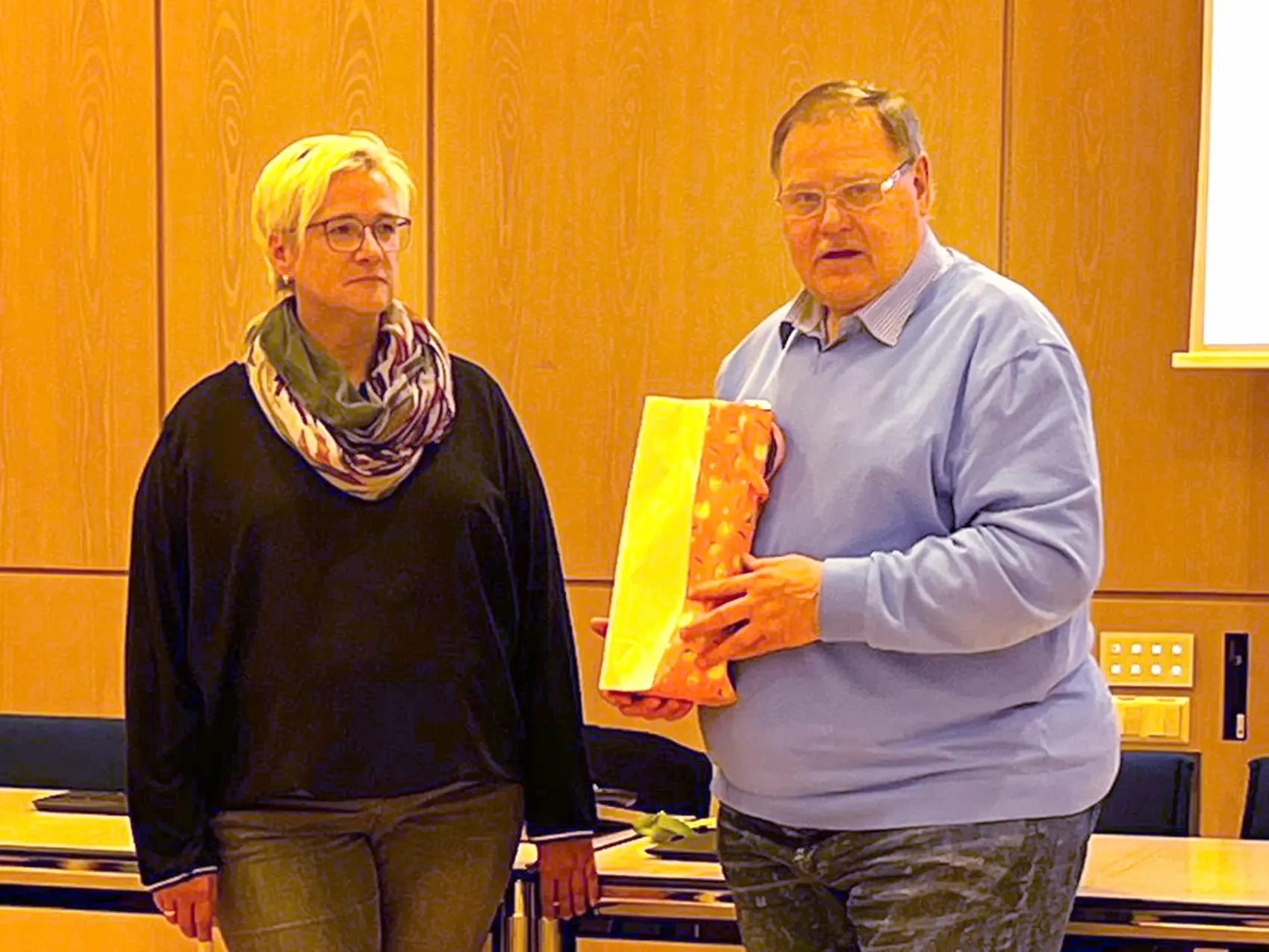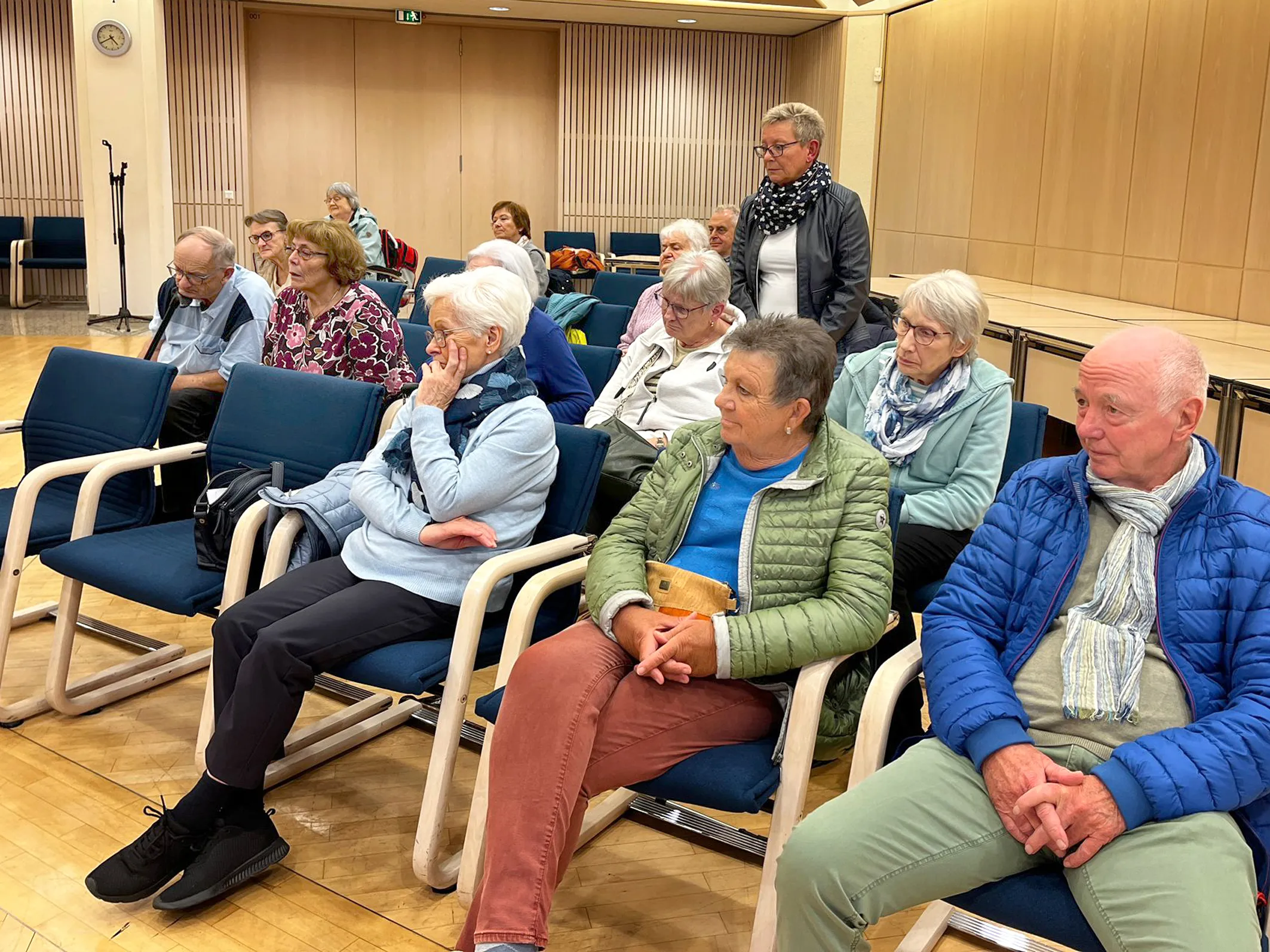 35 interessierte Gäste verfolgten die Ausführungen. Als Dank an Simone Kuhl gab es zum Abschluss ein kleines Geschenk der Seniorenvertretung.