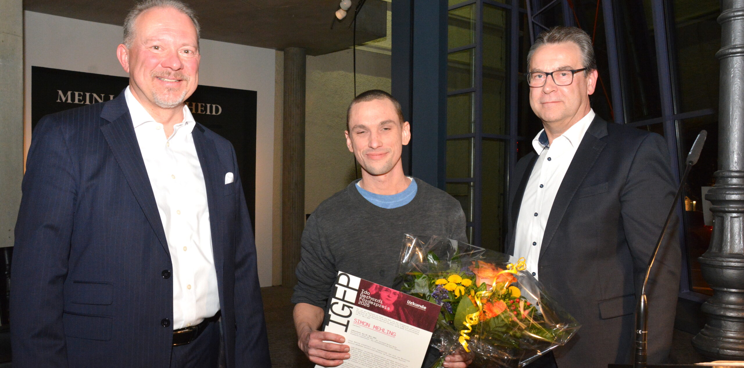 Der 30-jährige Preisträger stammt aus Würzburg und hat bei den Professoren Maik und Dirk Löbbert an der Kunstakademie Düsseldorf studiert. Im Jahr 2023 hat er sein Examen abgelegt. Der Aufenthalt in Lüdenscheid muss dem jungen Mann gut gefallen haben: „Ich bin hier sehr gut aufgenommen worden. Das bin ich so nicht gewohnt“, sagte er in seinen kurzen Dankesworten.