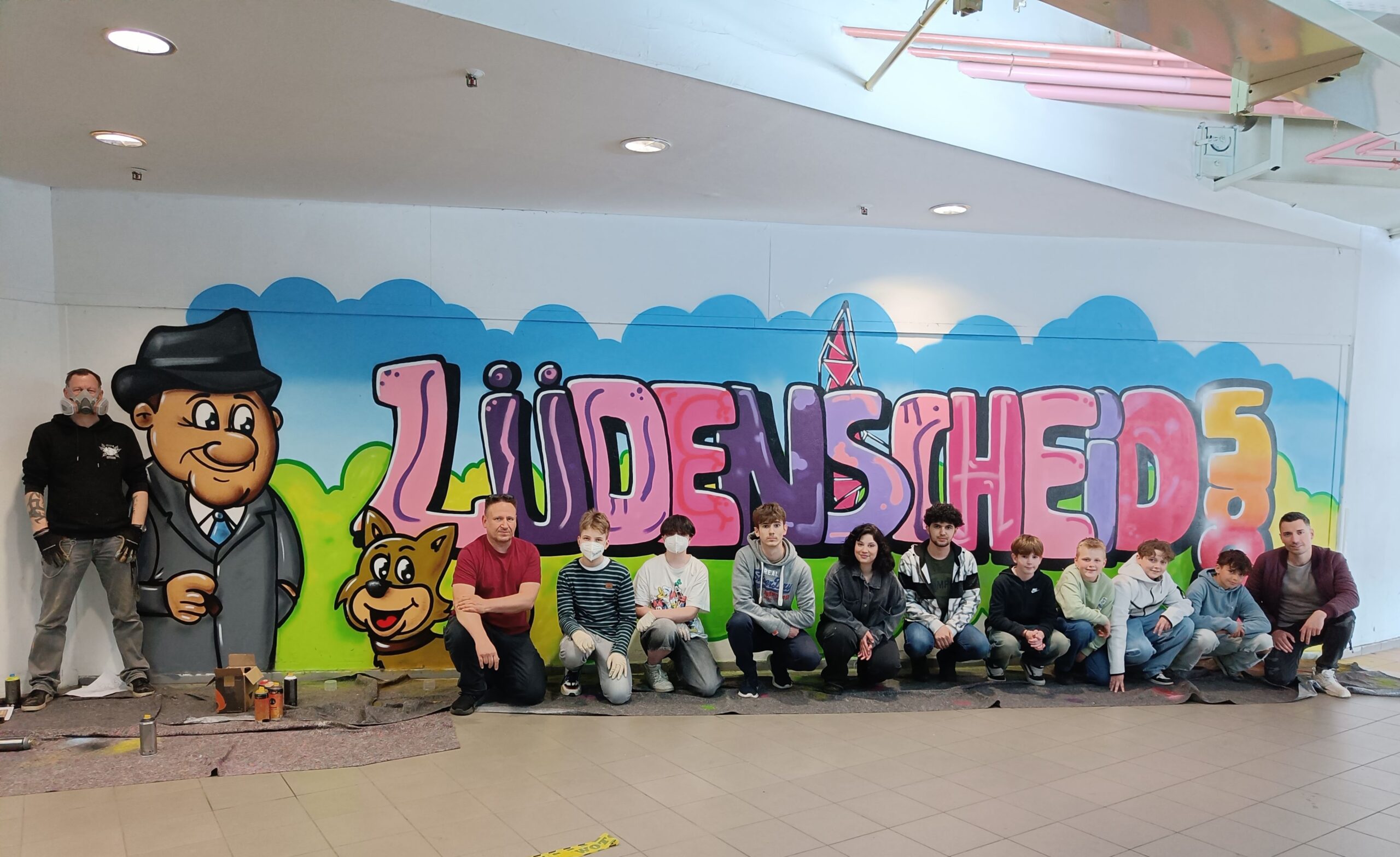18. April: Einen neuen Look verpasste eine Gruppe Jugendlicher in den vergangenen Tagen dem Eingangsbereich des Forums am Sternplatz. Die Kinder- und Jugendförderung der Stadt Lüdenscheid hatte in den Osterferien zu einem Workshop mit Graffiti Künstler Yves Thomé eingeladen.